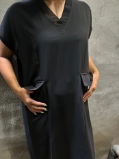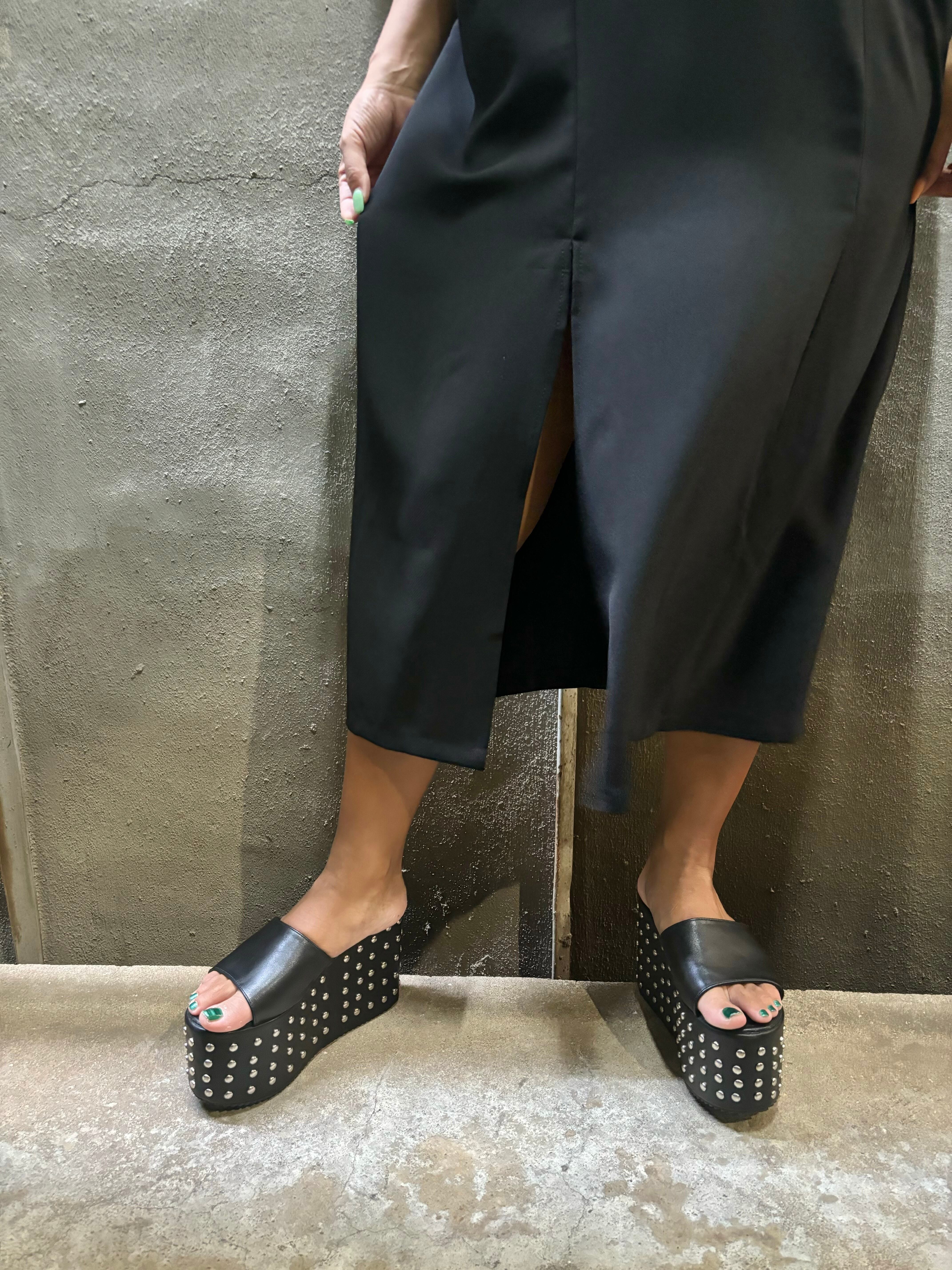 box silhouette V-neck × deep slit design one-piece ワンピース デザインワンピ ブラック 黒 Vネック スリット
