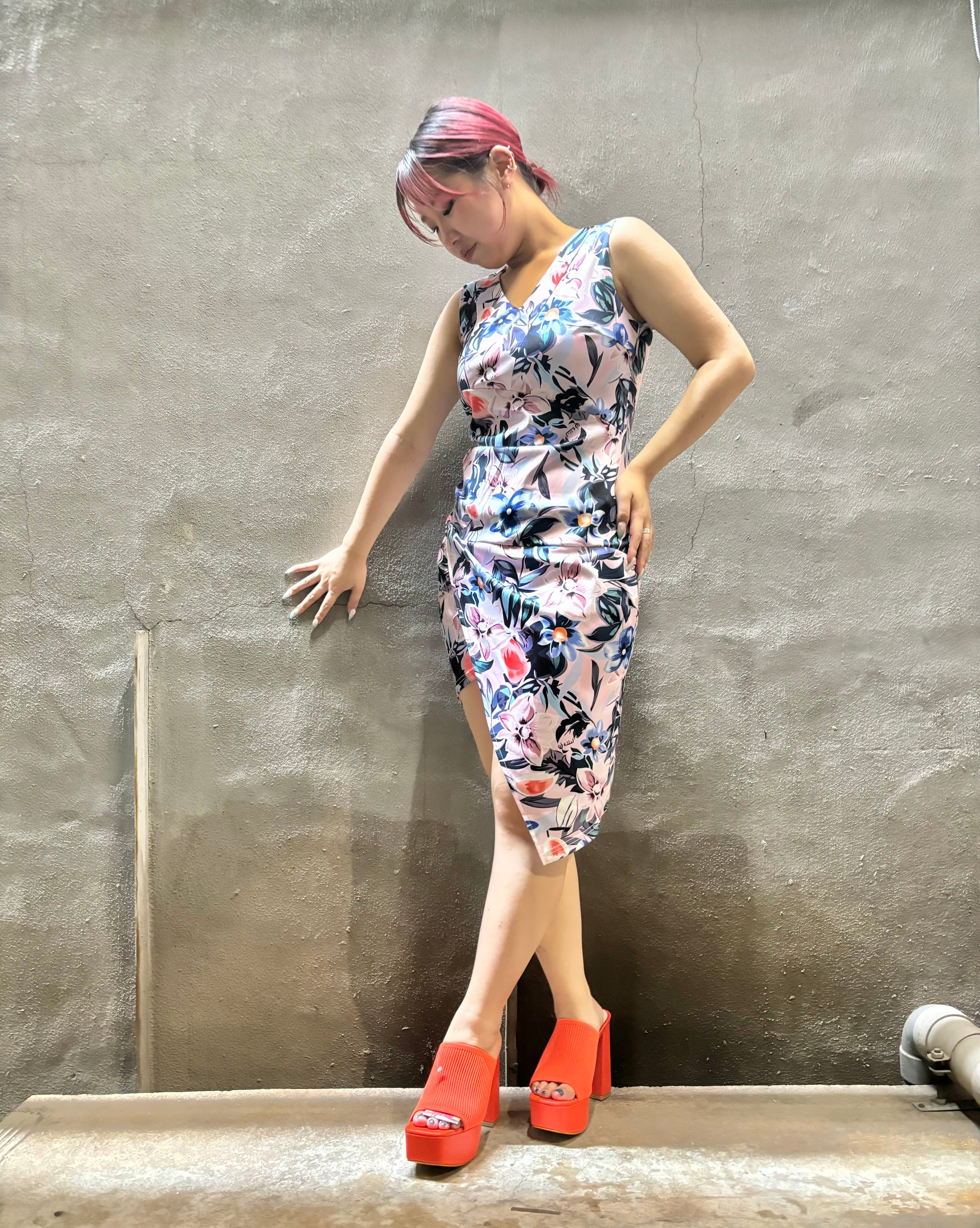 botanical flower print × irregular cache-coeur mini one-piece ワンピース ワンピ 花柄 ボタニカル イレギュラー V開き