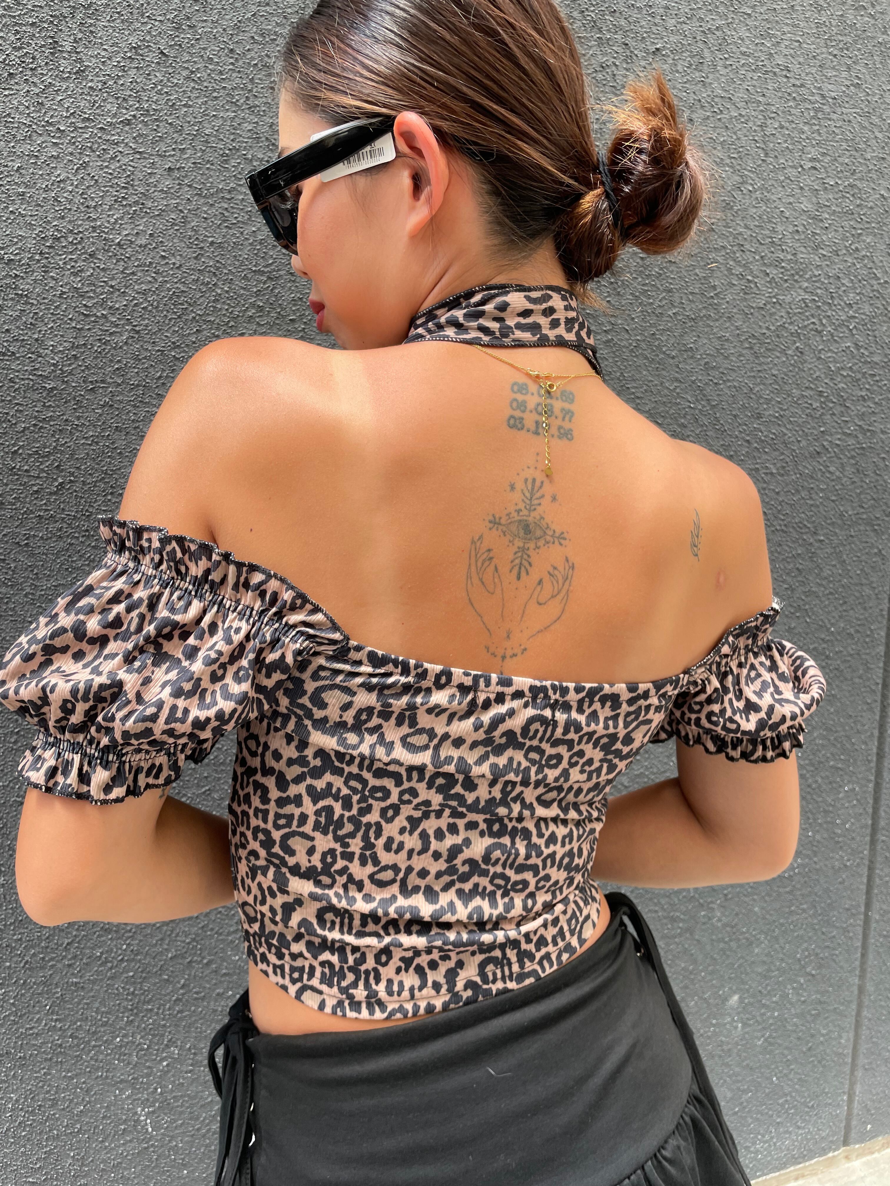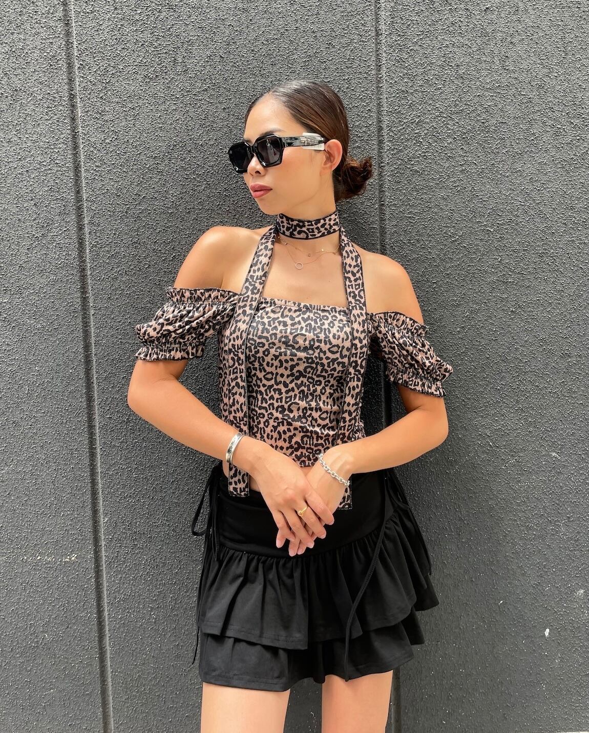 レオパード柄×スクエアネック×パフスリーブが可愛い♡
