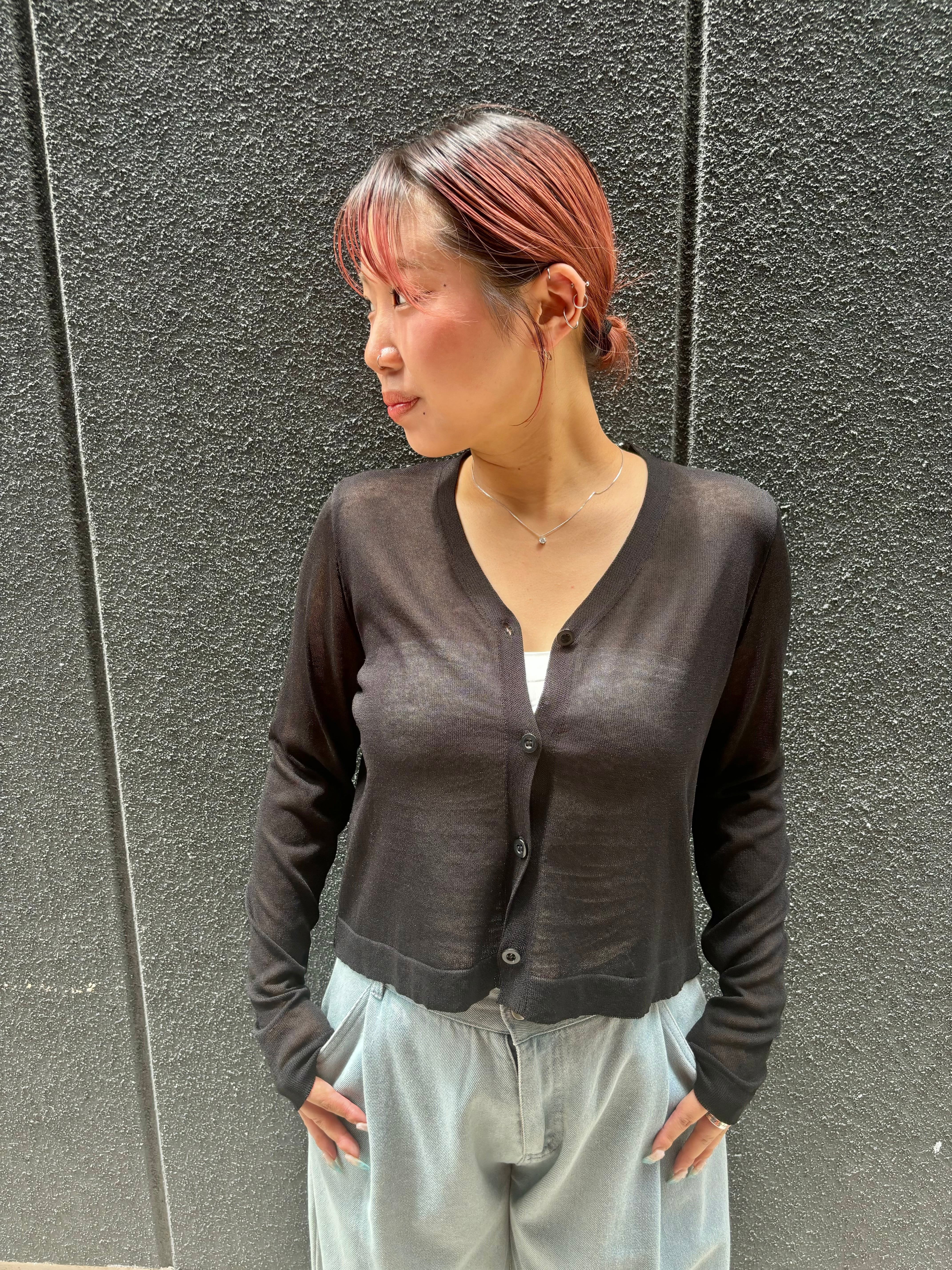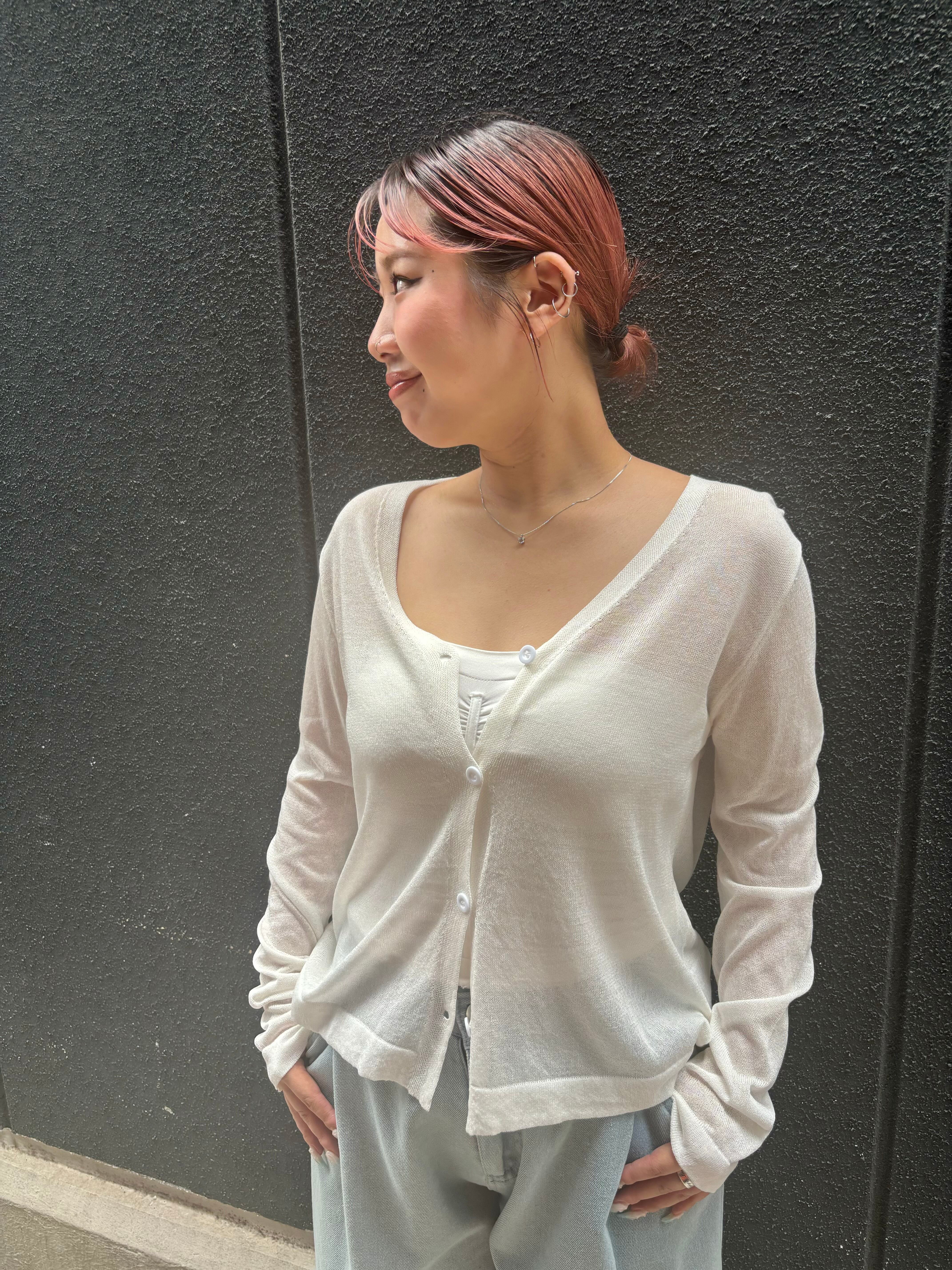 summer knit sheer cardigan カーディガン サマーニット Vネック 薄手 羽織