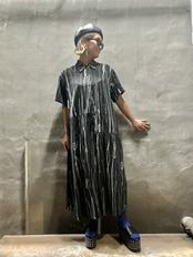 アシンメトリーな切り替えデザインが目を引くシャツワンピース。