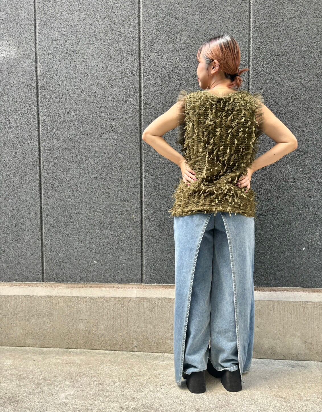 mesh fringe sleeveless tops トップス メッシュ フリンジ ストレッチ 透け感 重ね着