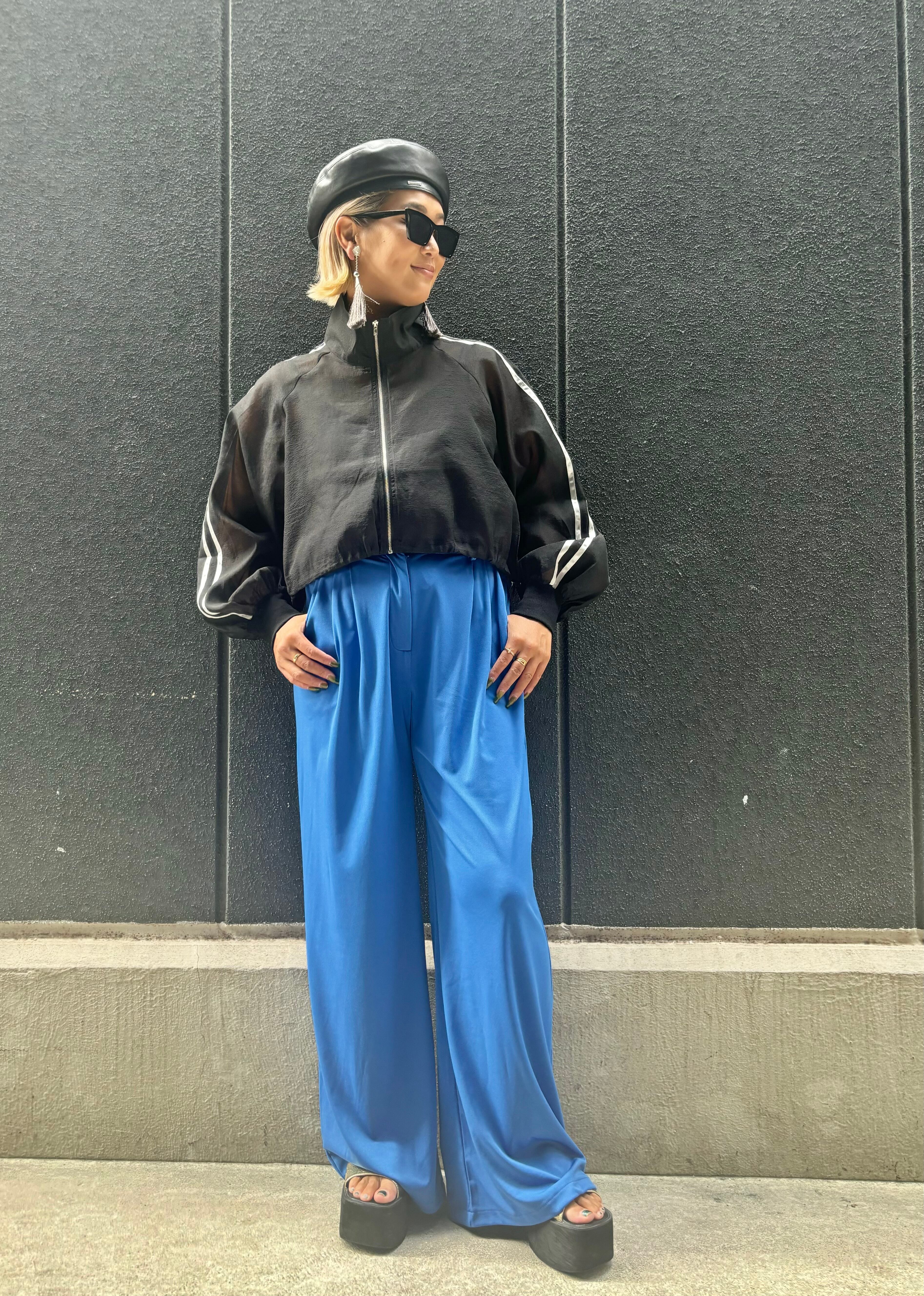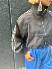 ライン入りのオーガンジーシアー素材が大人可愛いブルゾンジャケット!