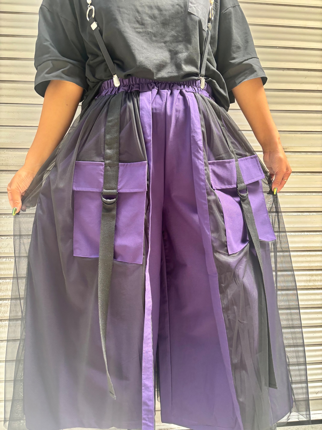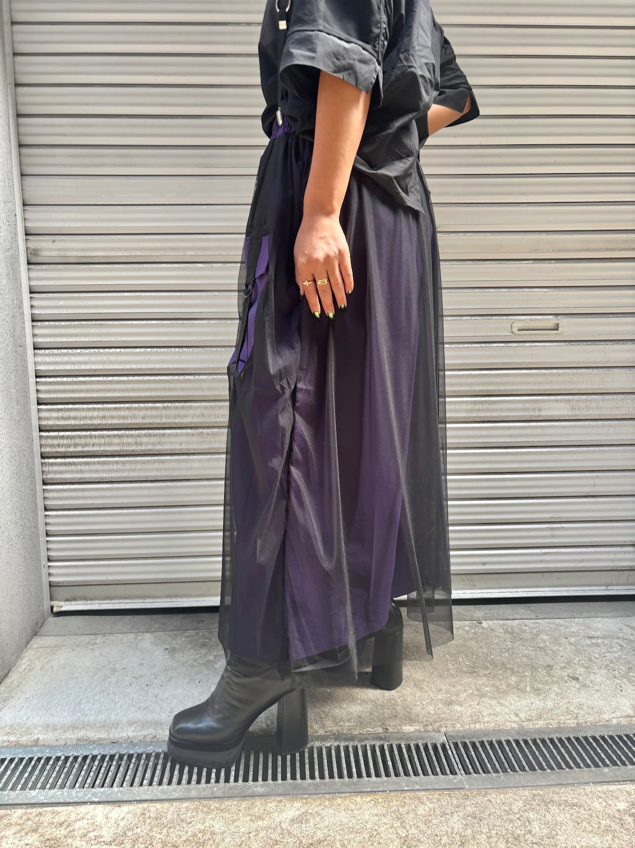 work pocket × tulle cover design pants パンツ デザインパンツ ポケット チュール ゴムウエスト ブラック 黒