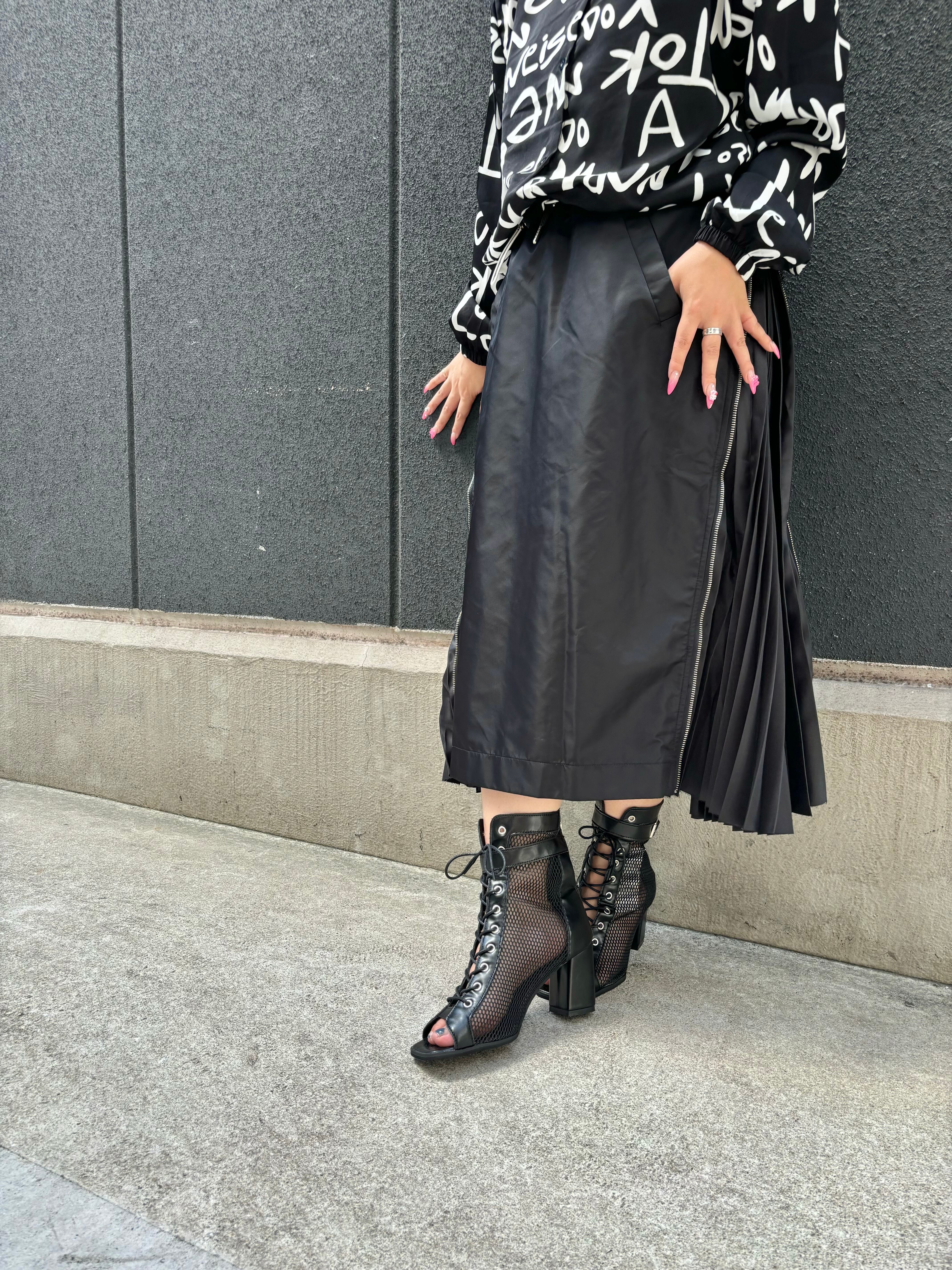 プリーツのスカートサイドに施されたデザインがクールな印象を与えます。