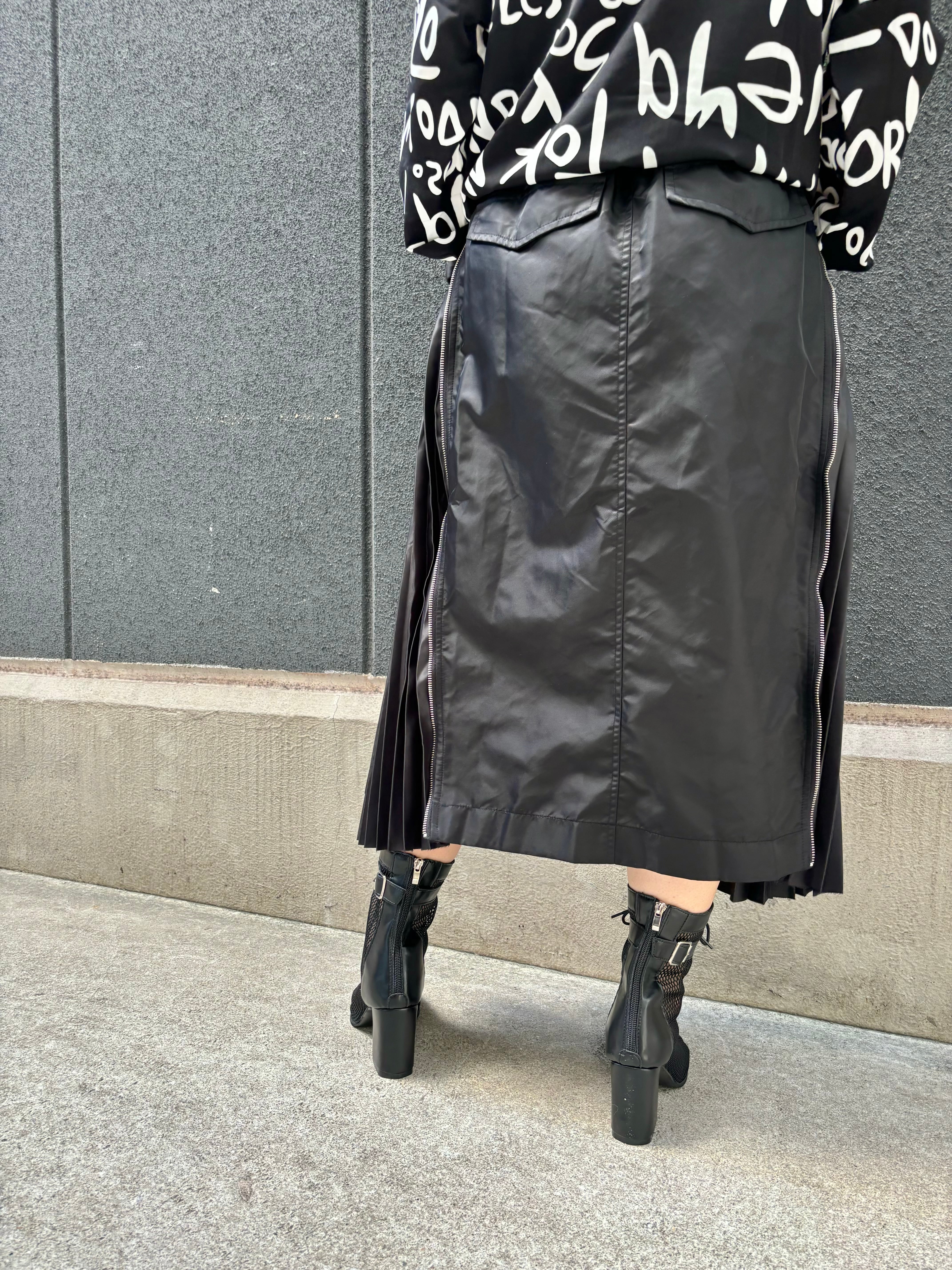 military pleats × zip design skirt スカート デザインスカート ミリタリー プリーツ ジッパー ポケット ゴムウエスト
