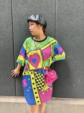 spangle colorful print short sleeve mini one-piece tunicワンピース ワンピ ミニワンピ スパンコール カラフル