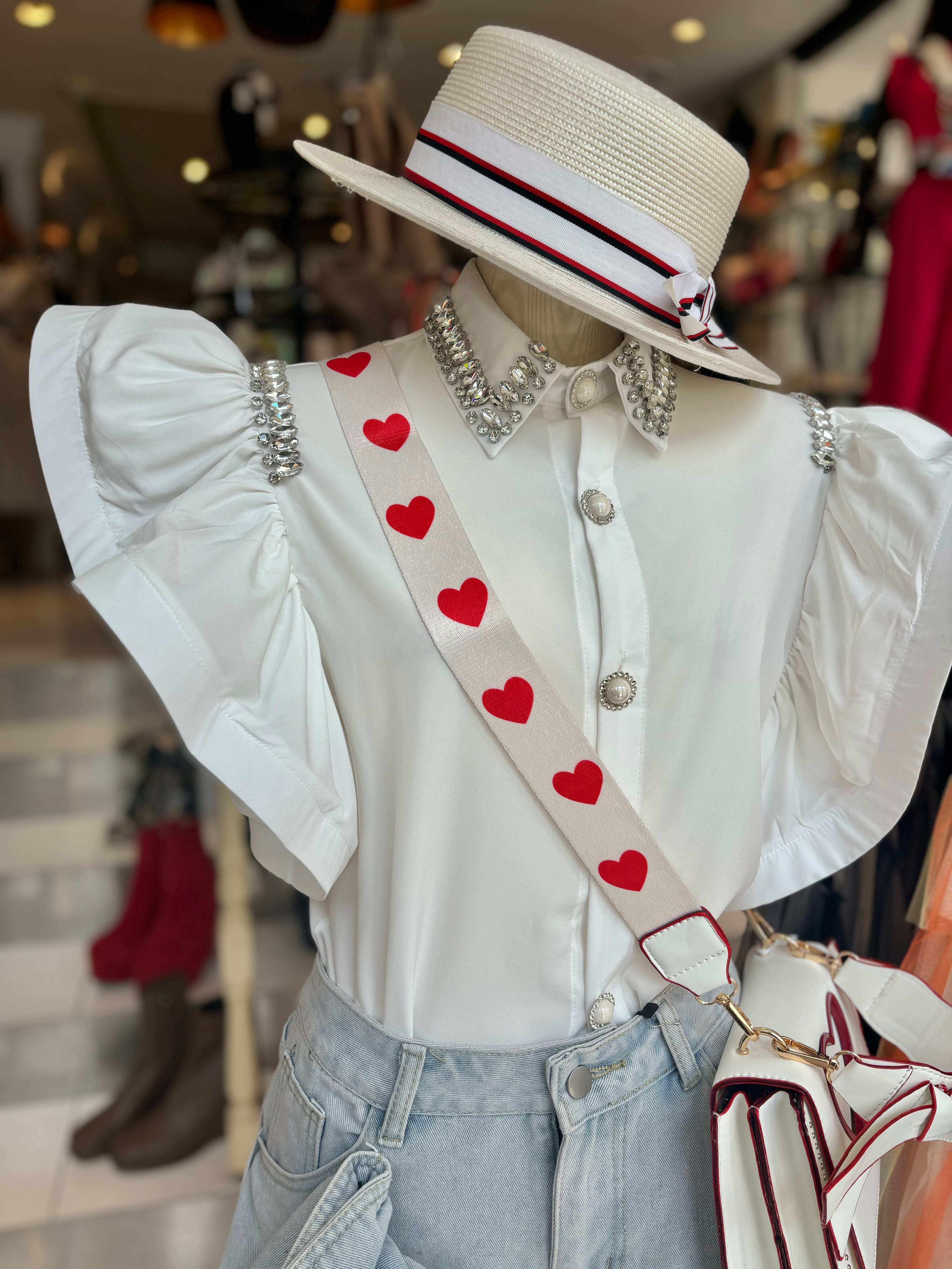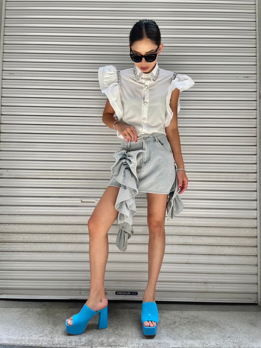 stone × frill sleeve design shirt シャツ ブラウス フリル ストーン