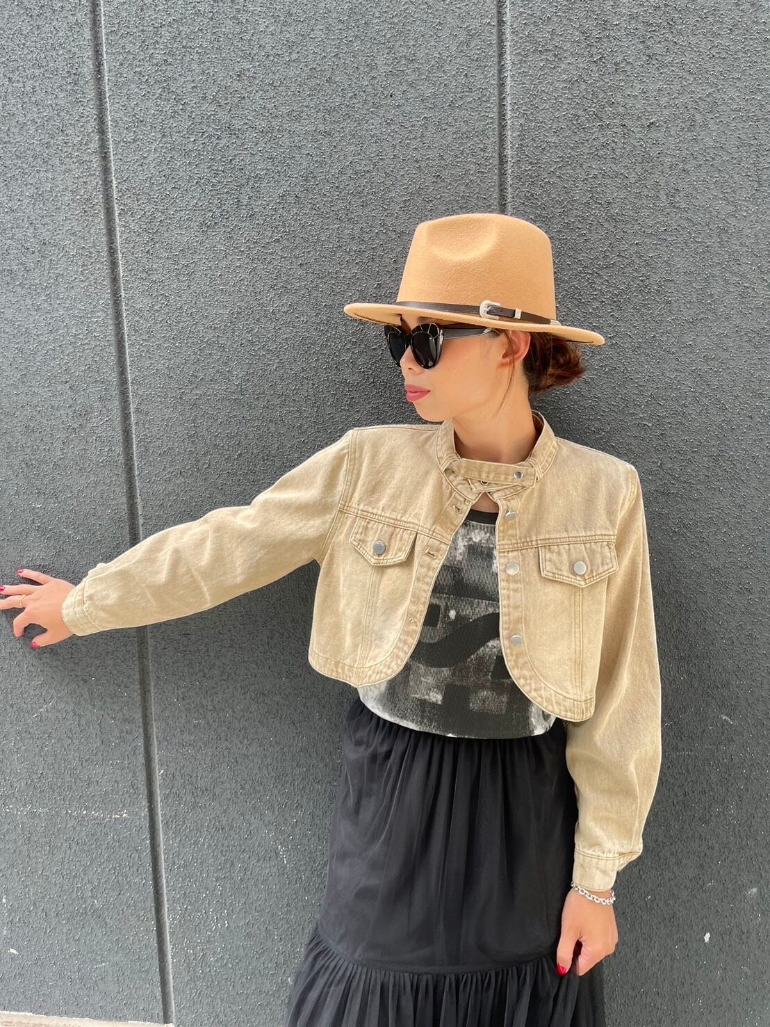 BEIGEカラーのデニムジャケットは、トレンドのアイテムとしておすすめです♪