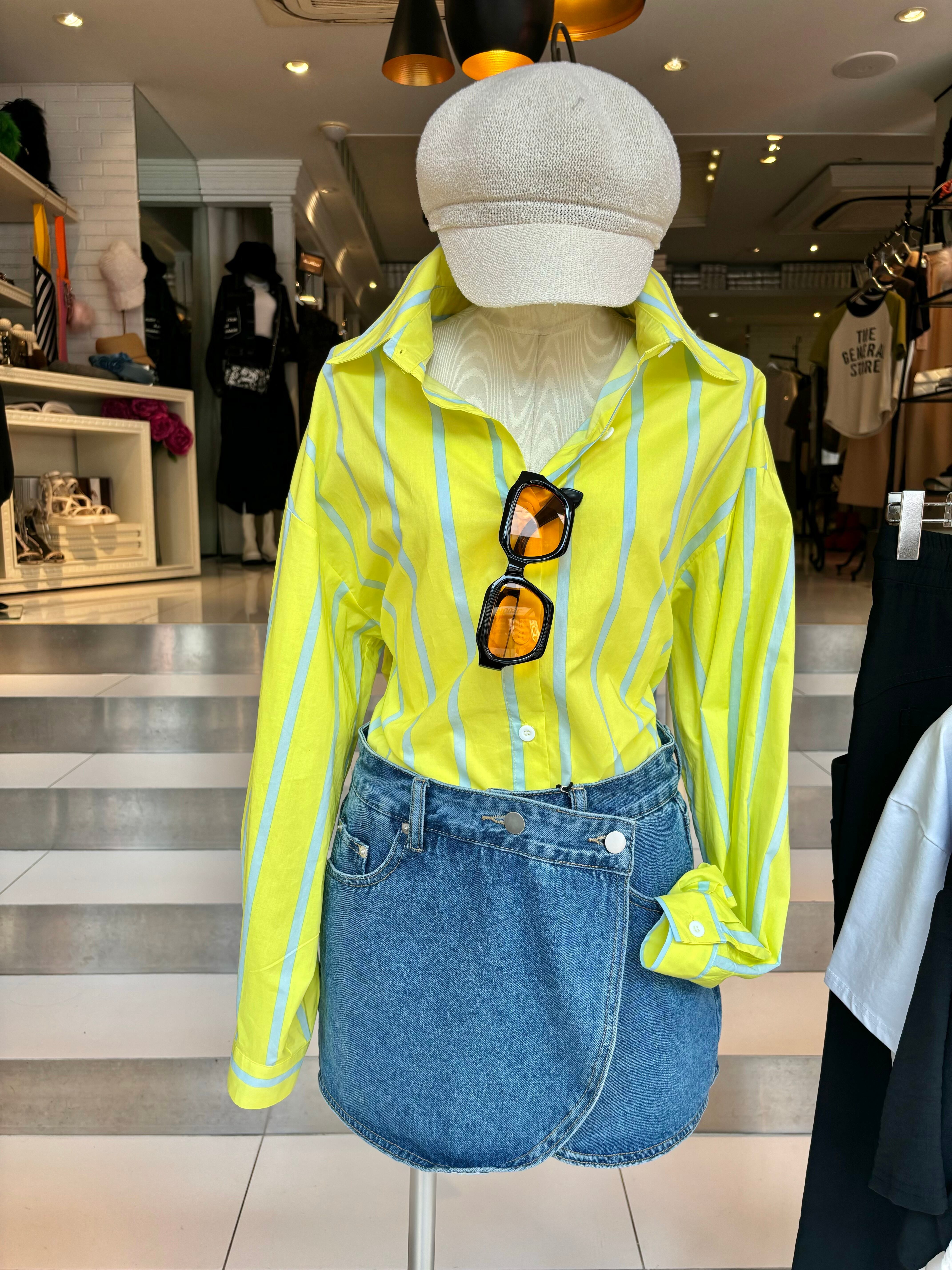 stripe yellow design shirt シャツ デザインシャツ ストライプ 黄色 イエロー オーバーサイズ