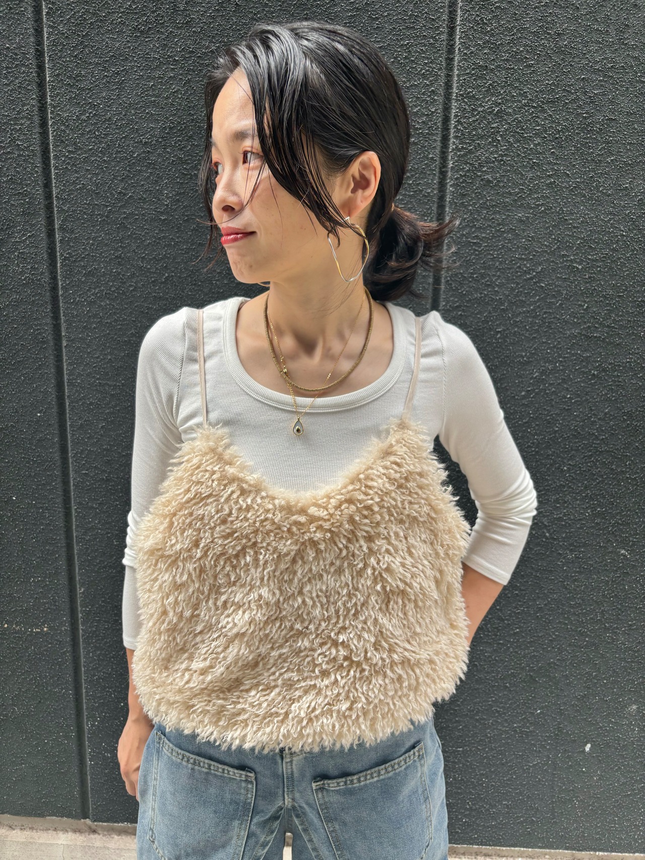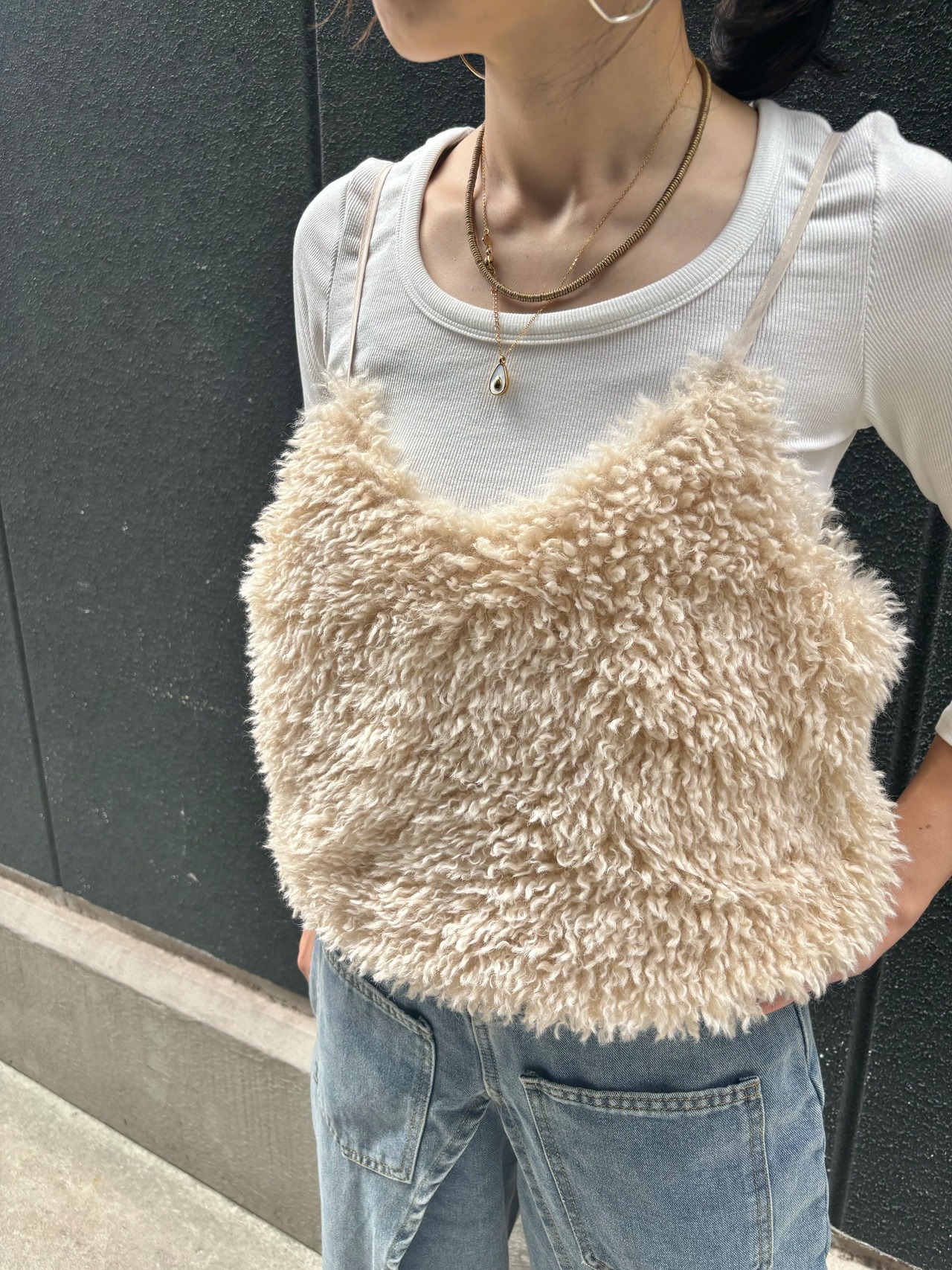 eco sheep fur camisole キャミソール キャミ エコファー もこもこ ふわもこ 重ね着