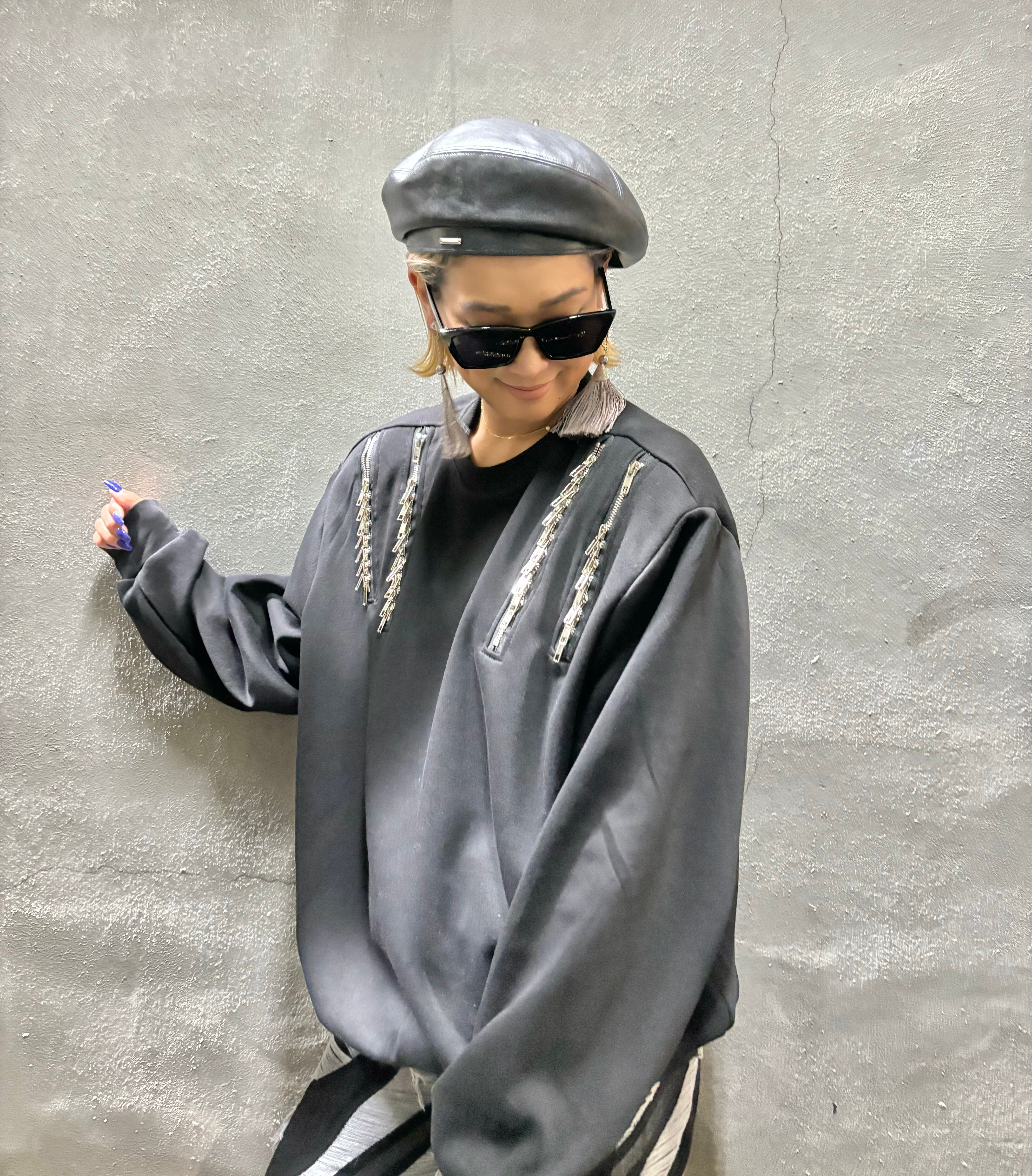 funky zip design pullover tops トップス プルオーバー ブラック 黒 シルバー ジップ ジッパー