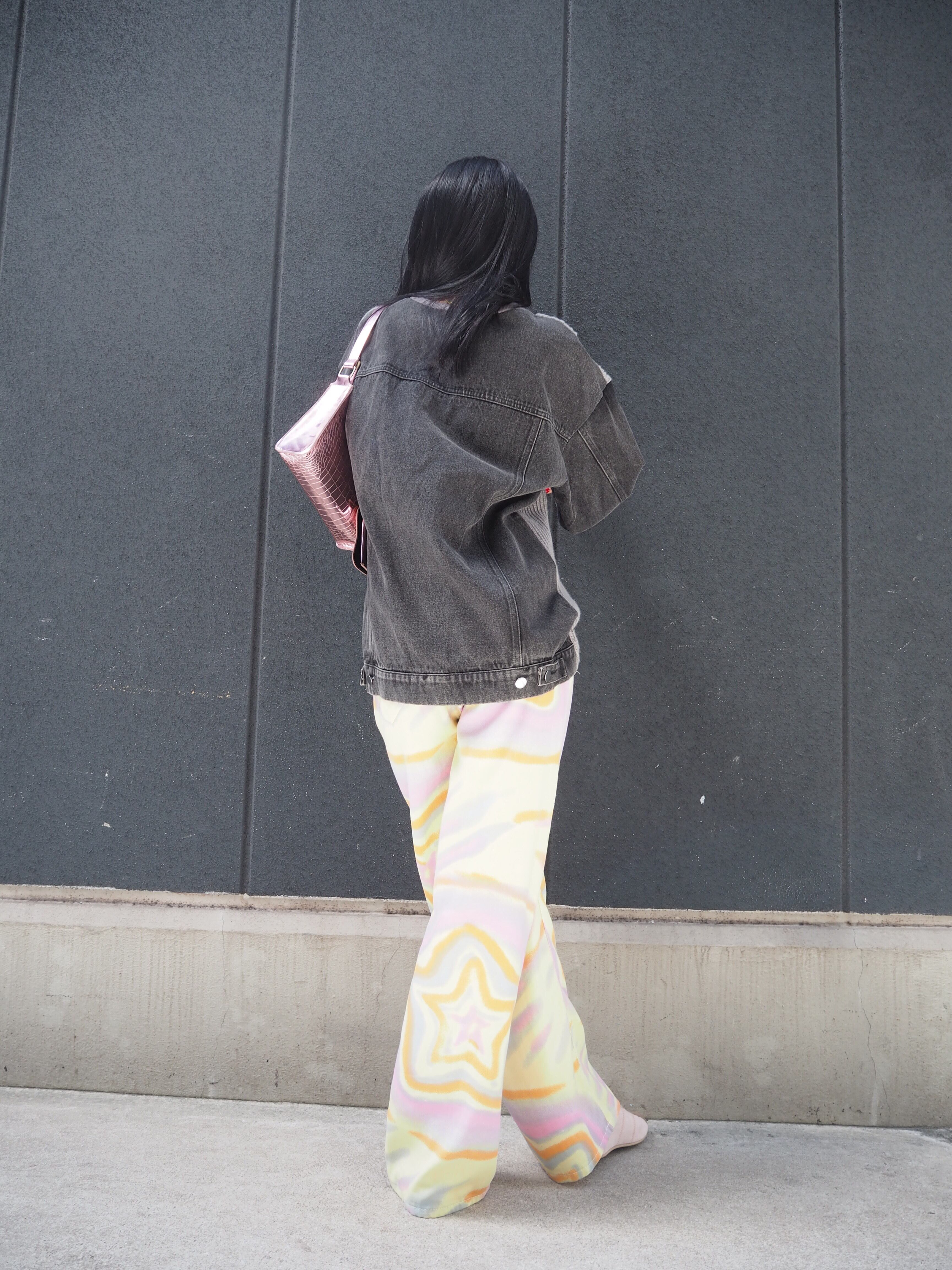 knit × black denim × print design tops トップス ニット デニム ブラックデニム 切替デザイン 秋 カジュアル