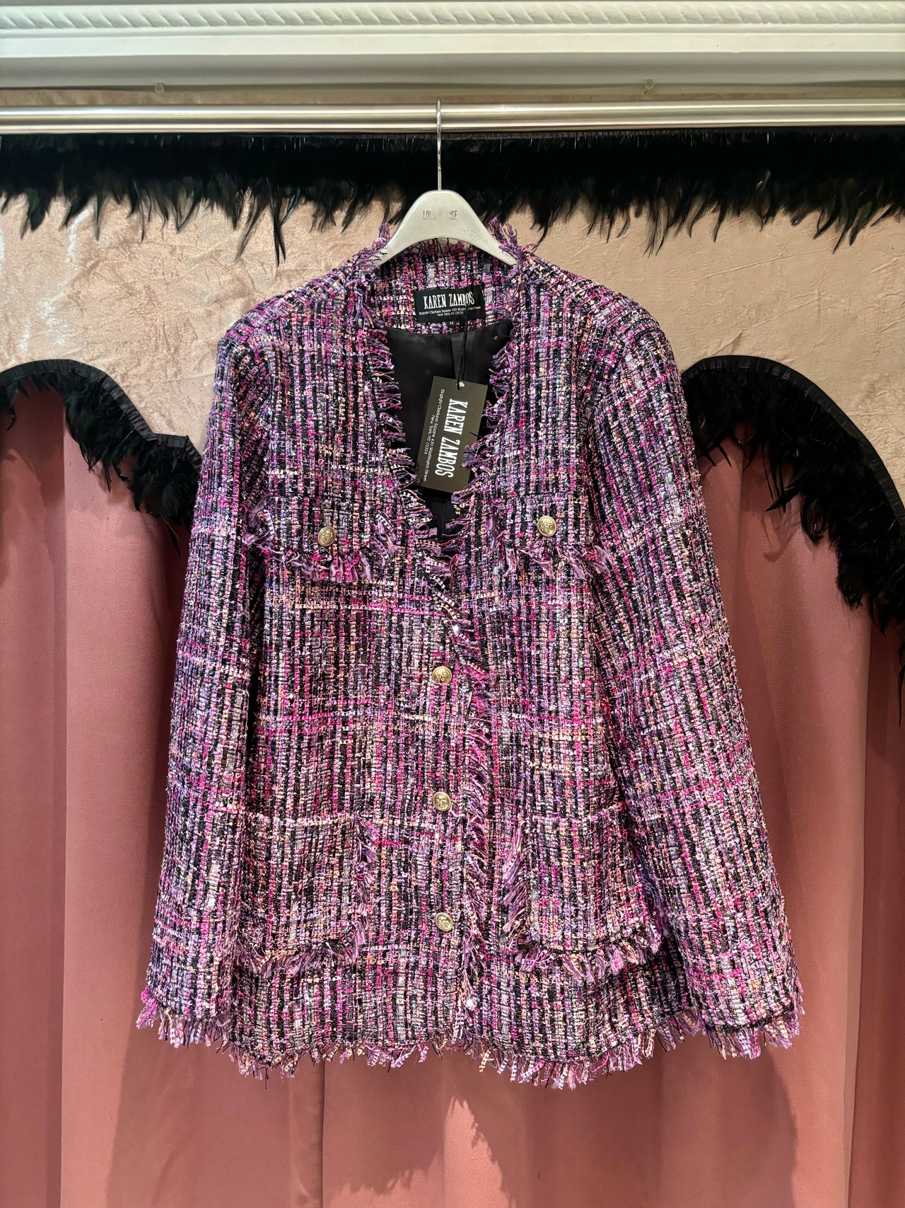 fancy tweed V-neck design jacket ジャケット ツィード Vネック パープル オーバーサイズ
