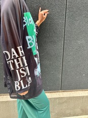 メッシュ素材とストレッチ性があり、オーバーサイズのシルエットがおしゃれな一枚。