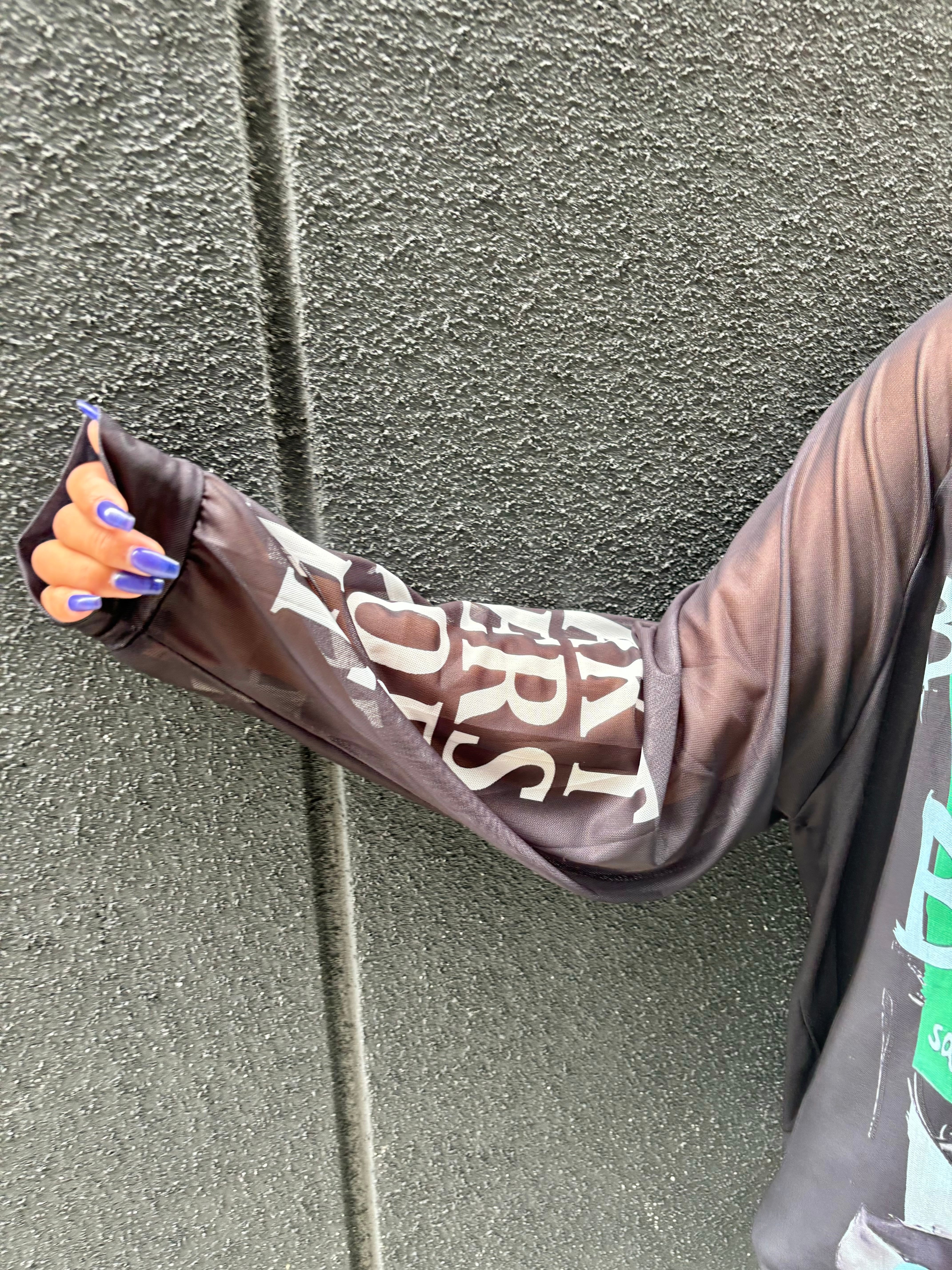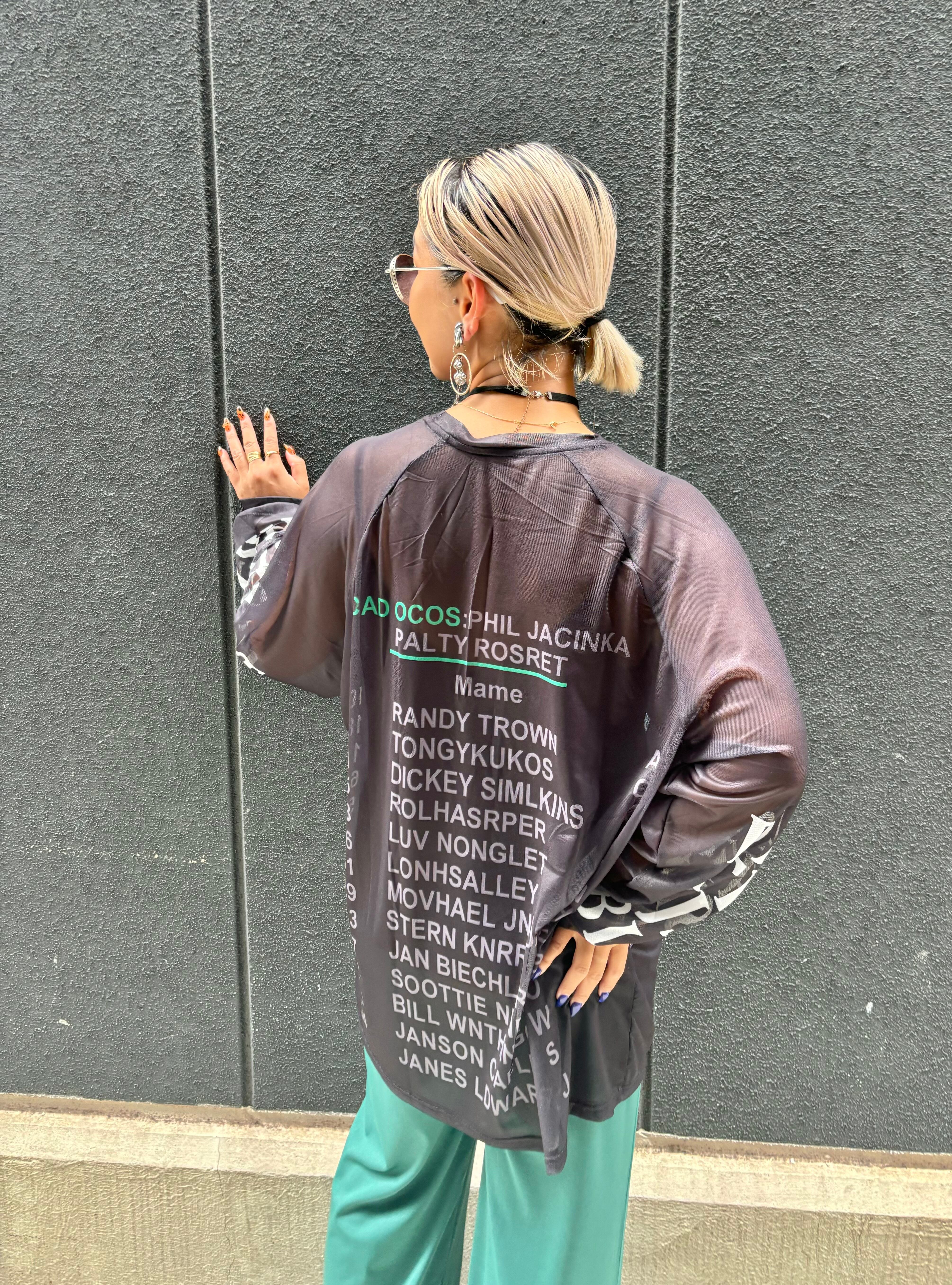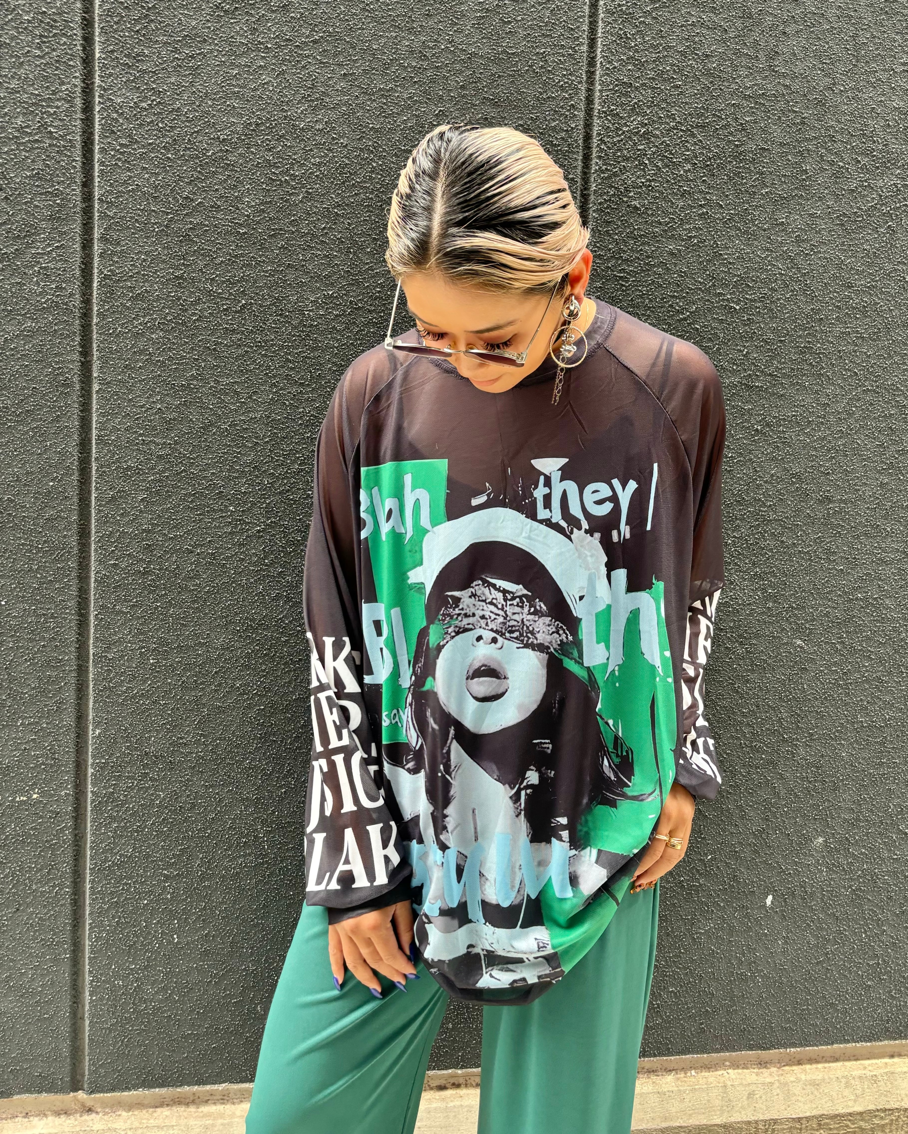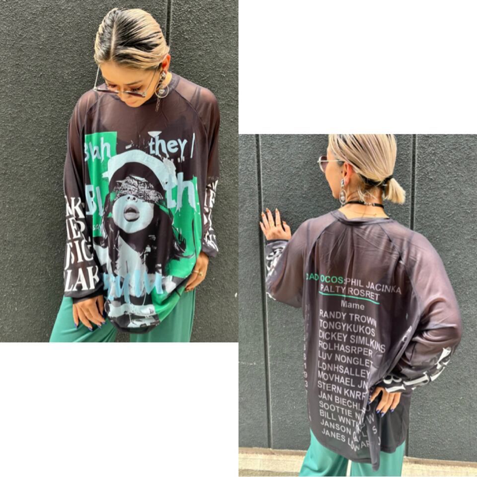 stretch mesh girl print design tops トップス メッシュ ストレッチ オーバーサイズ プリントT 重ね着