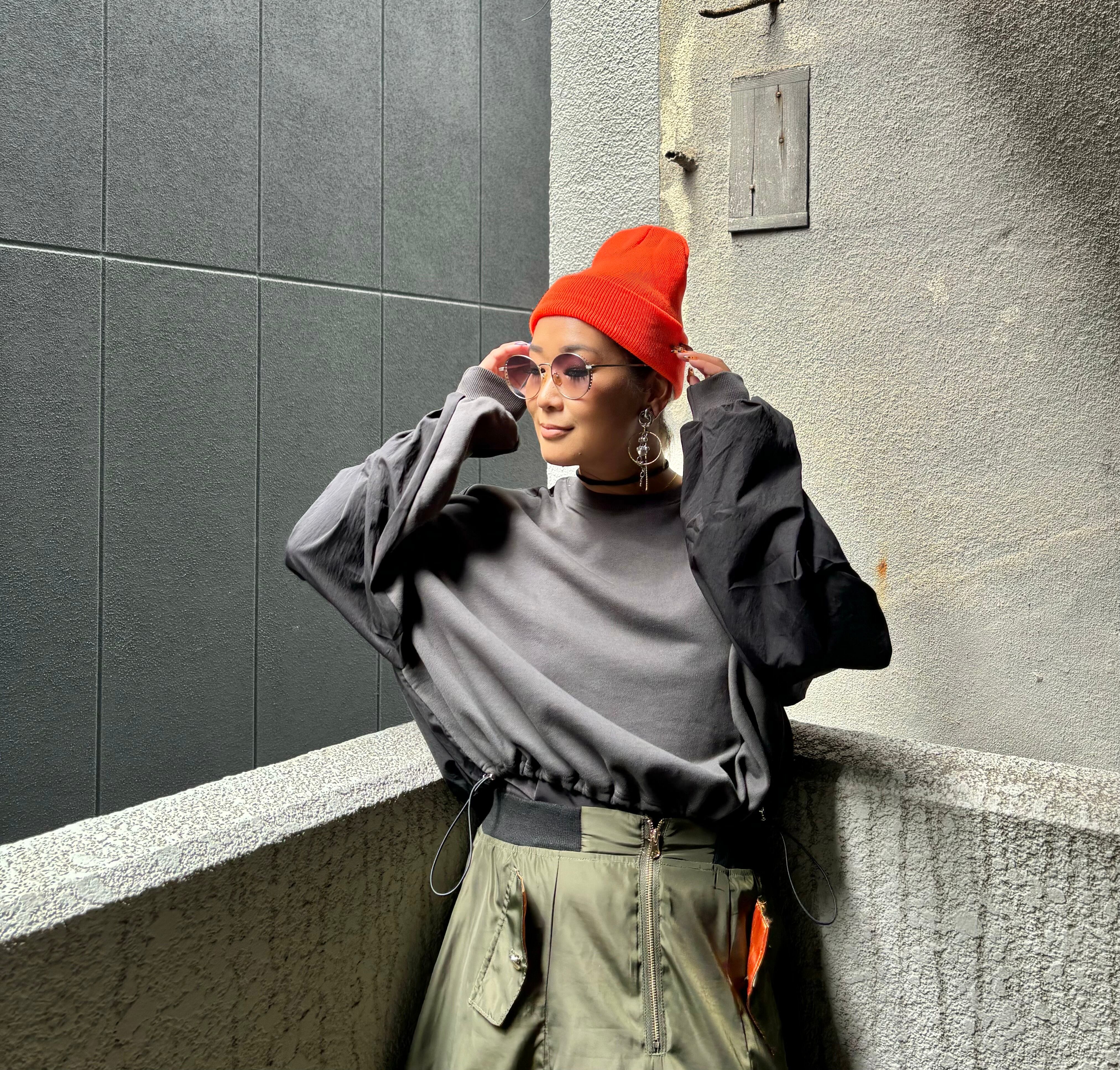 シャカシャカ素材と切替デザインが特徴的なトップス♡