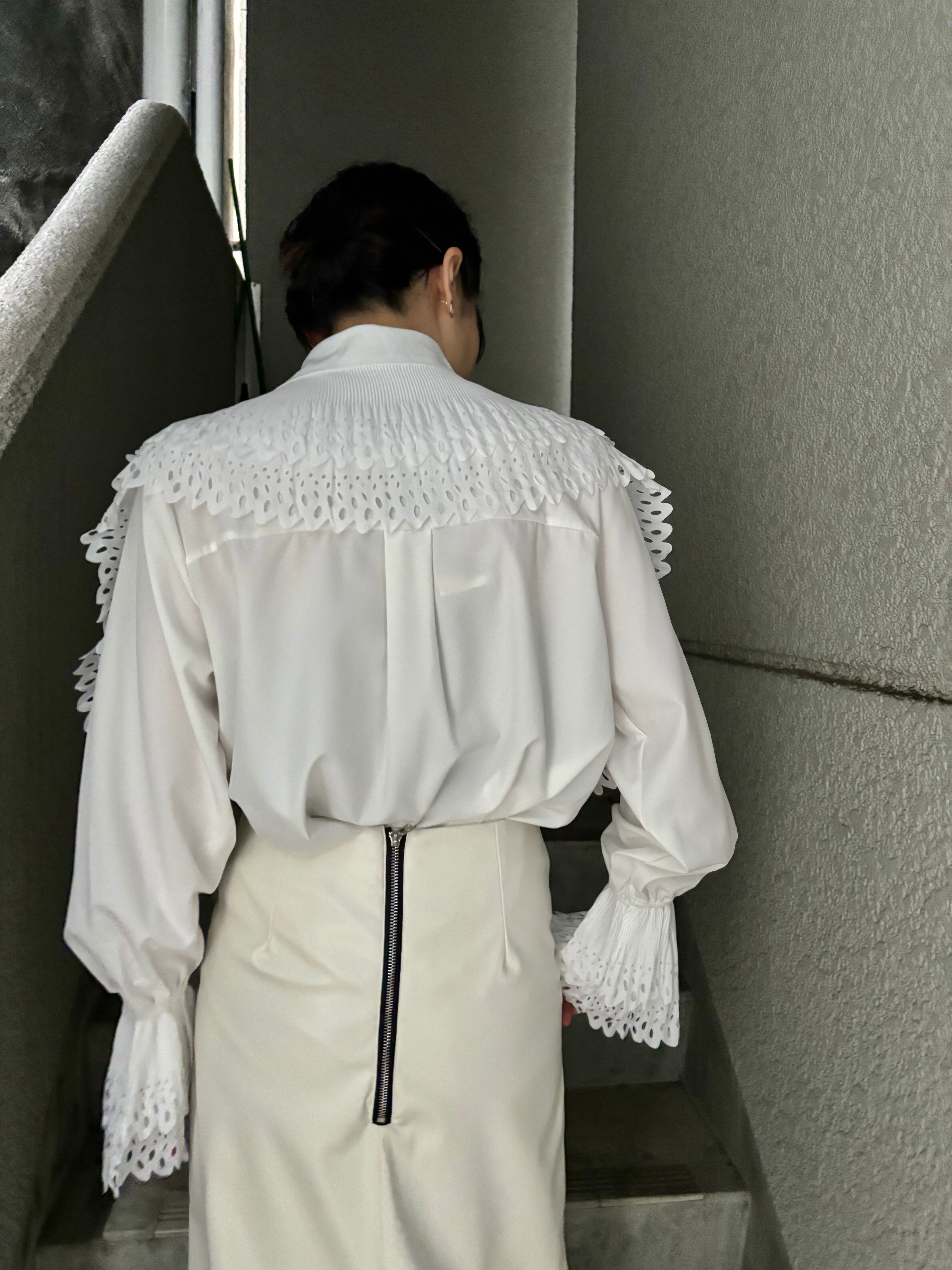 pointed pleats collar design shirt シャツ ブラウス ホワイトシャツ デザインシャツ 襟 プリーツ