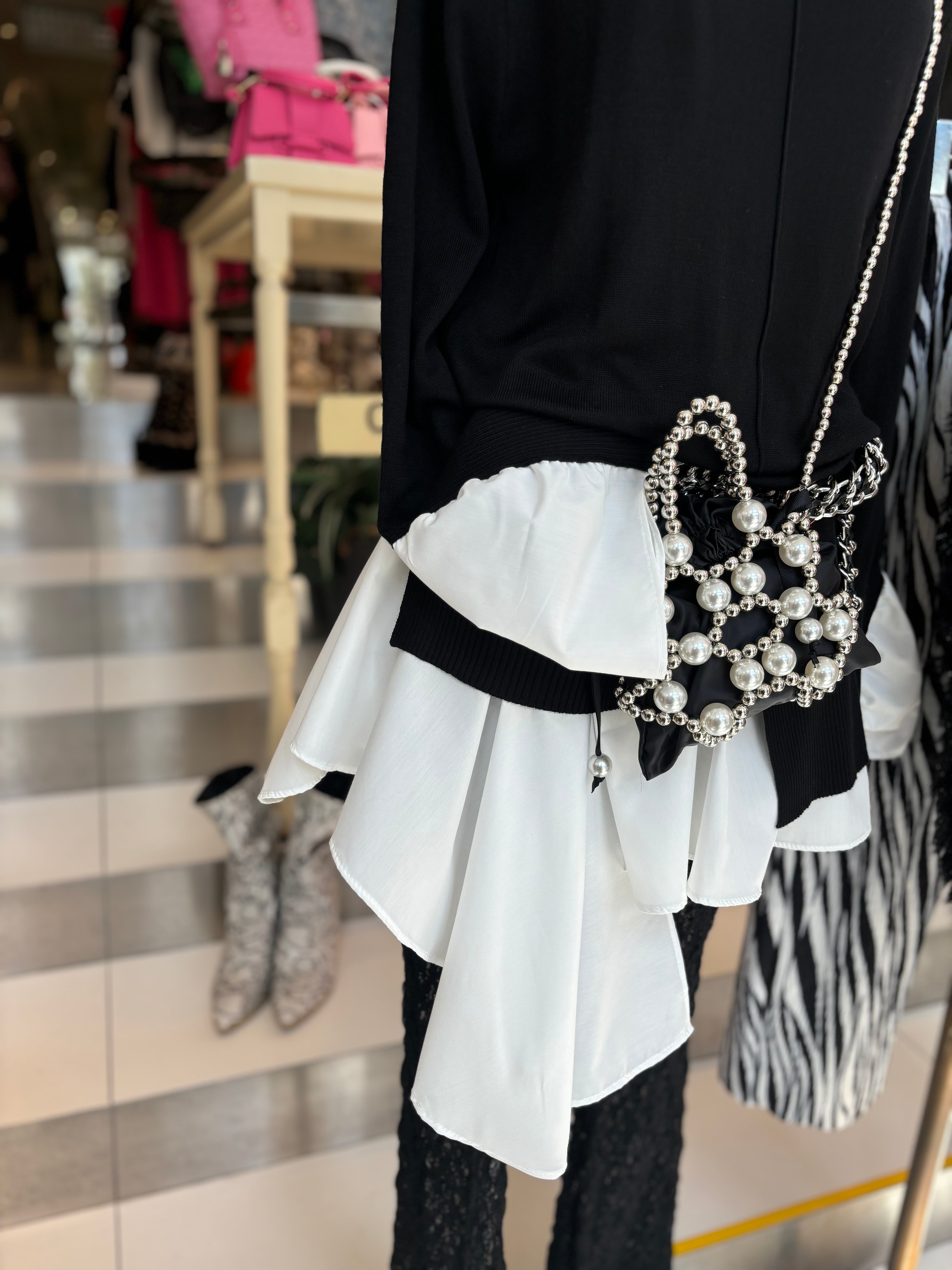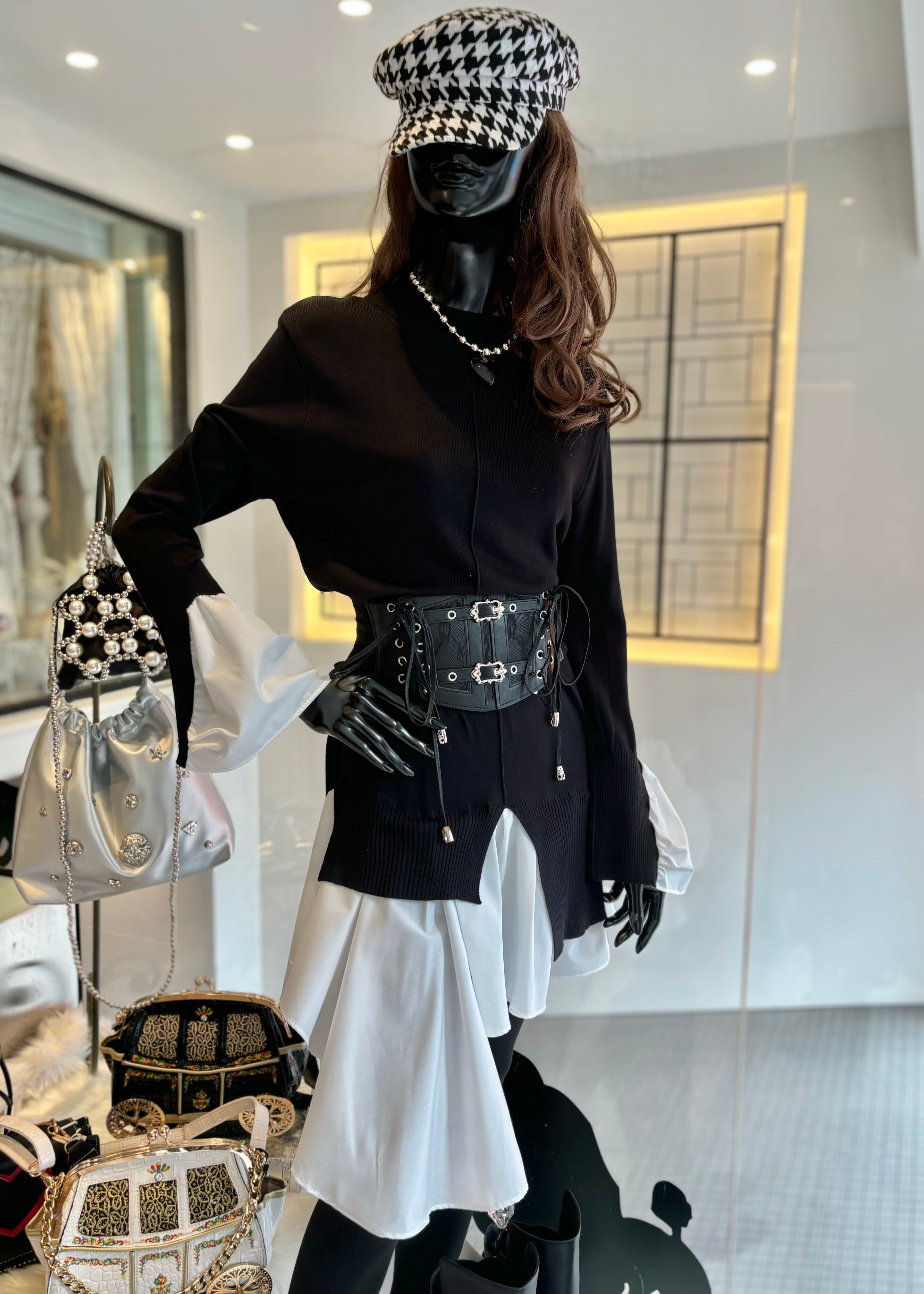 knit docking asymmetry design one-piece ワンピース ワンピ ドッキング 白黒 バイカラー 重ね着風 アシンメトリー