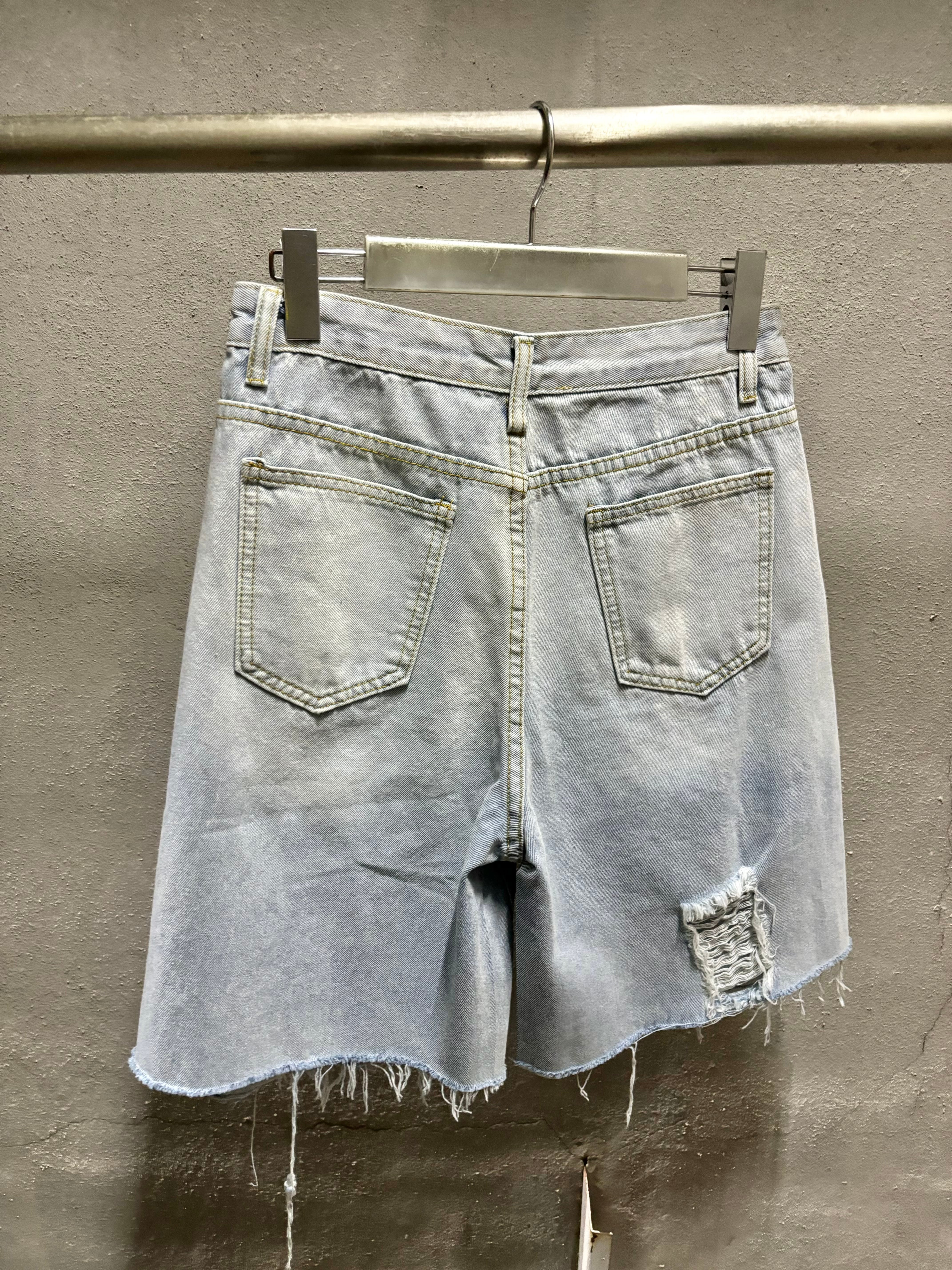 damage denim half pants デニム パンツ ハーフ丈 デザインパンツ カジュアル