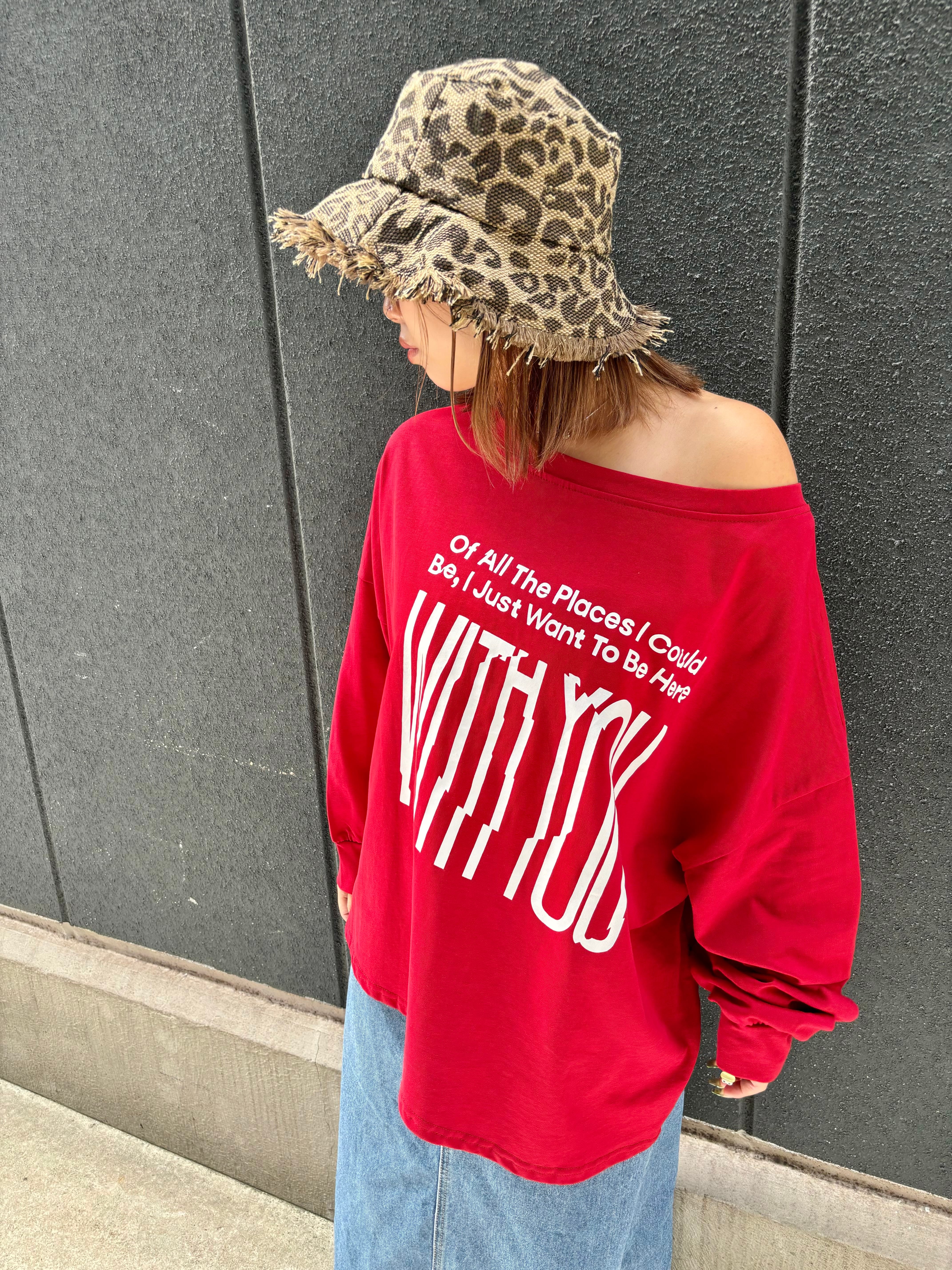 W face bi-color print long sleeve tops pullover トップス プルオーバー プリントT カジュアル
