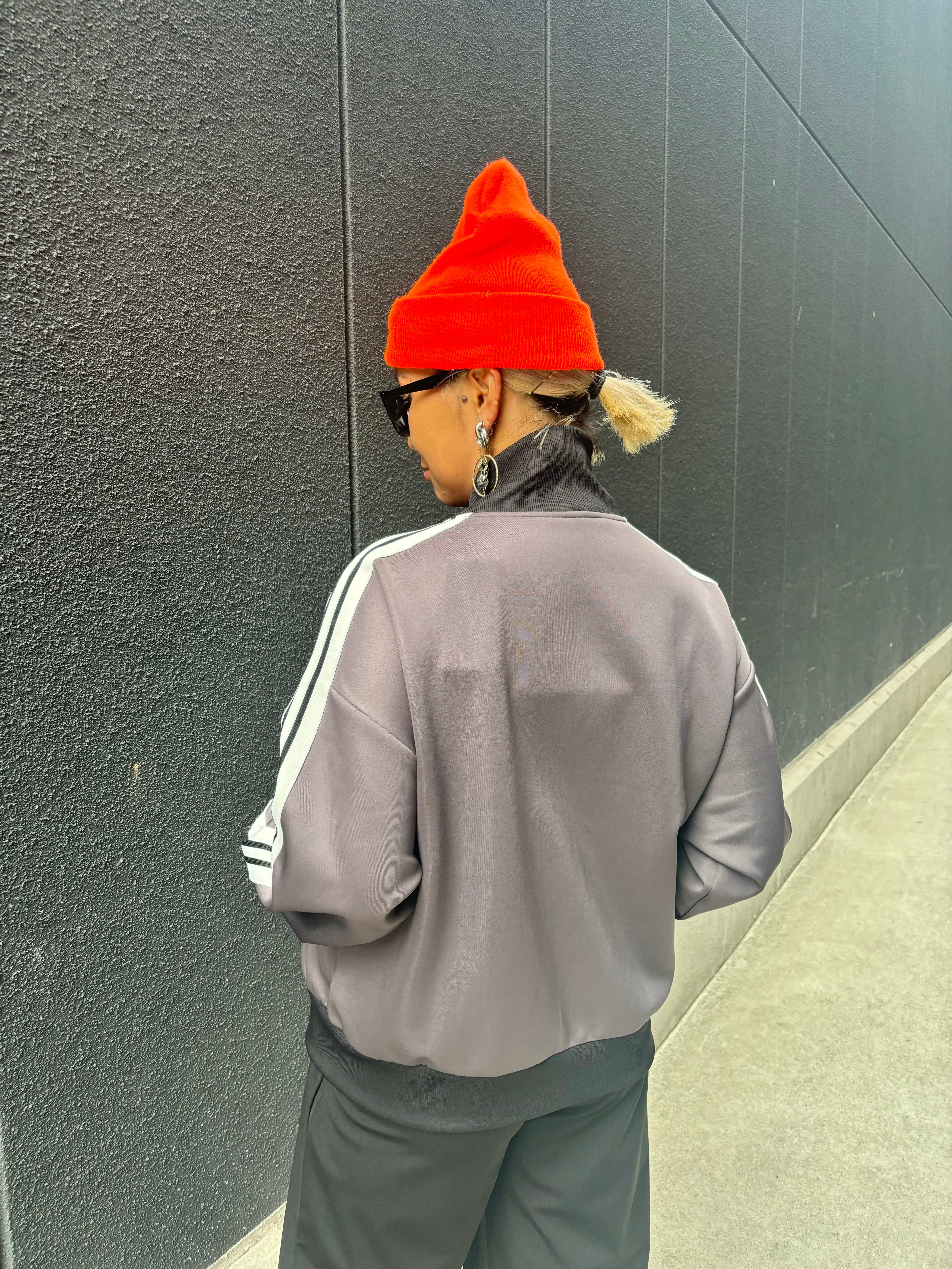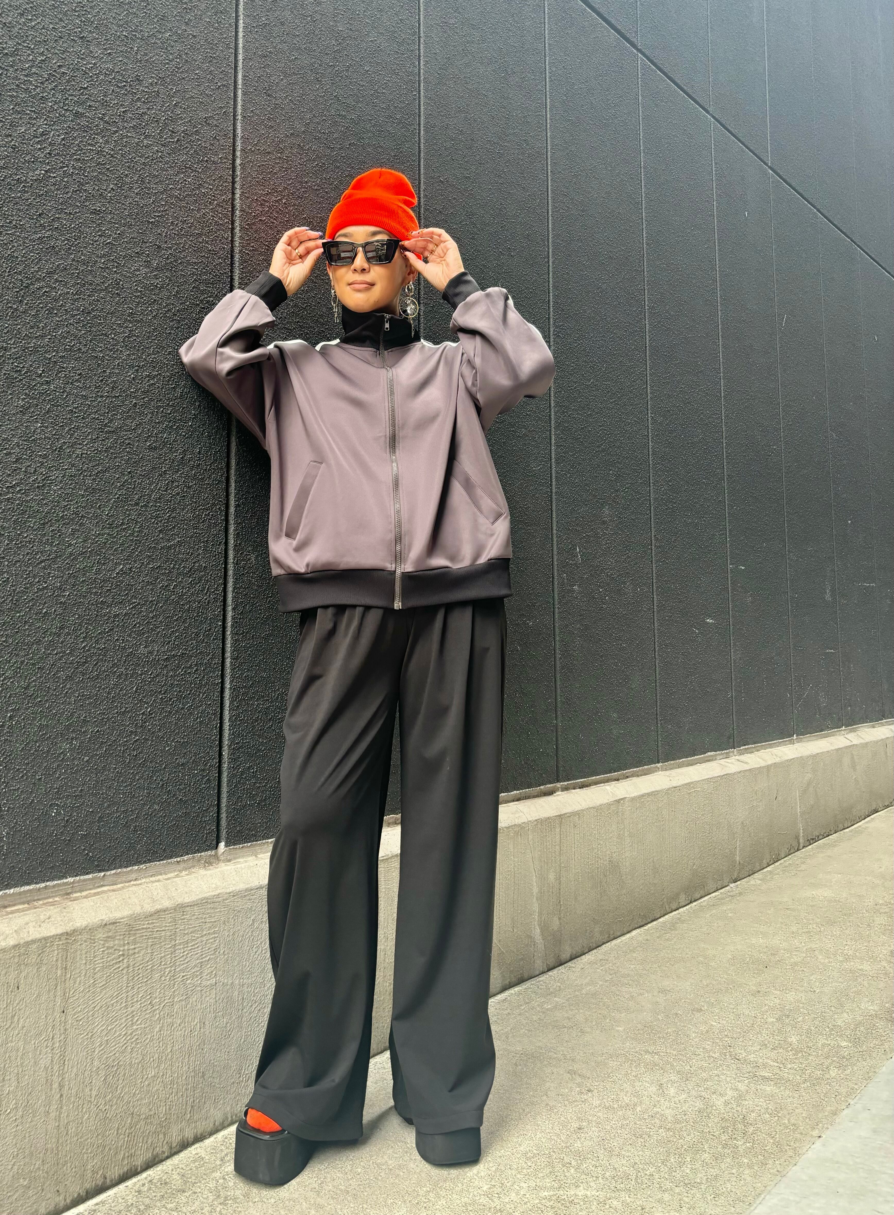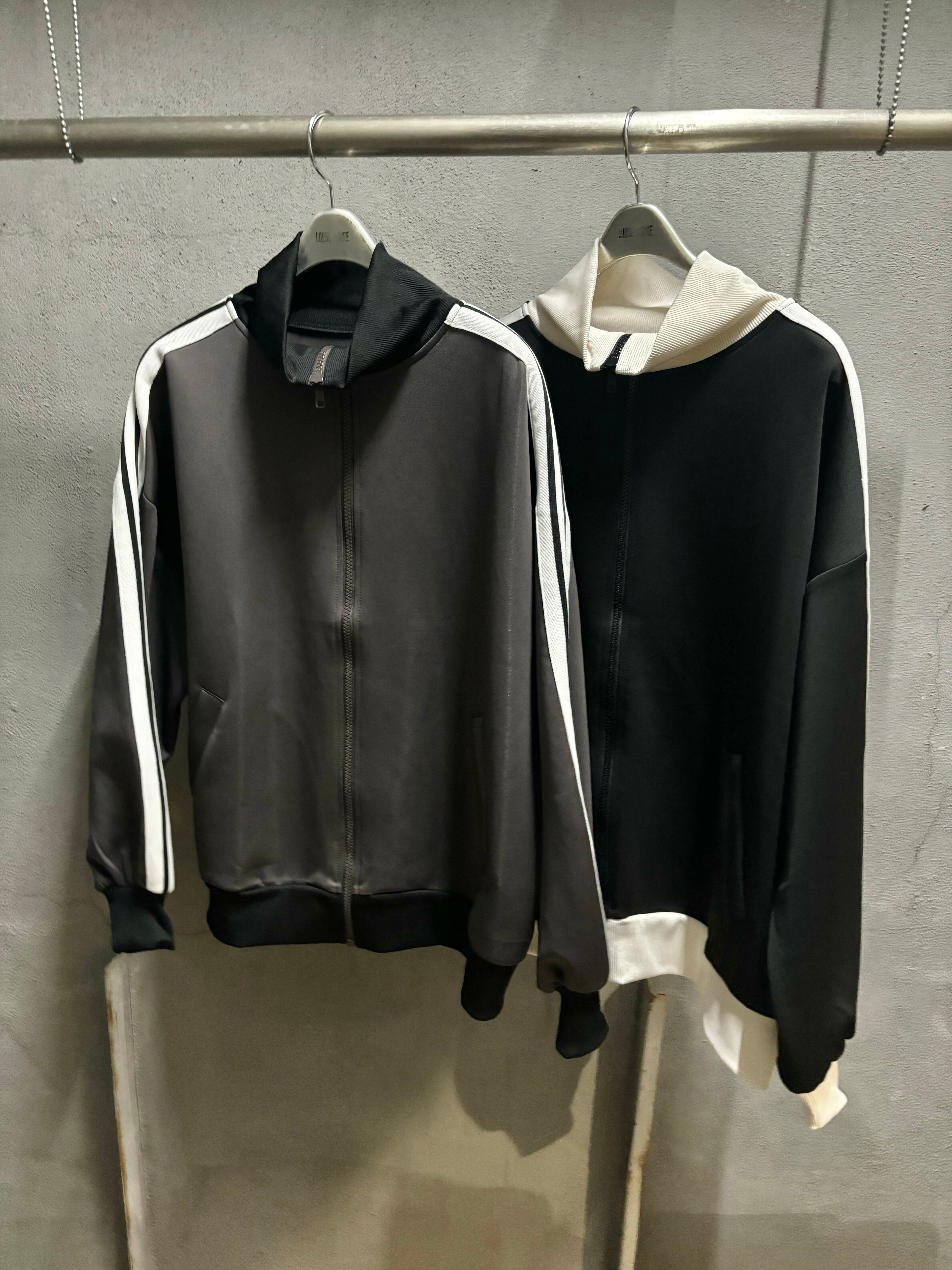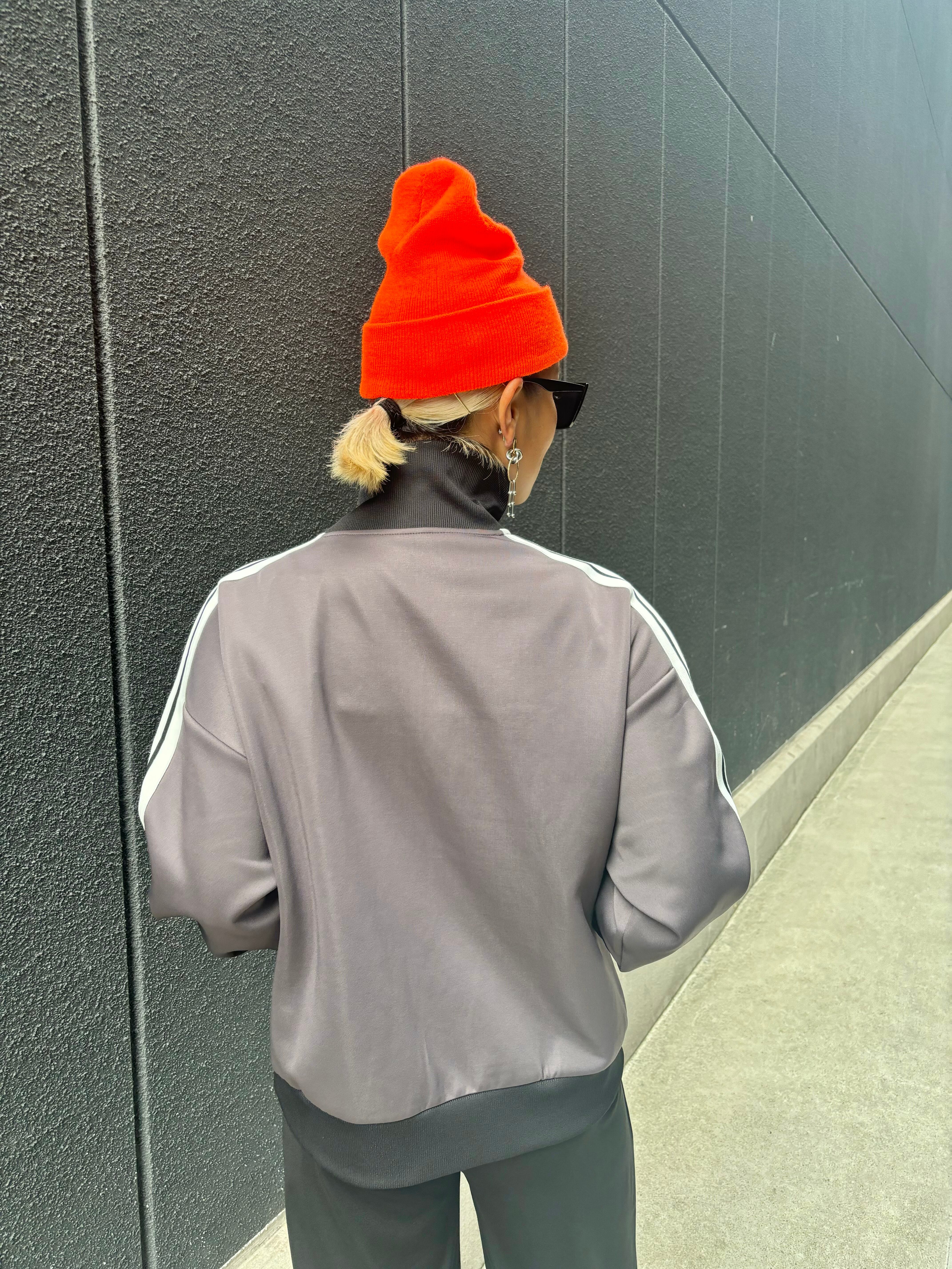 line × stand neck sporty zip up design blouson ブルゾン ジップアップ ライン入り スタンドネック リブ切替 スポーティ ジャージー
