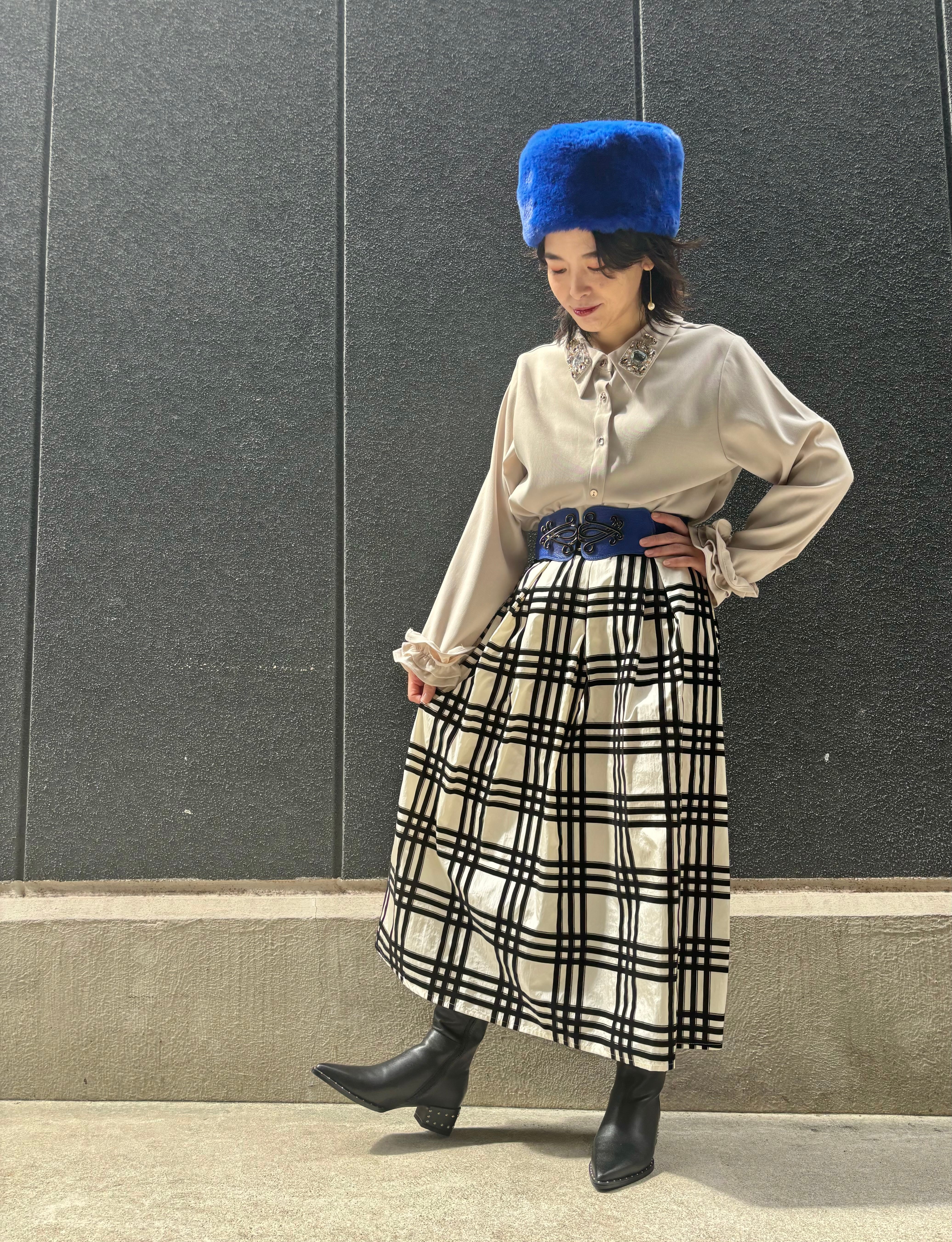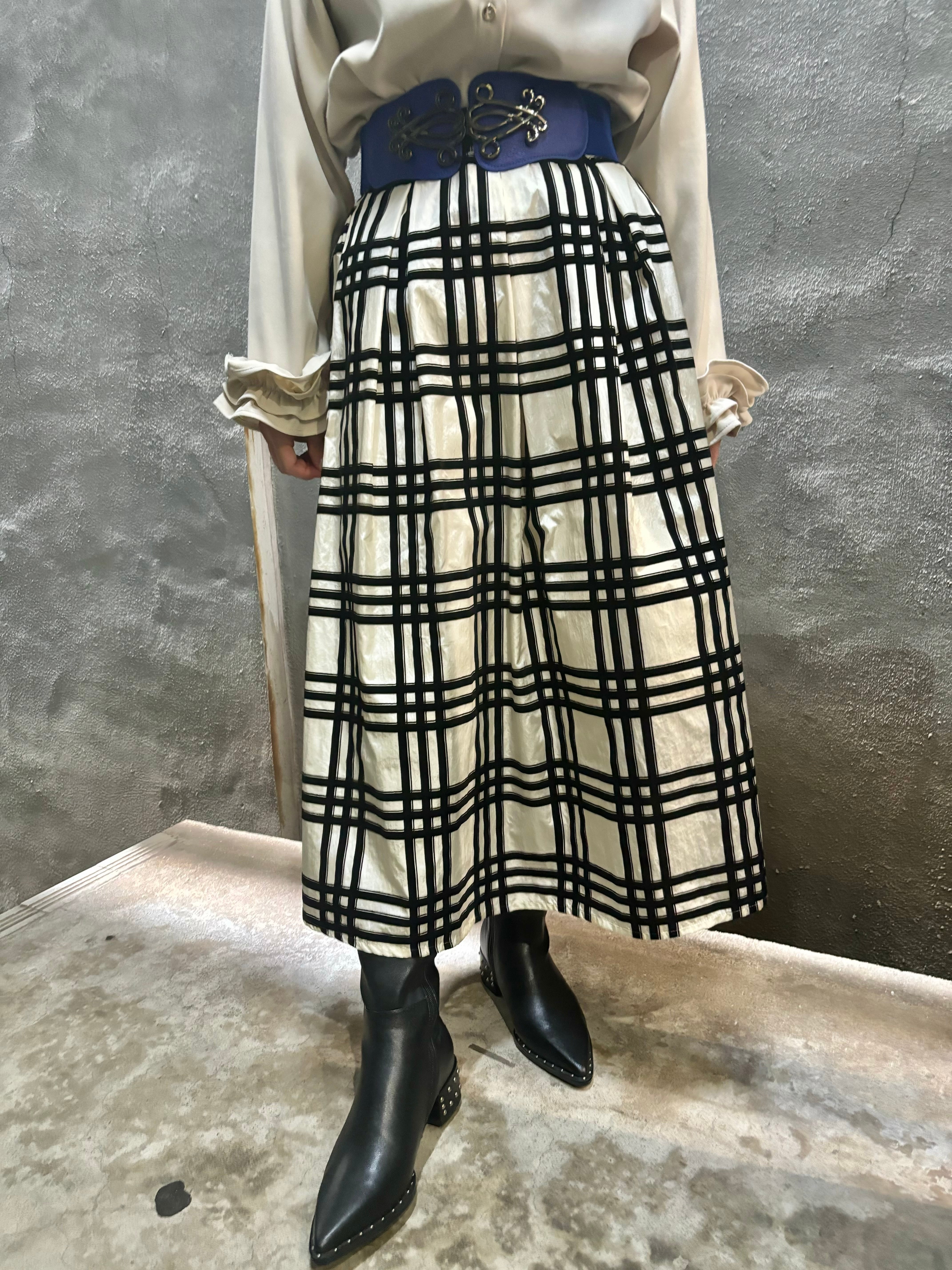 バイカラーのチェック柄が目を引くフレアスカート♡