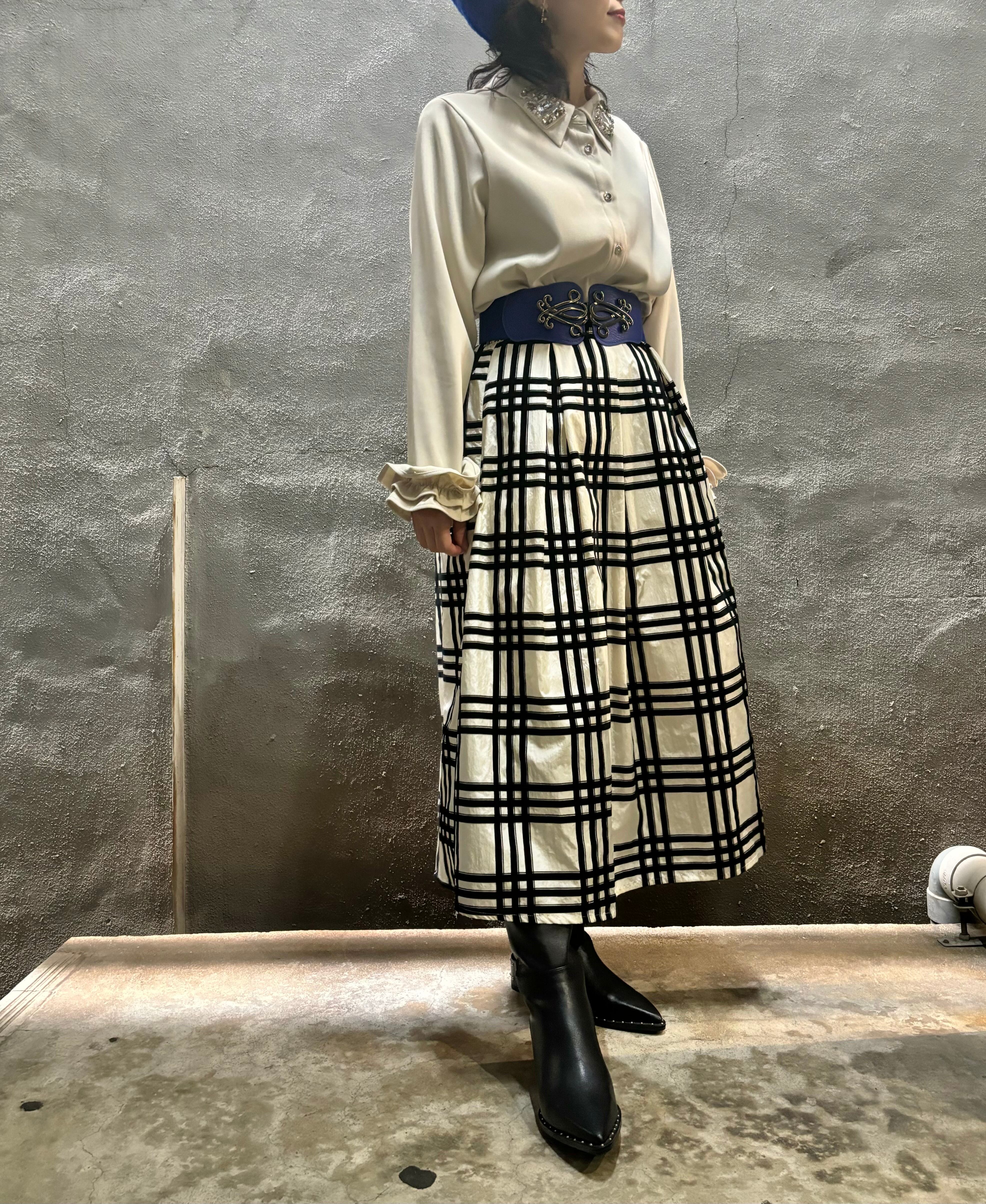frocky check tuck gather flare skirt スカート フレアスカート ギャザー タック チェック バイカラー フロッキー