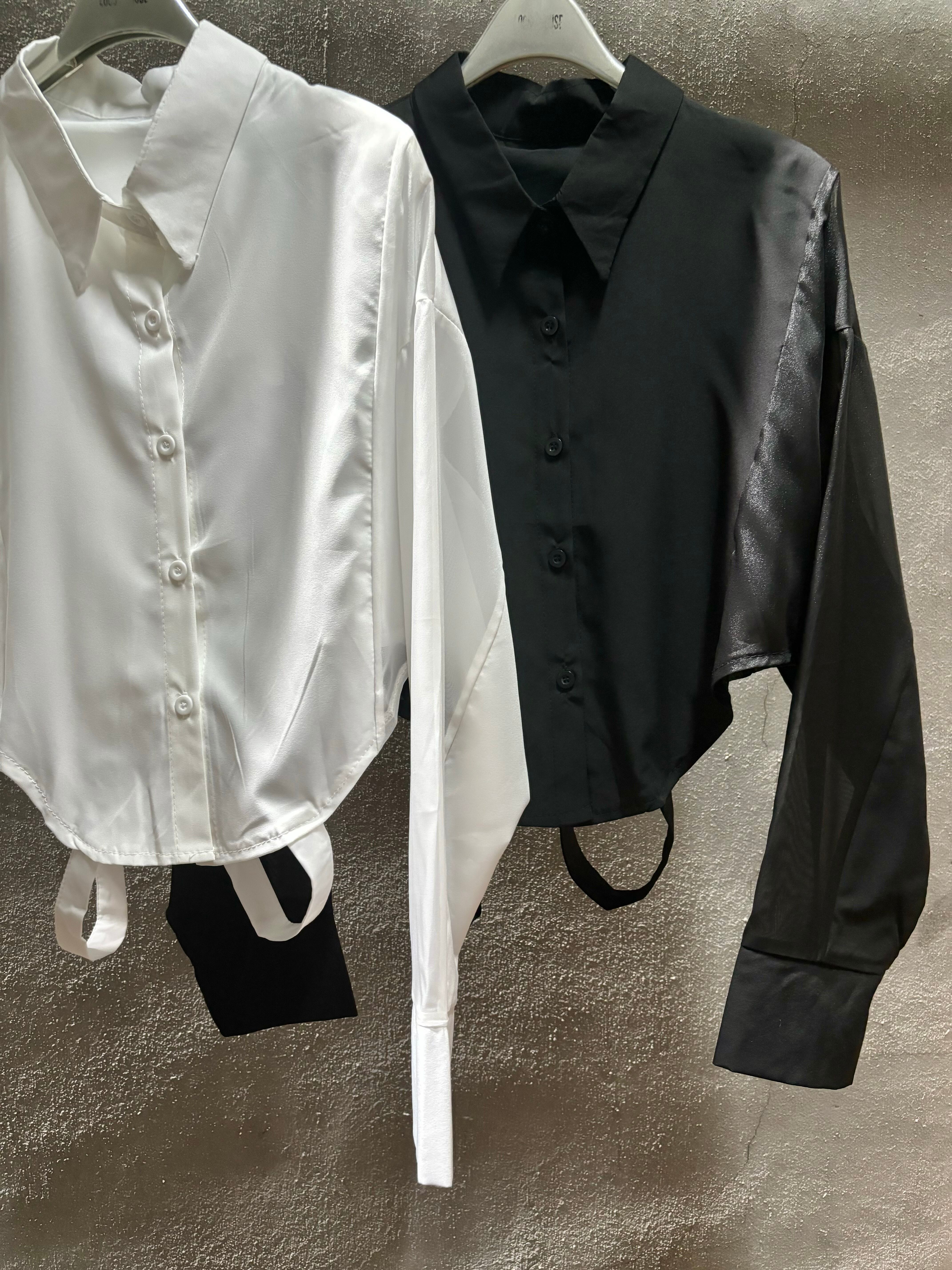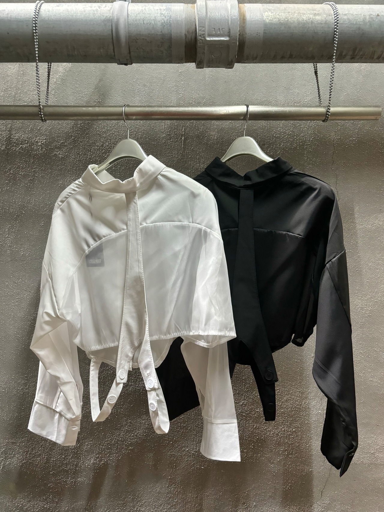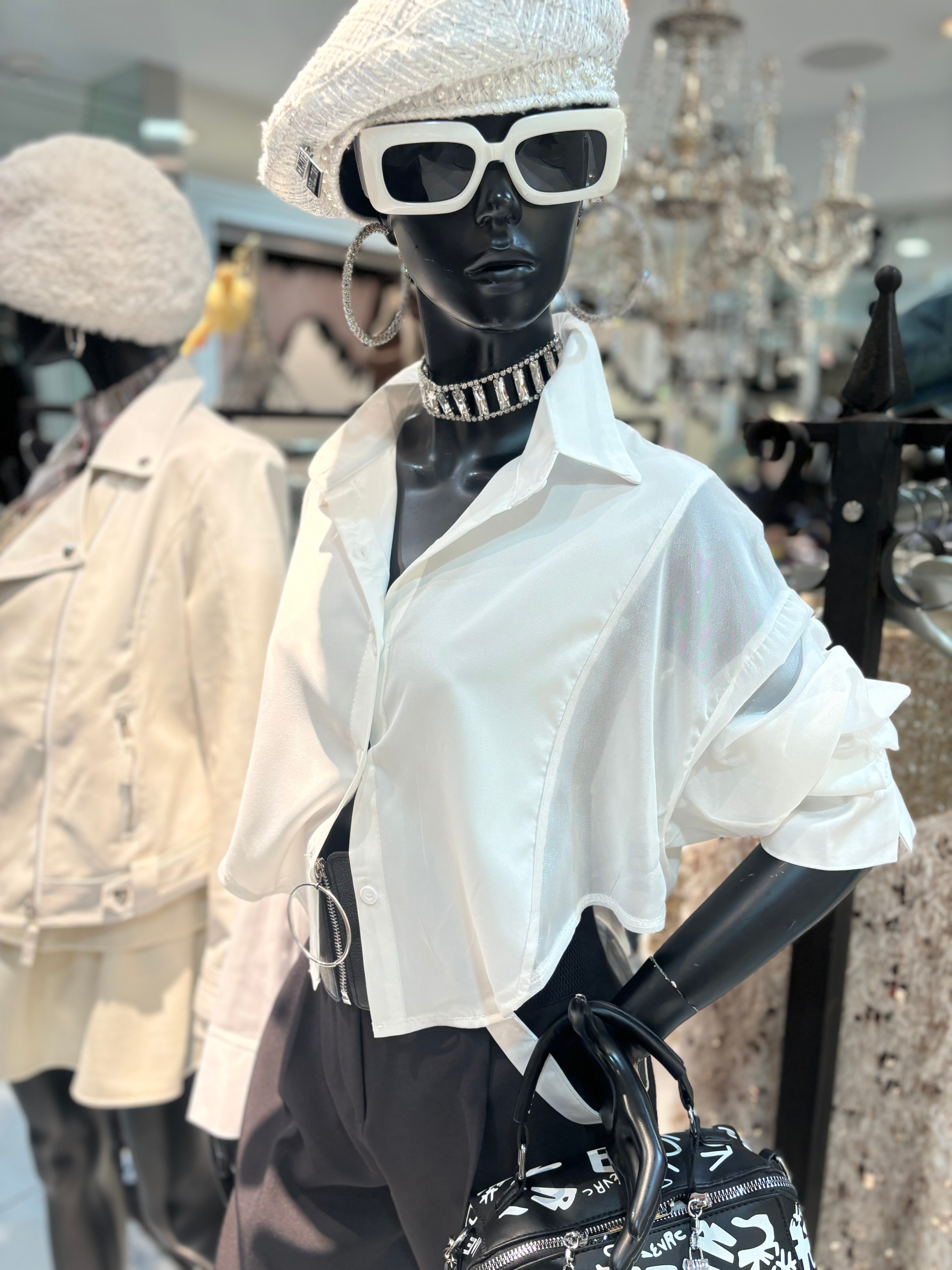 透け感のあるシアー素材が魅力のショート丈デザインシャツ☆