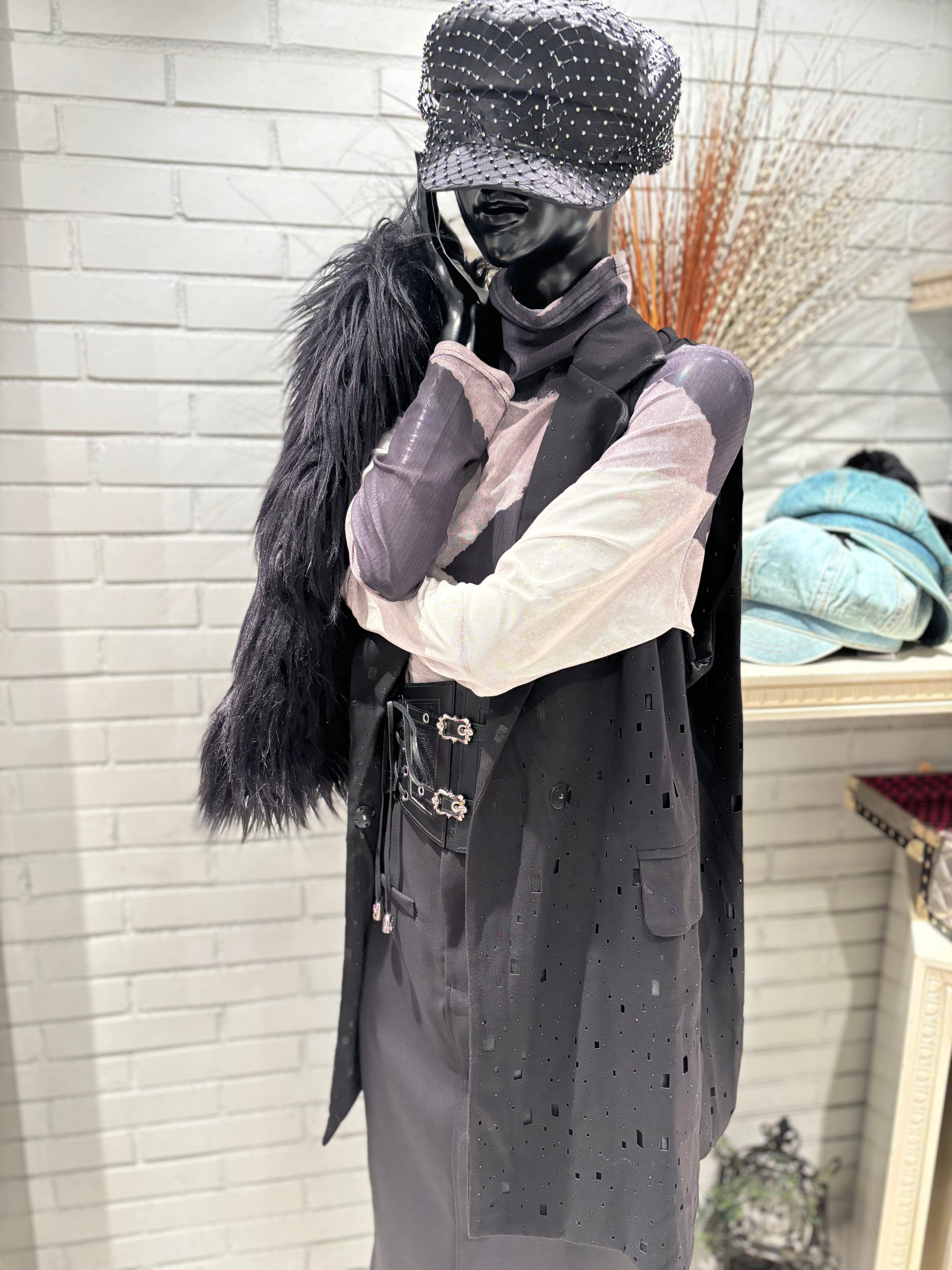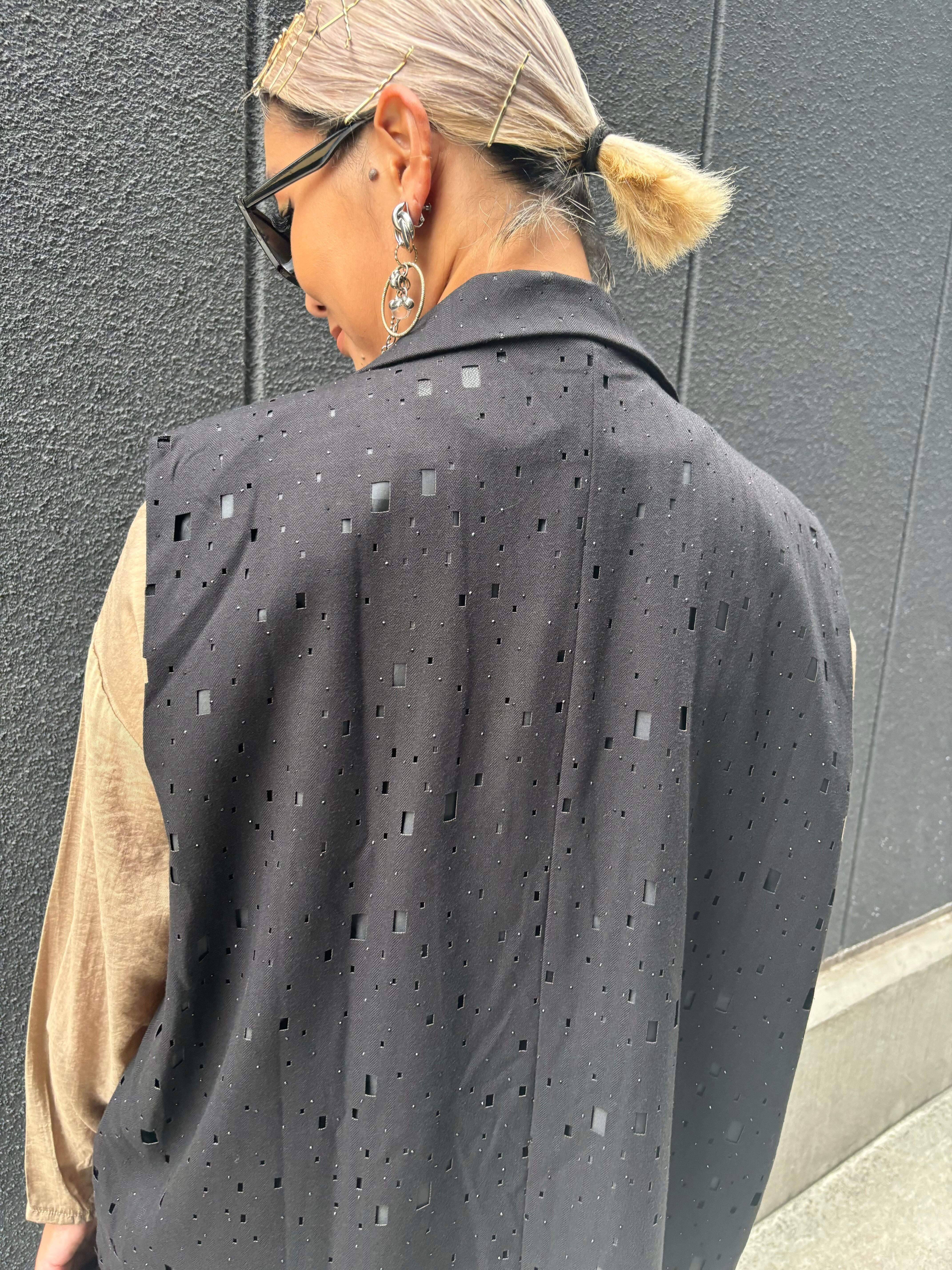 独自のスクエア型パンチングデザインが施されたユニークなロングベスト♪