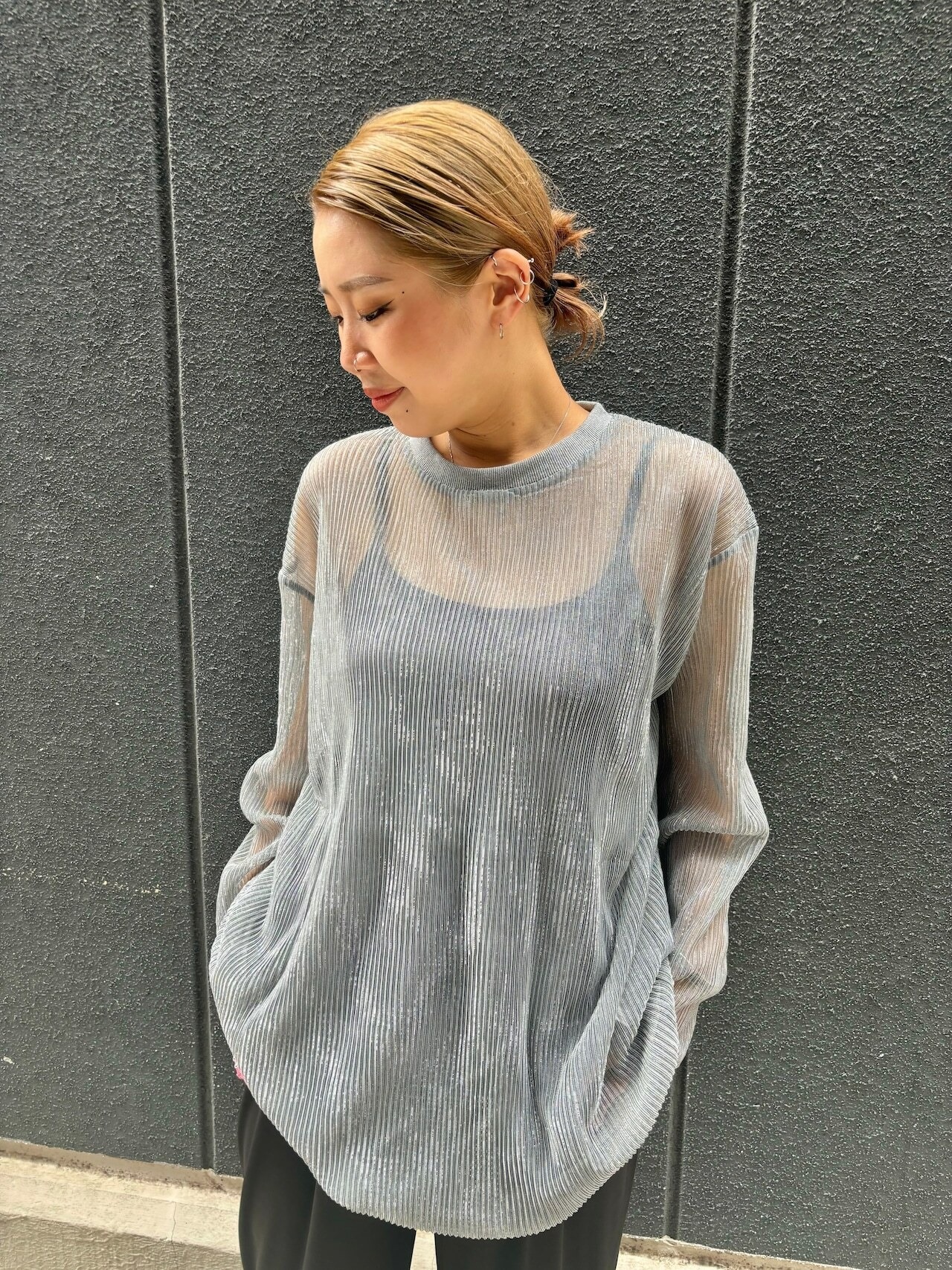 metallic lame mix sheer tops トップス シースルー シアー ラメ メタリック 重ね着 レイヤード 着まわし