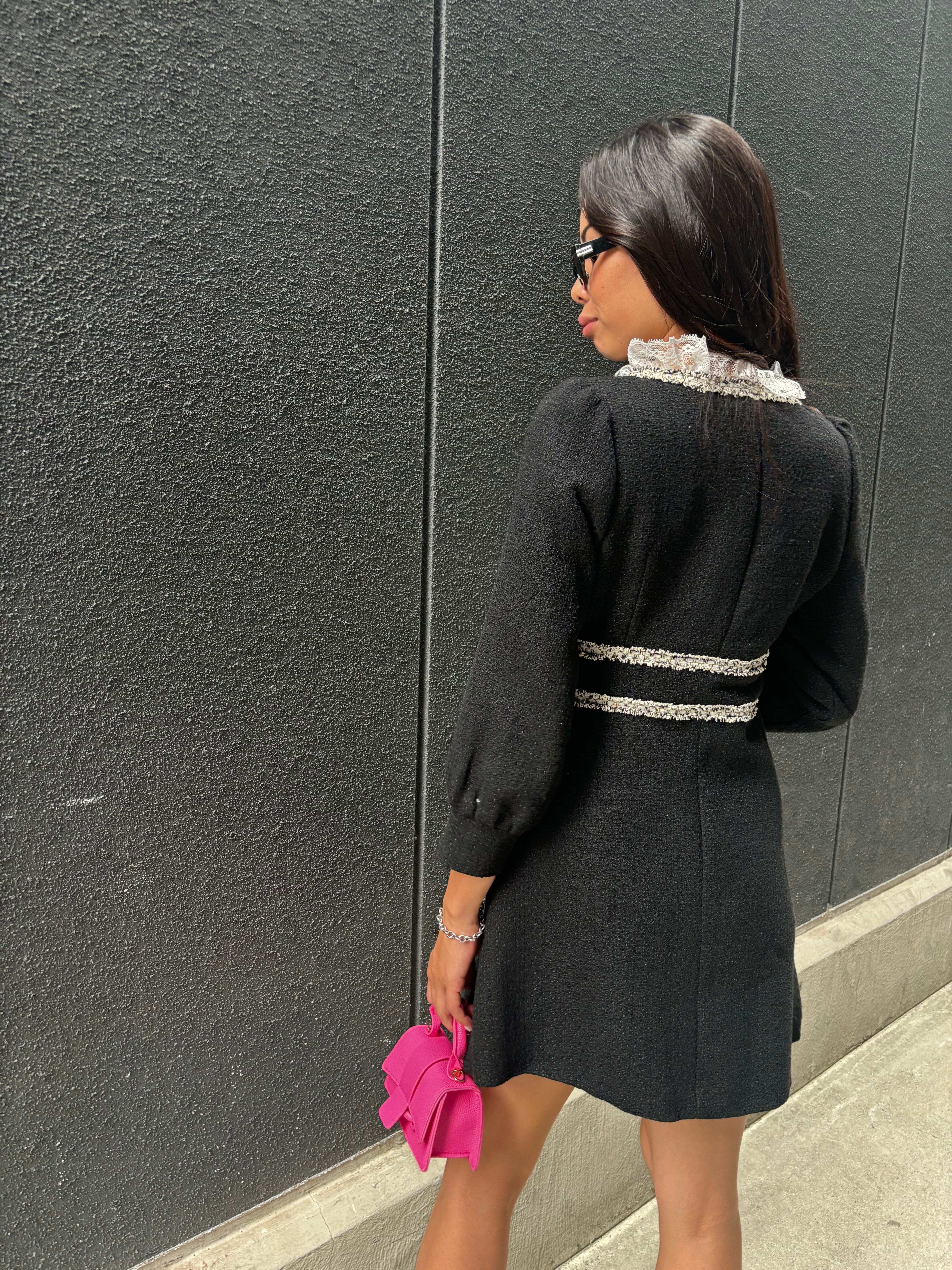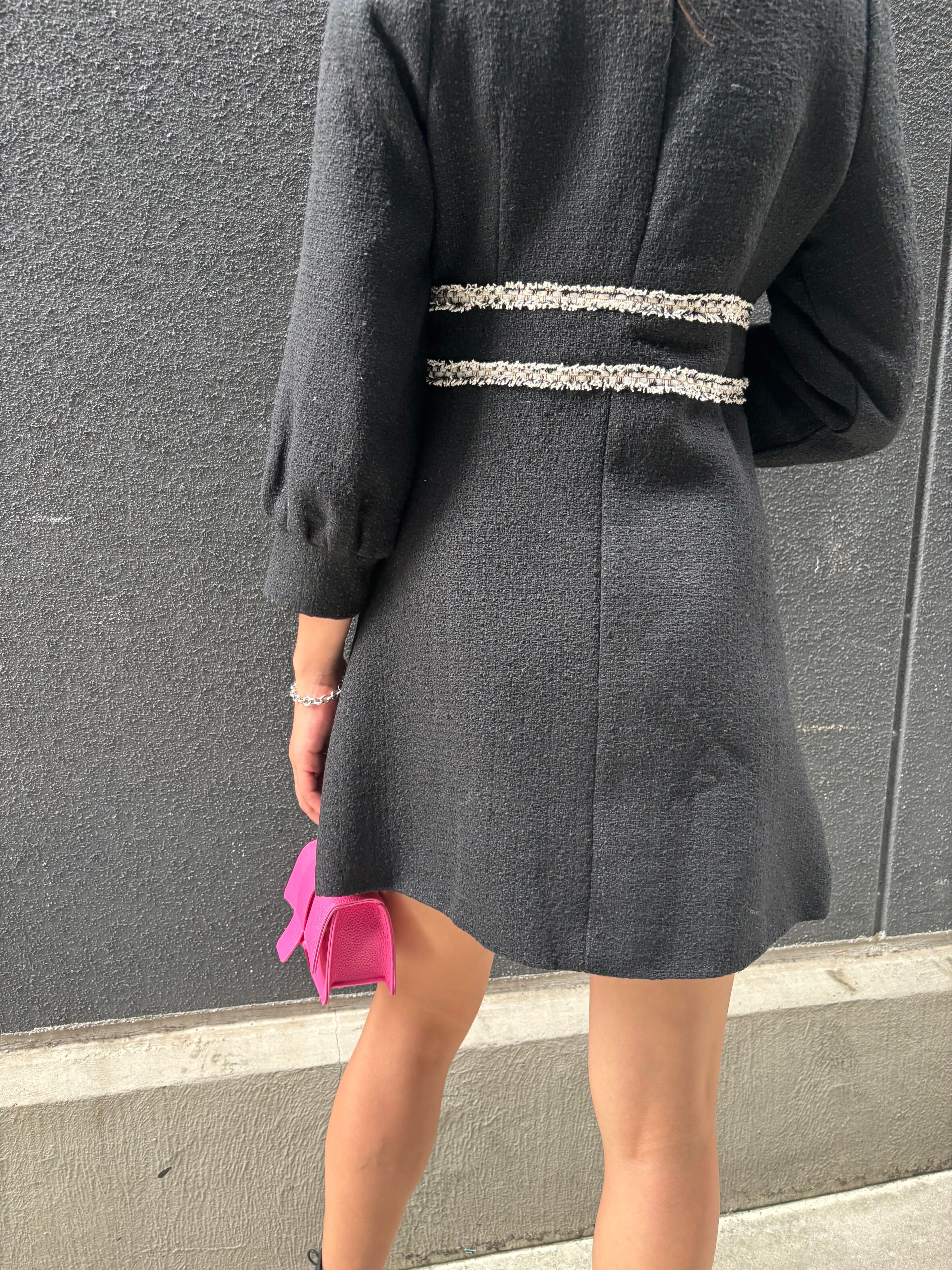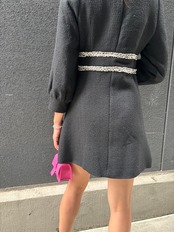 華やかなブラックツィード生地を使用したミニワンピース☆