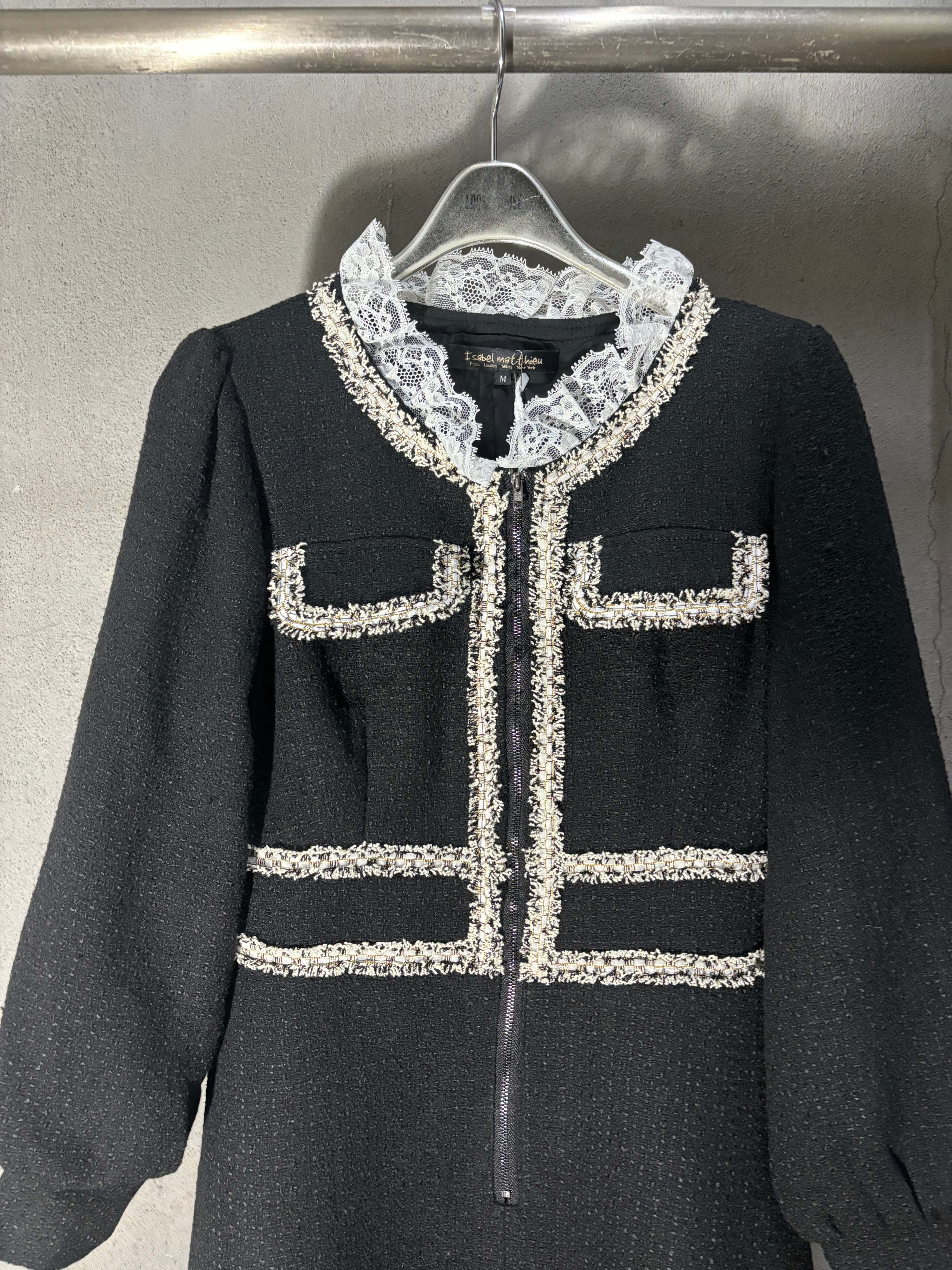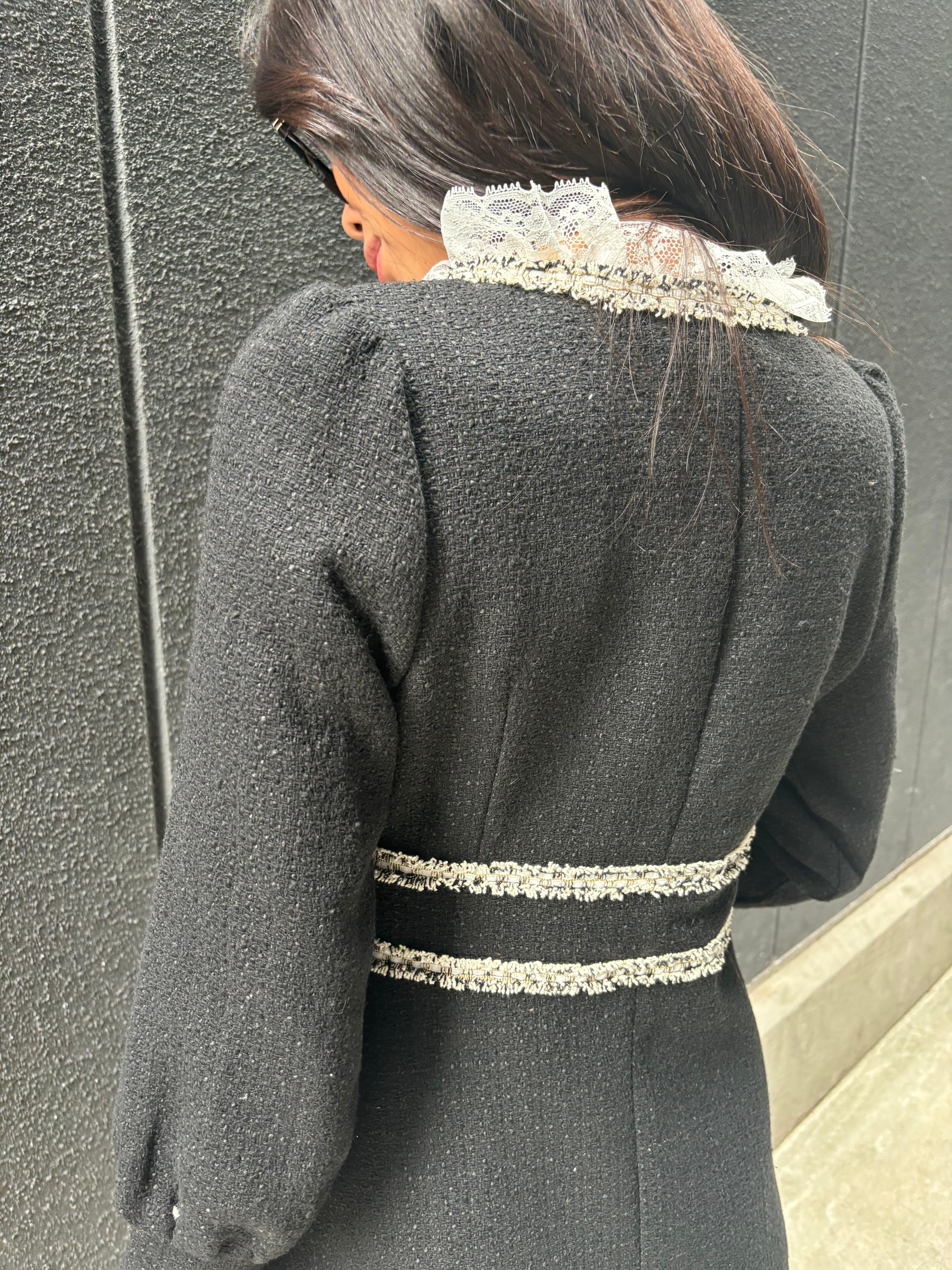 solid tweed braid line zip mini one-piece ワンピース ワンピ ツィード ブラック 黒 ドレス 結婚式 二次会