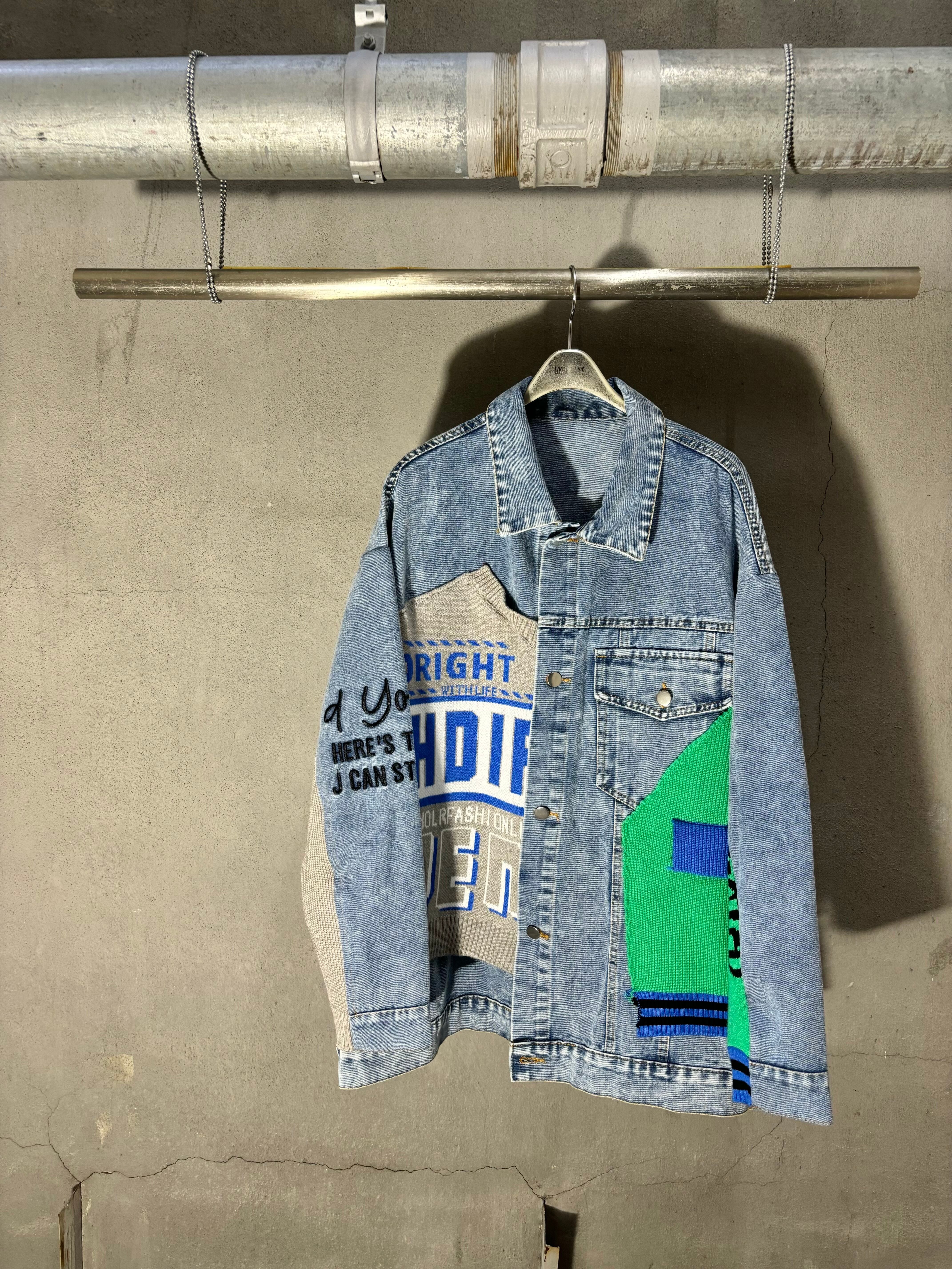 denim × knit patch design over size jacket デニム ジャケット ニット 切替デザイン オーバーサイズ カジュアル
