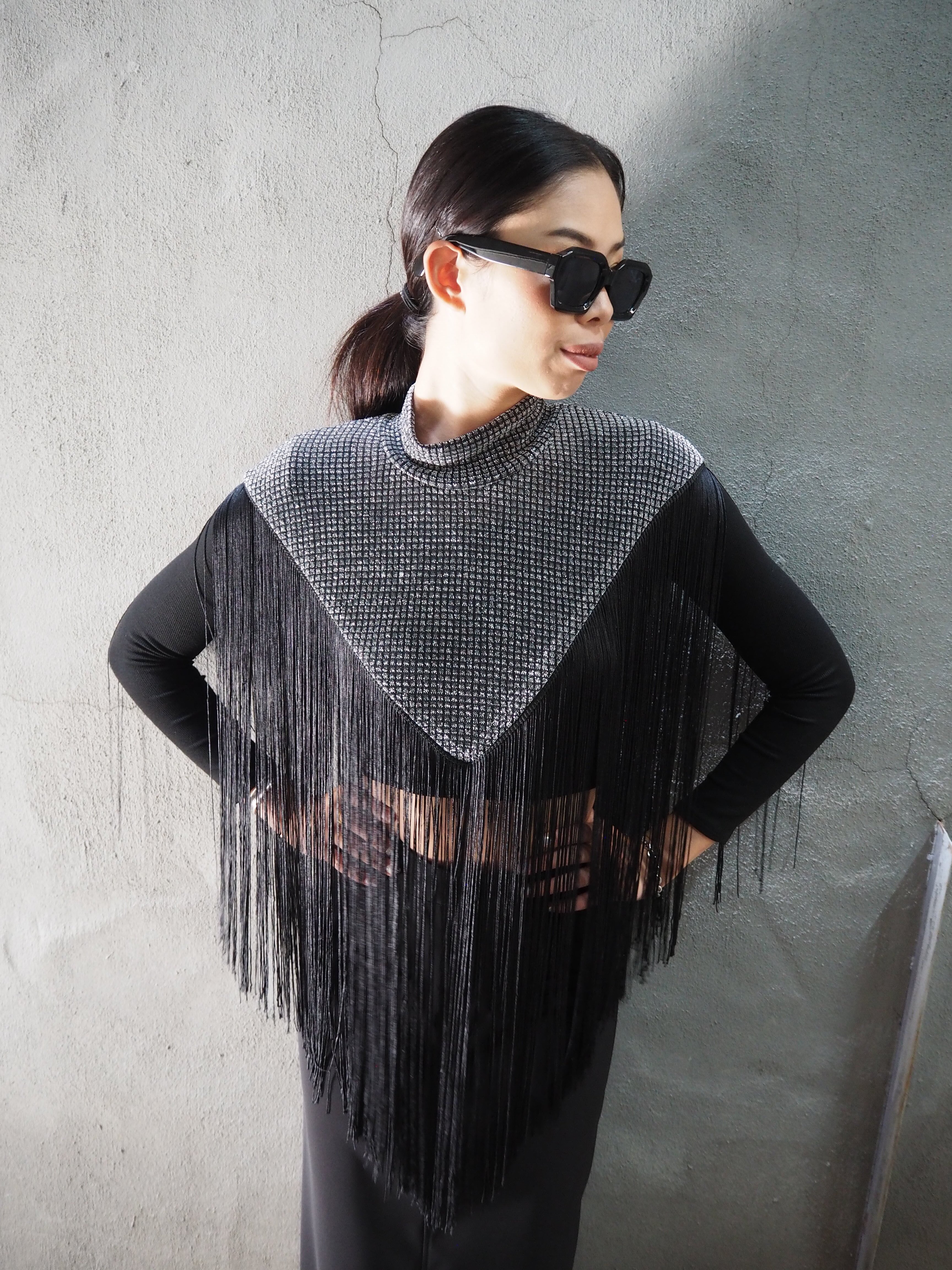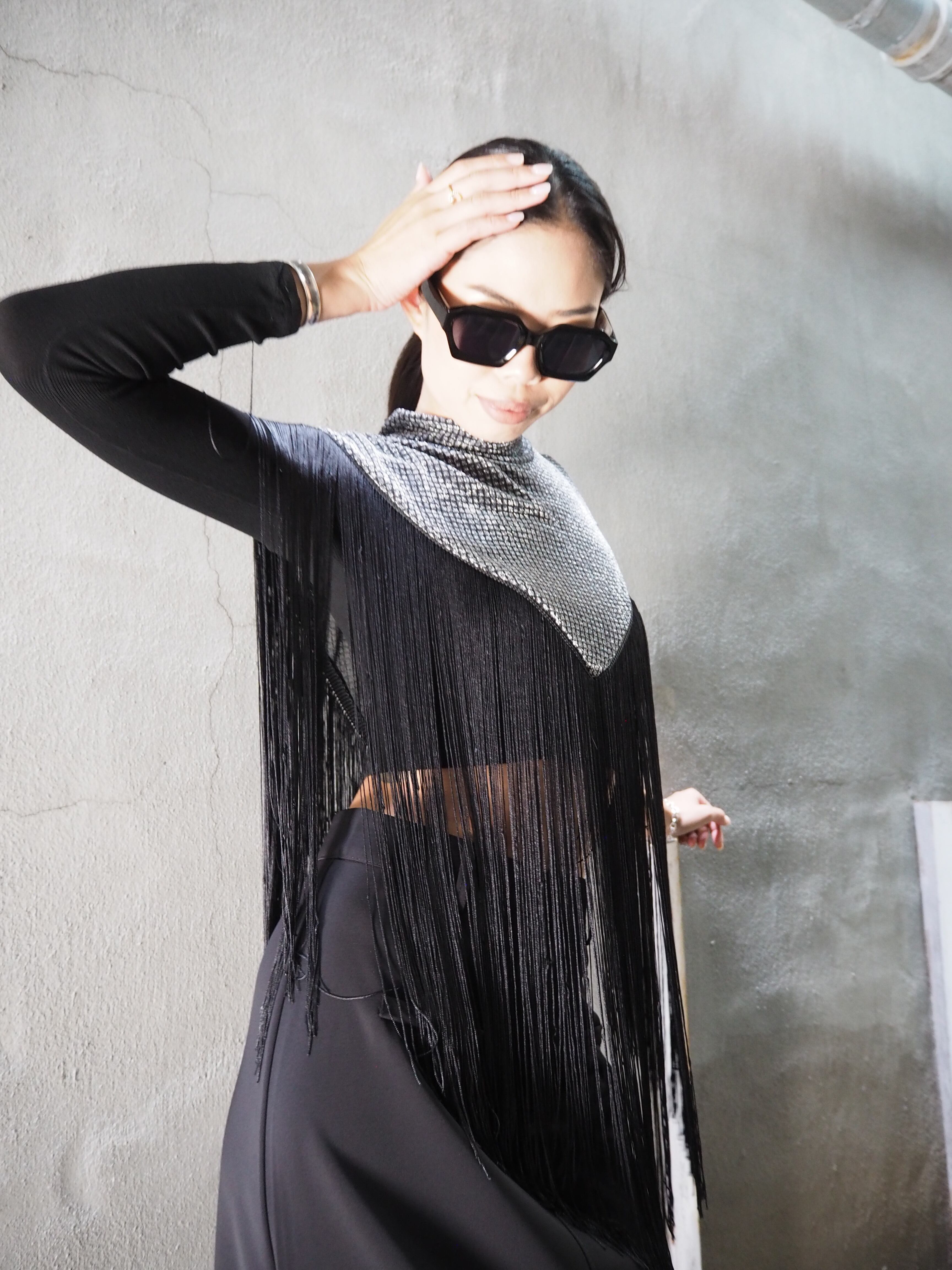 long fringe high neck tops トップス フリンジ キラキラ 重ね着