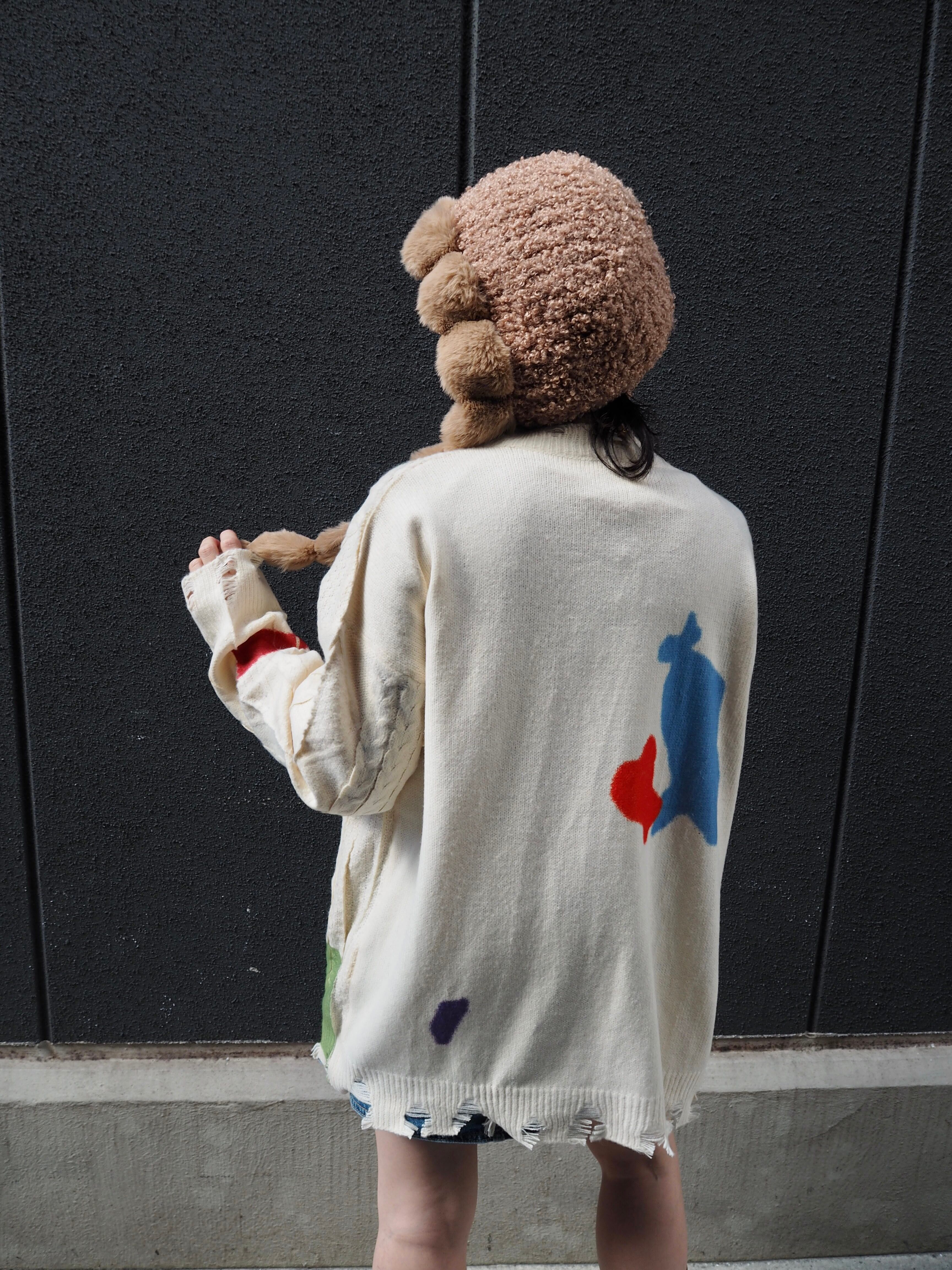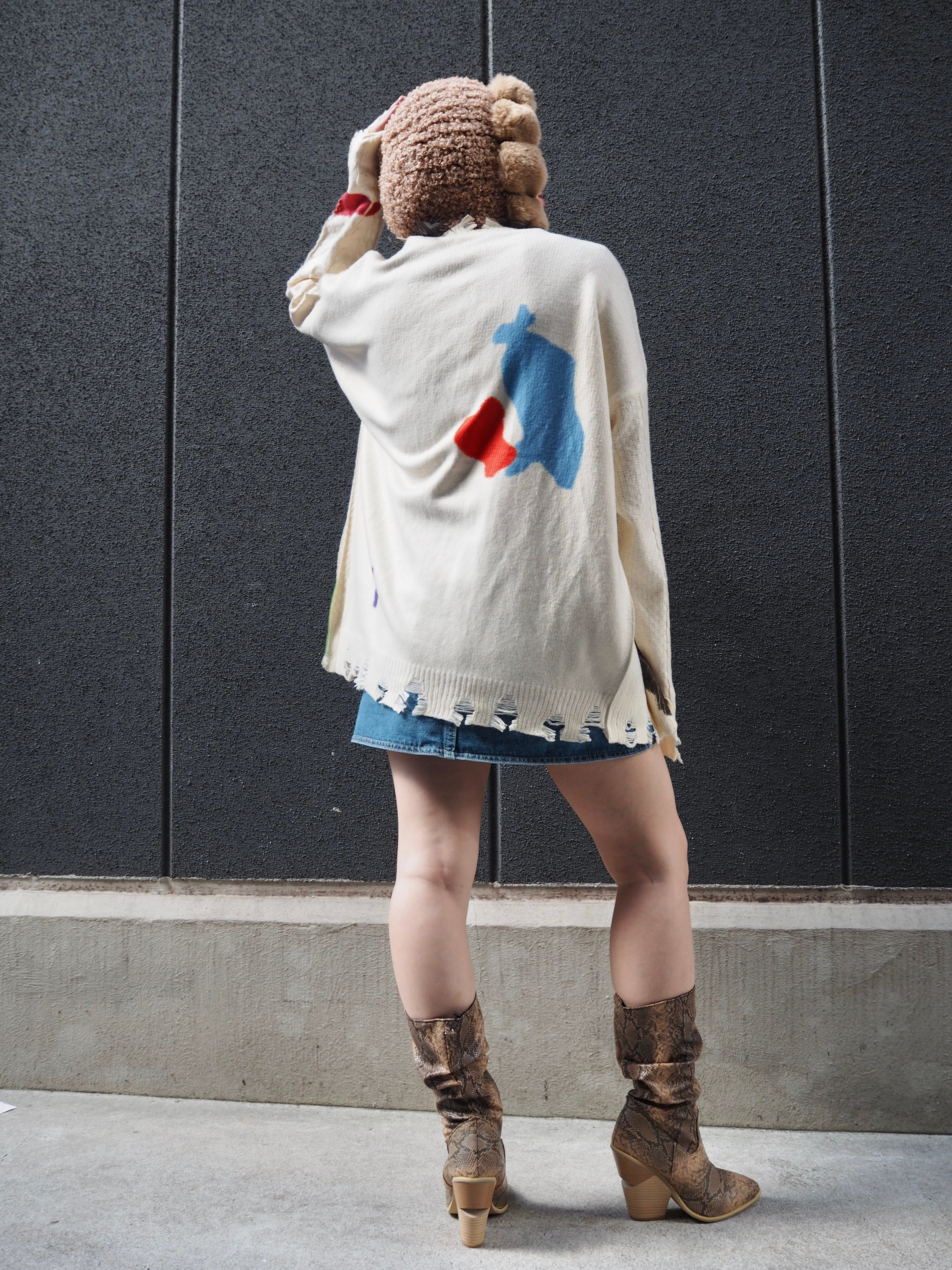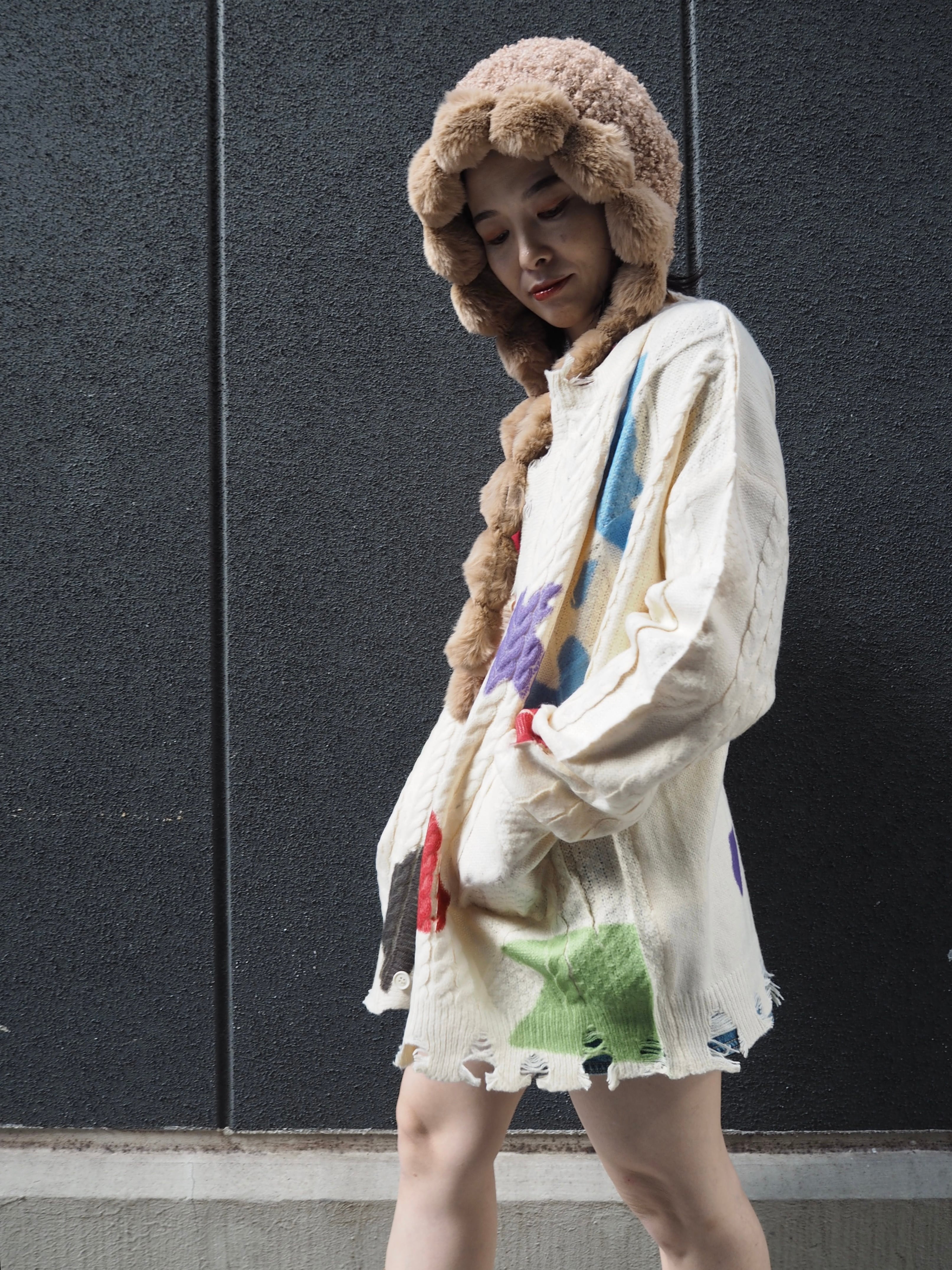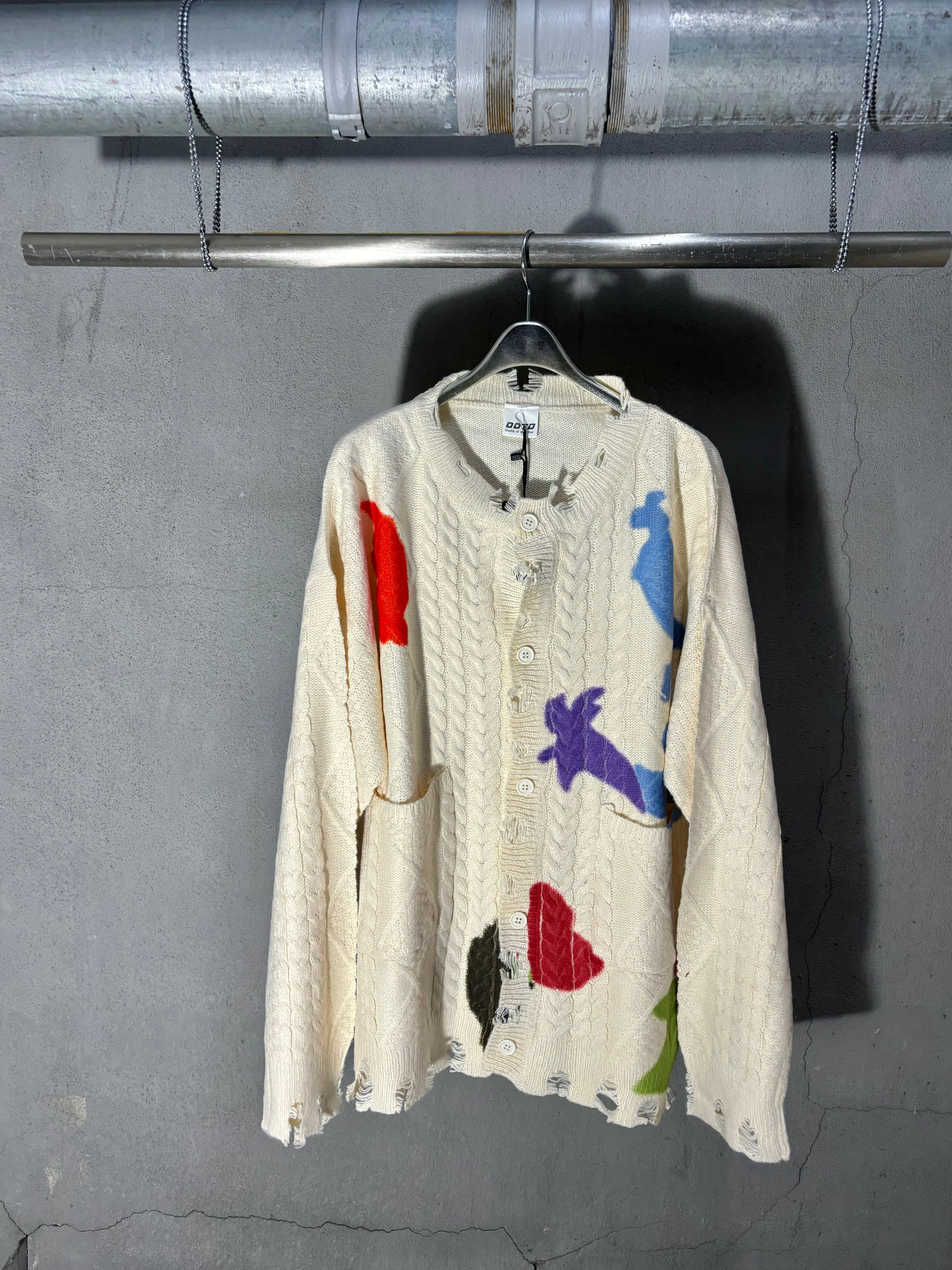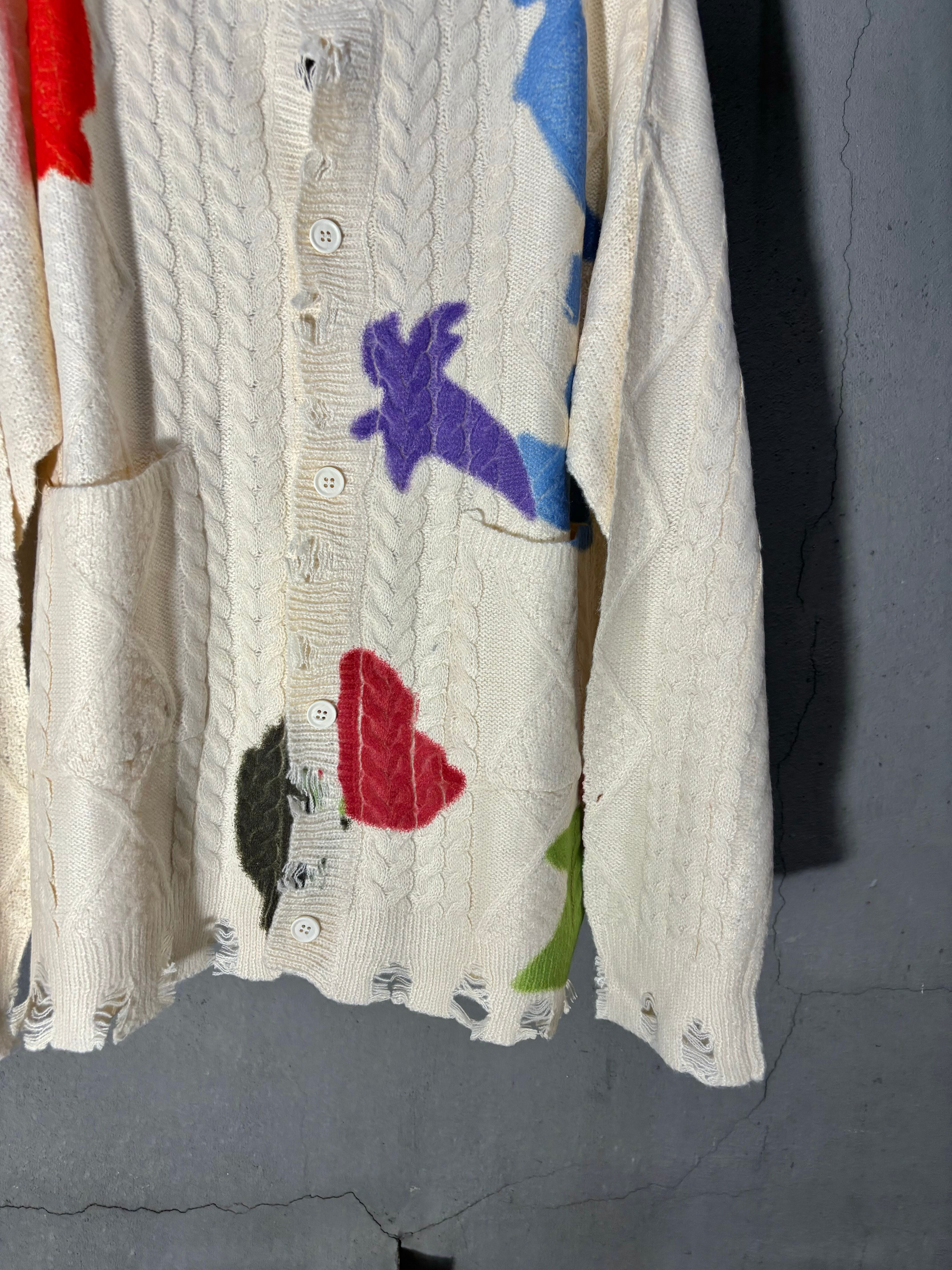 damage × color cable mix knit cardigan ニット カーディガン ダメージ カラフル 配色 羽織り