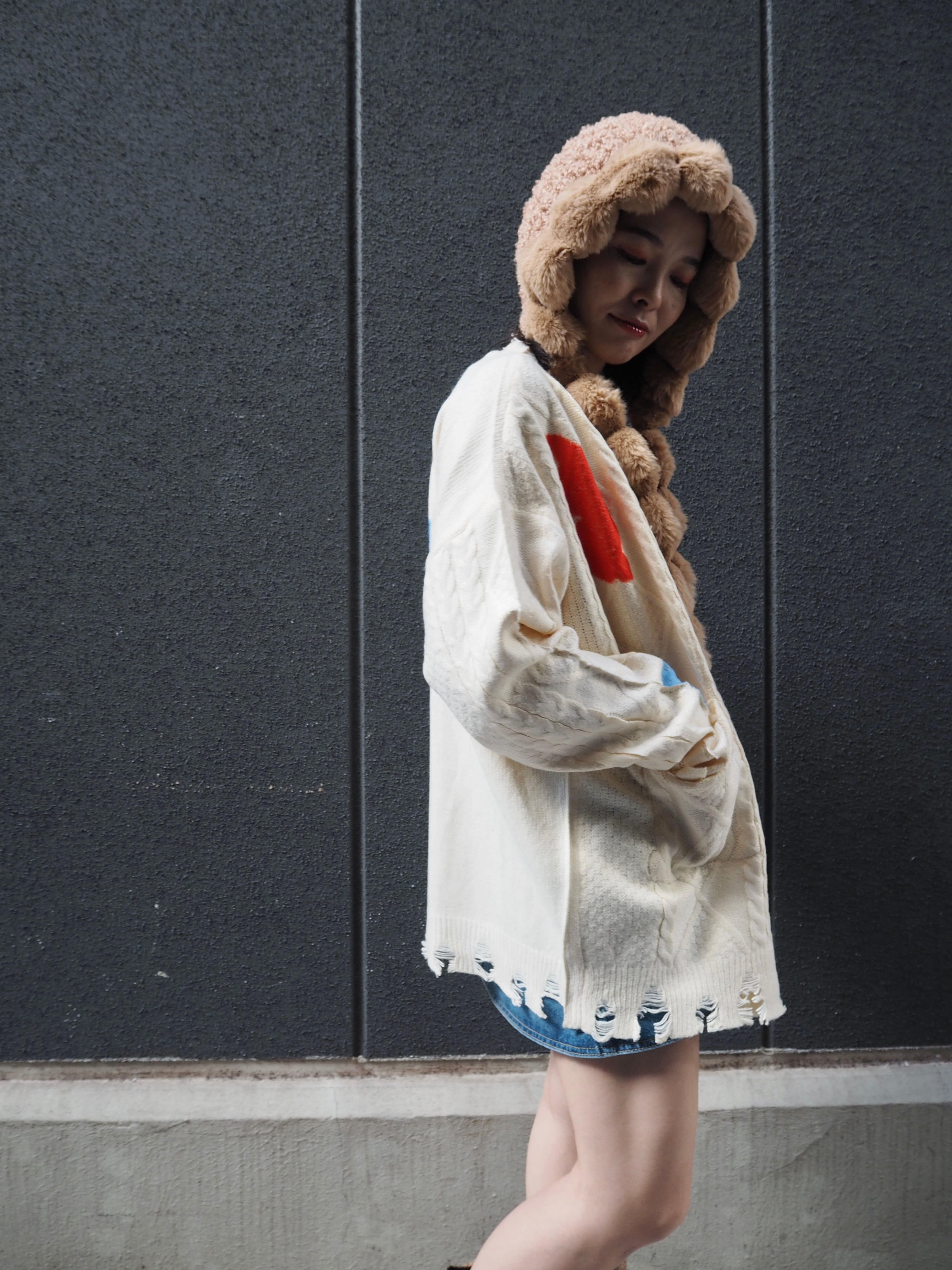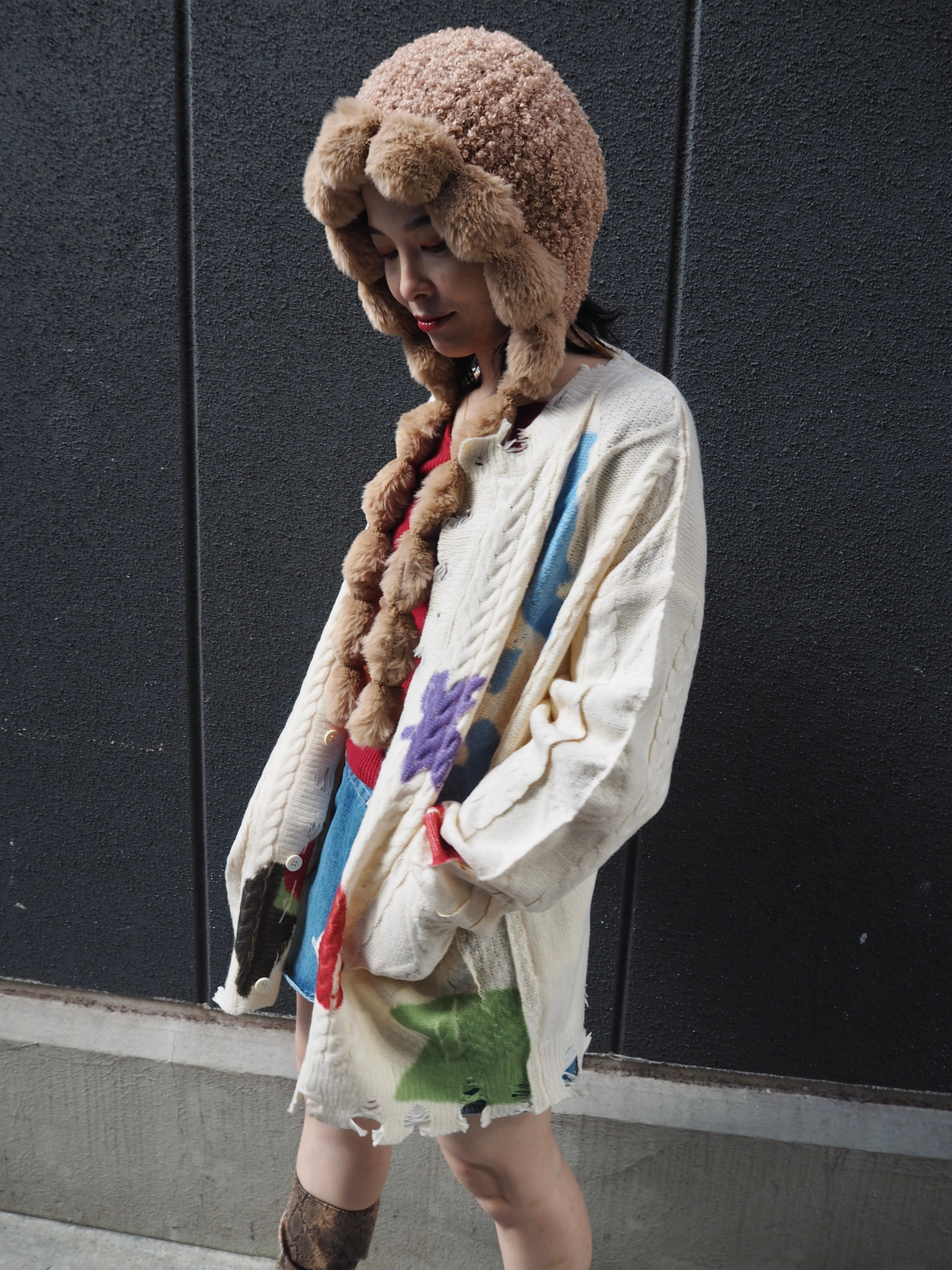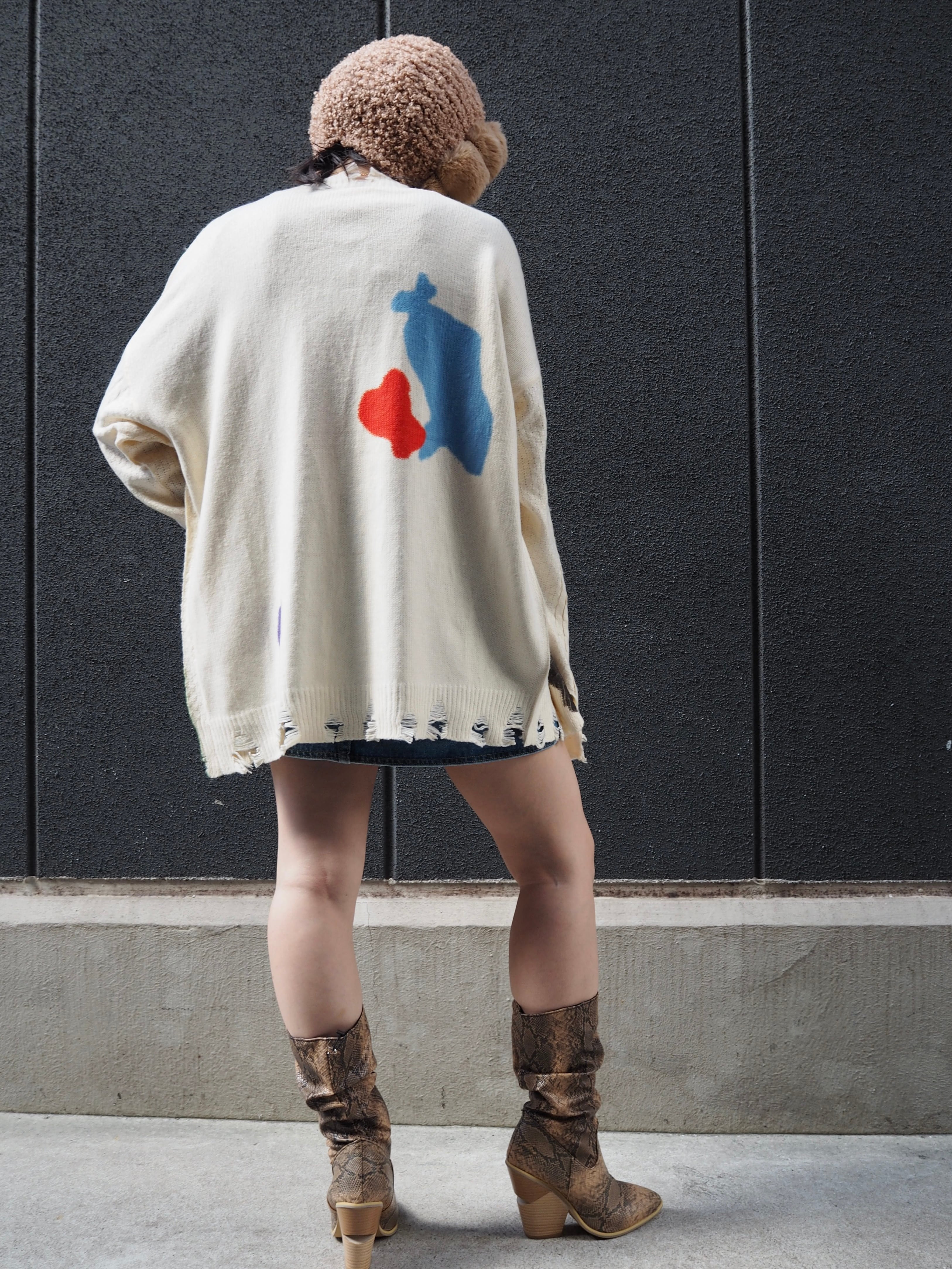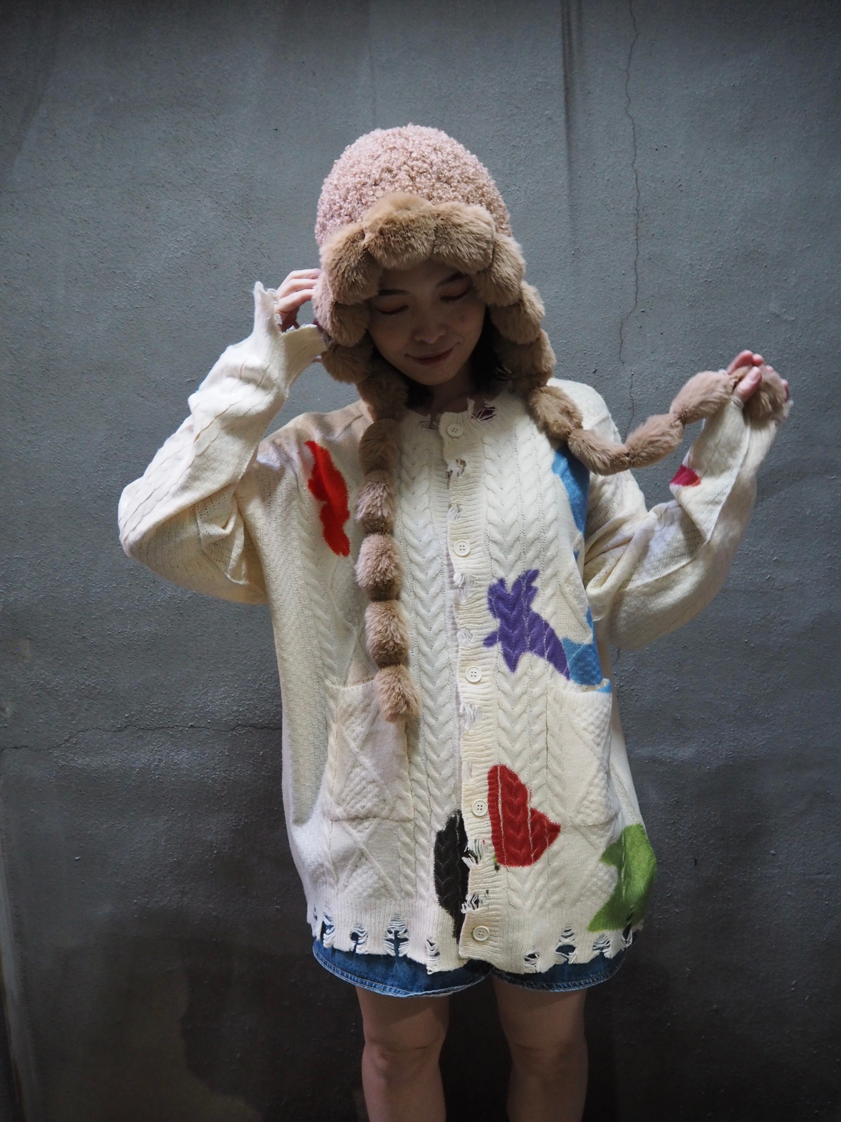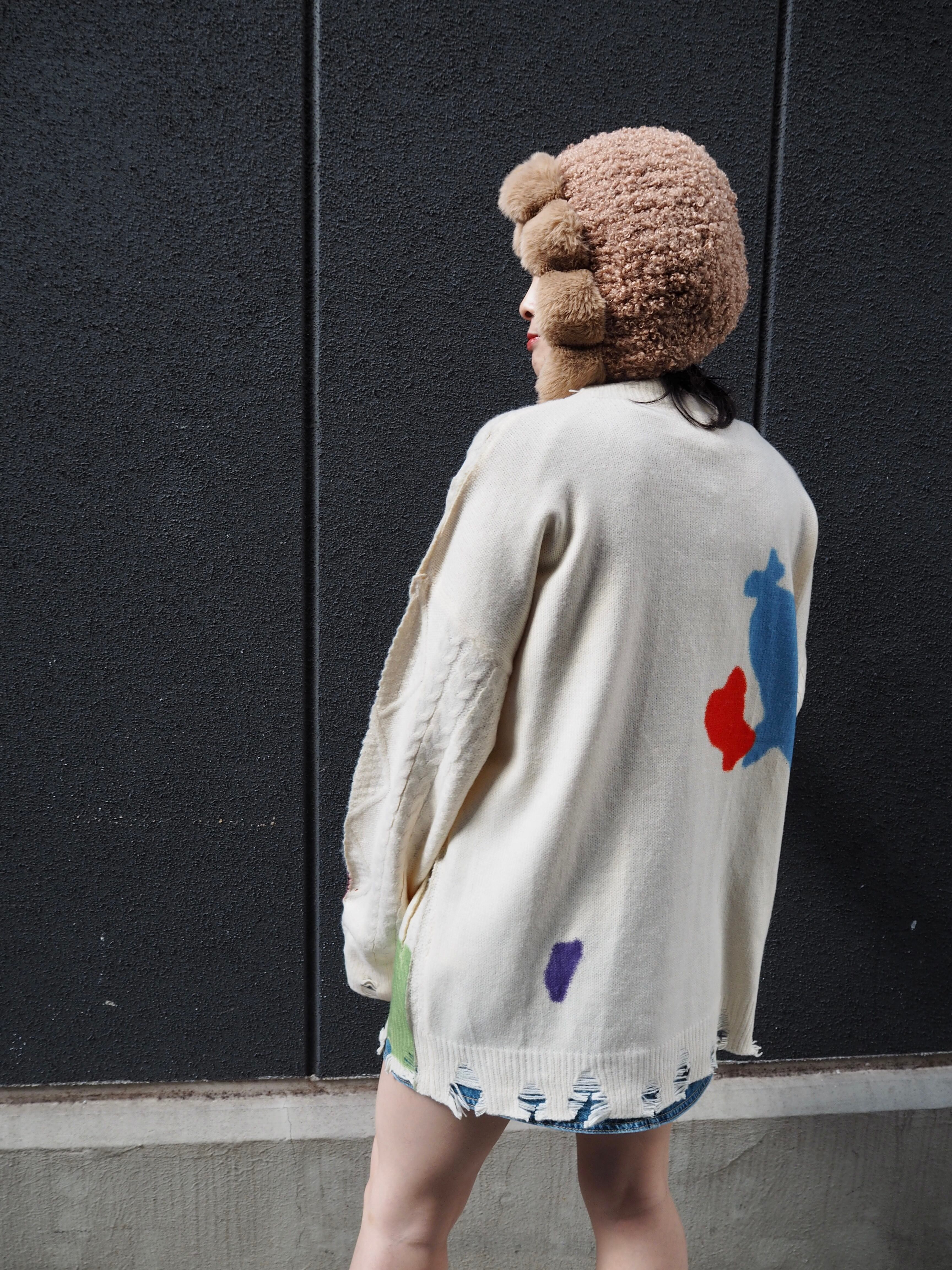 damage × color cable mix knit cardigan ニット カーディガン ダメージ カラフル 配色 羽織り