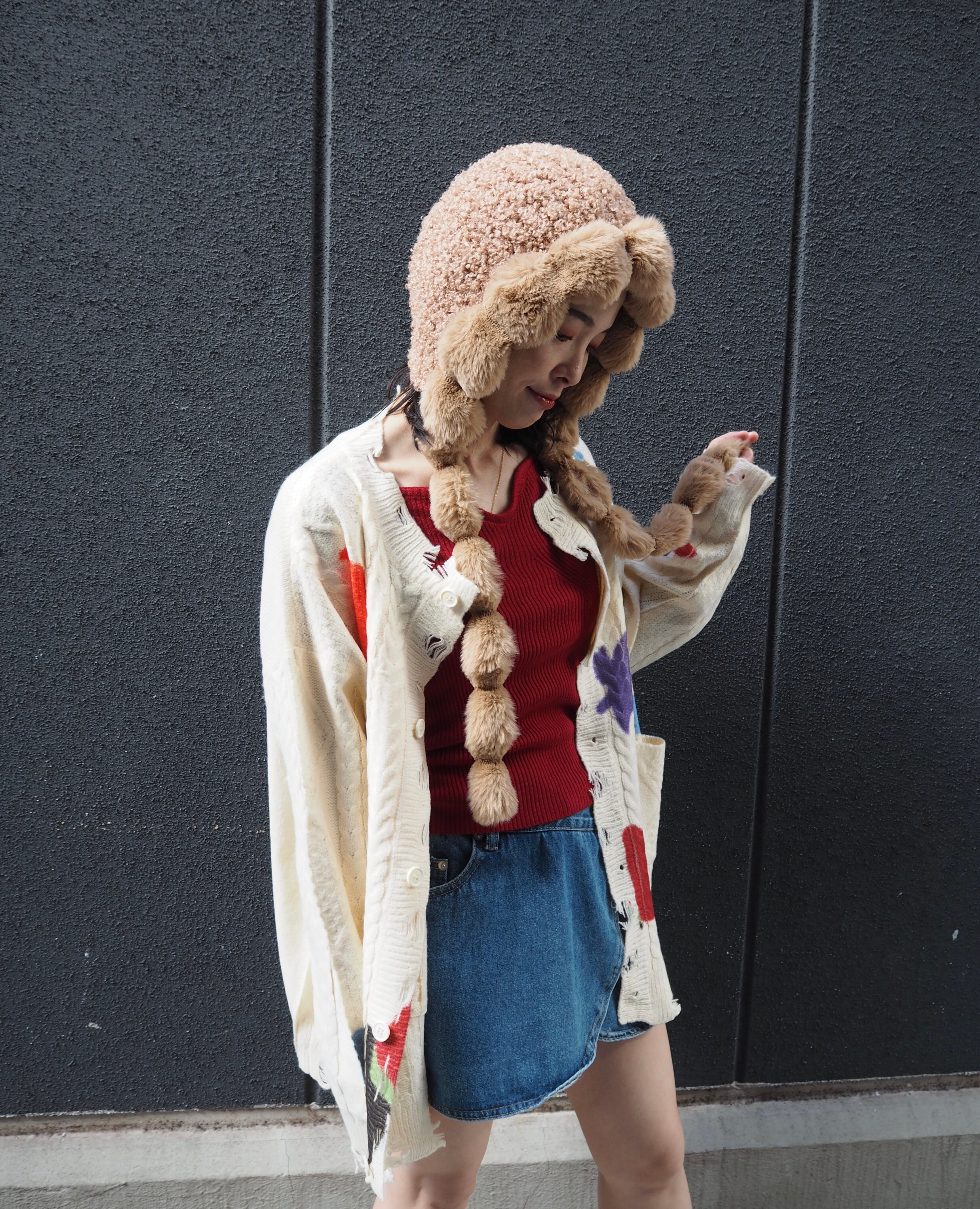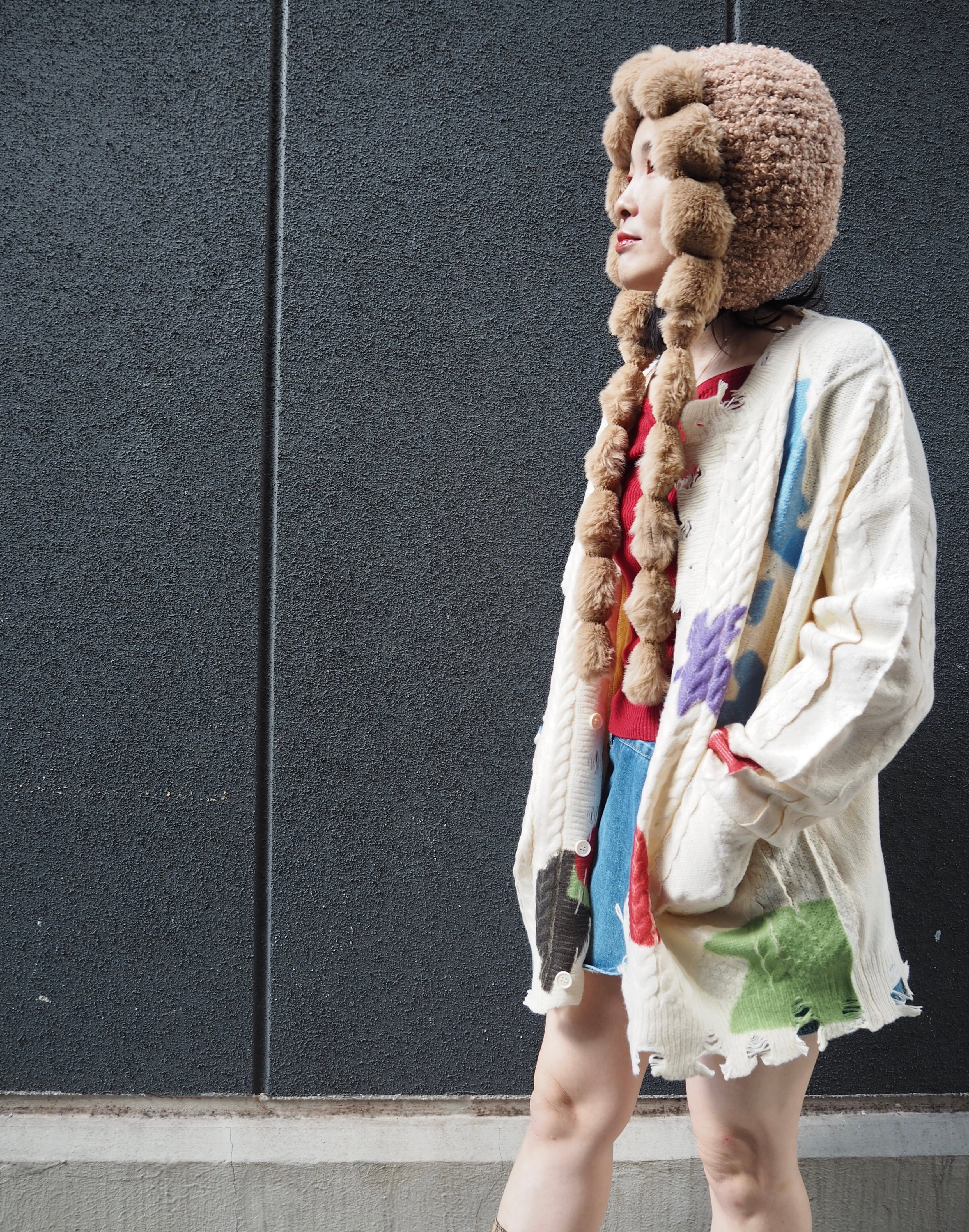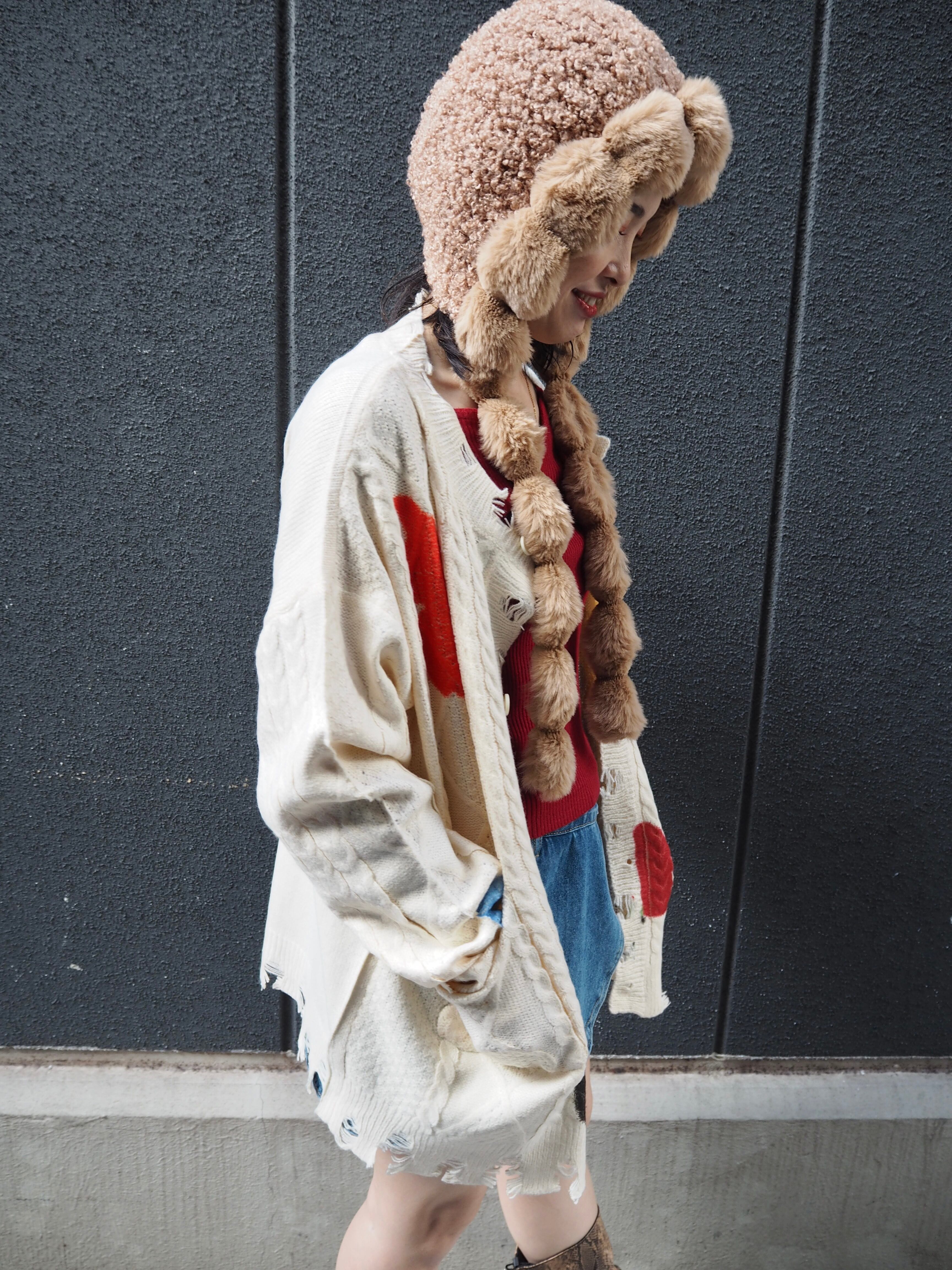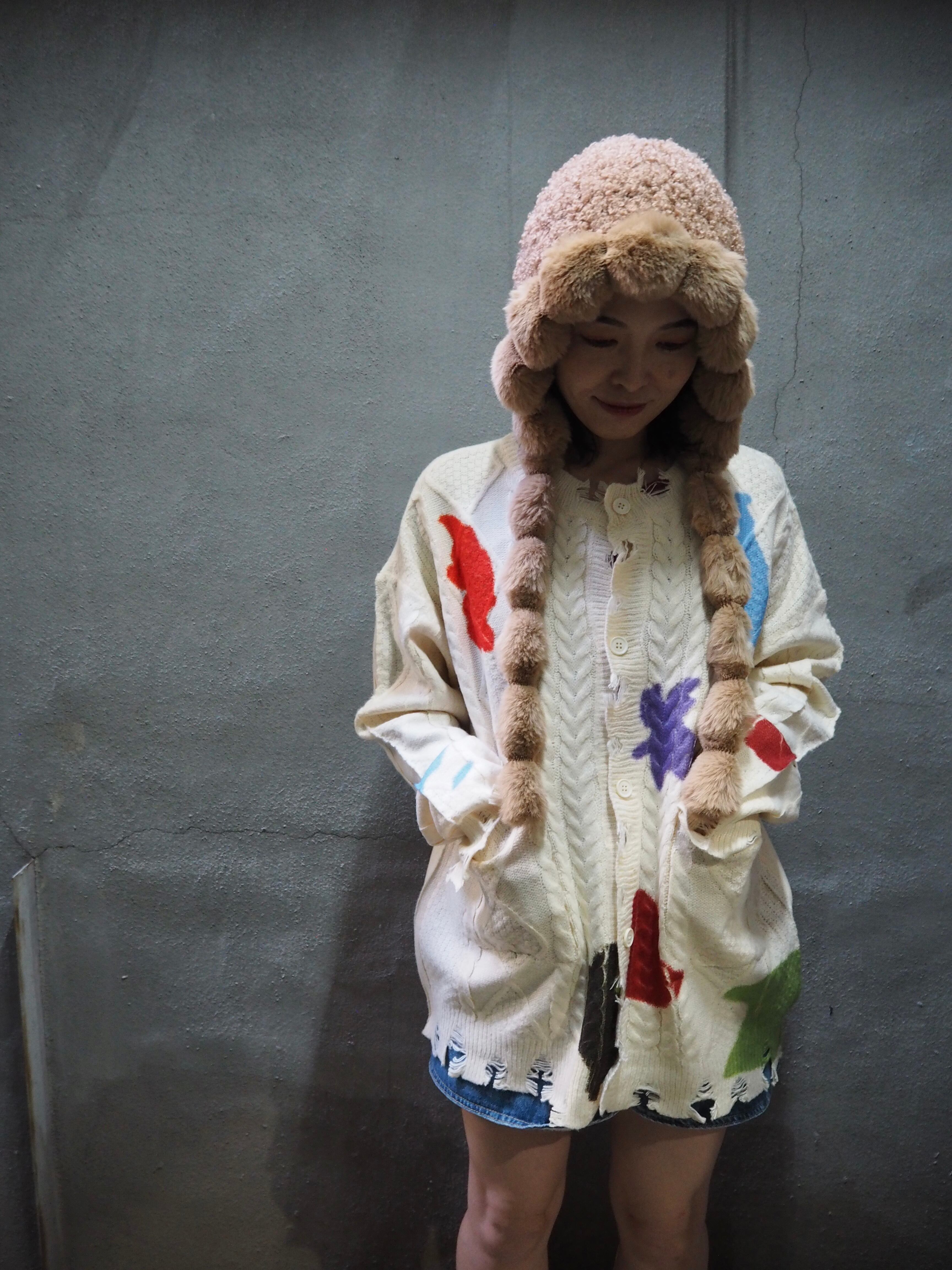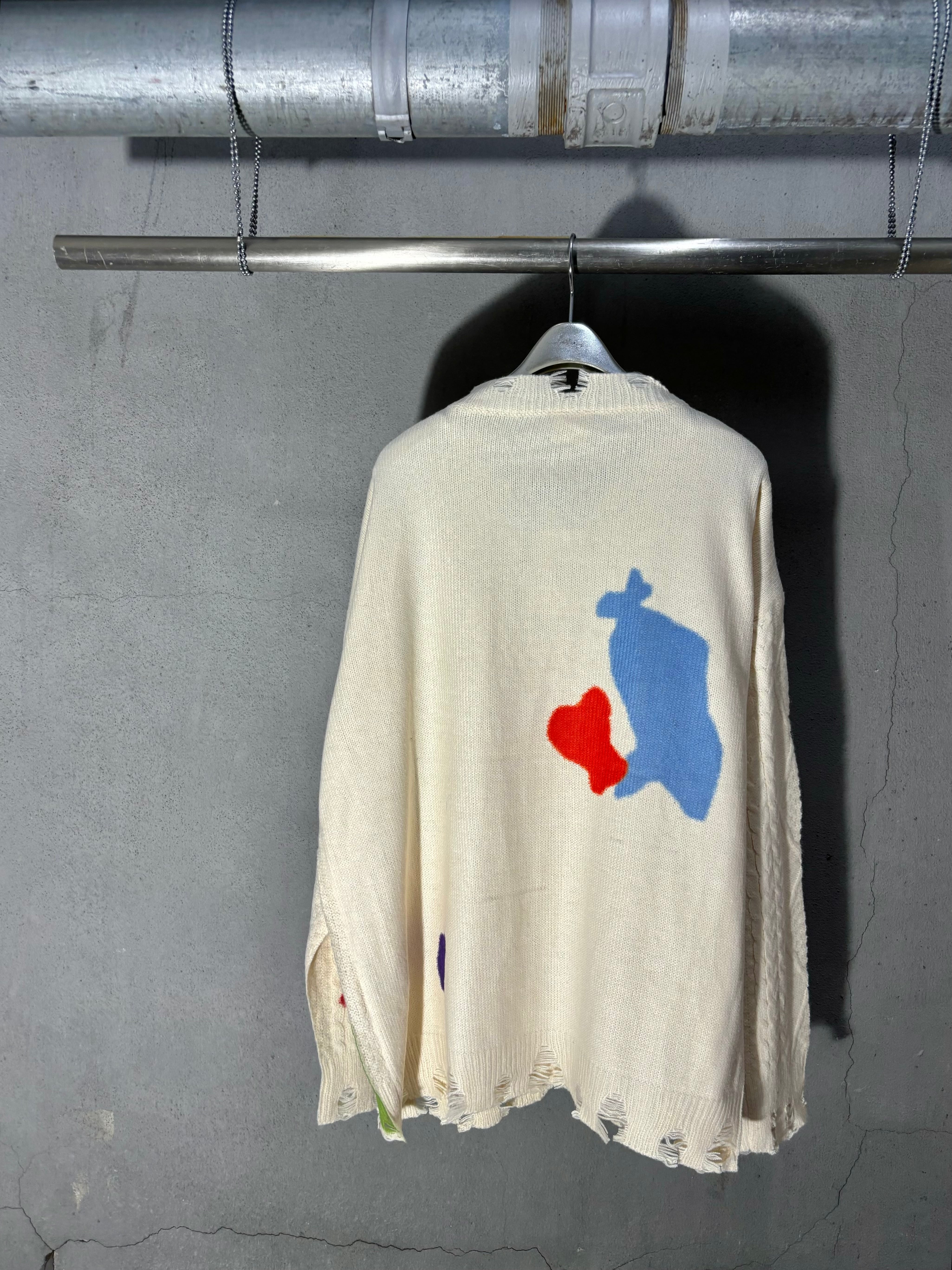 damage × color cable mix knit cardigan ニット カーディガン ダメージ カラフル 配色 羽織り