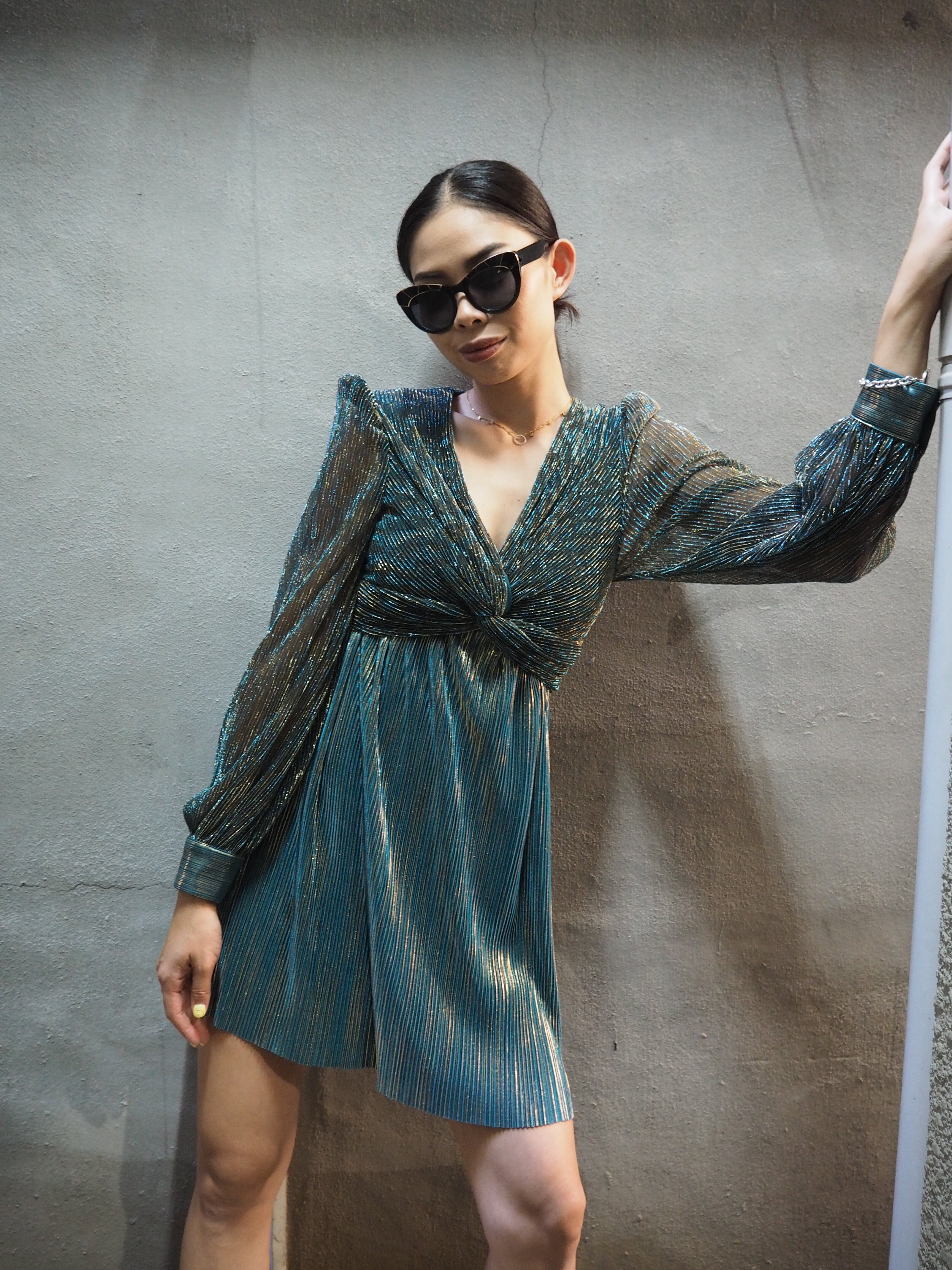 glitter shining pleats mini one-piece dress ワンピース ワンピ ドレス グリッター キラキラ プリーツ 結婚式 二次会