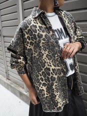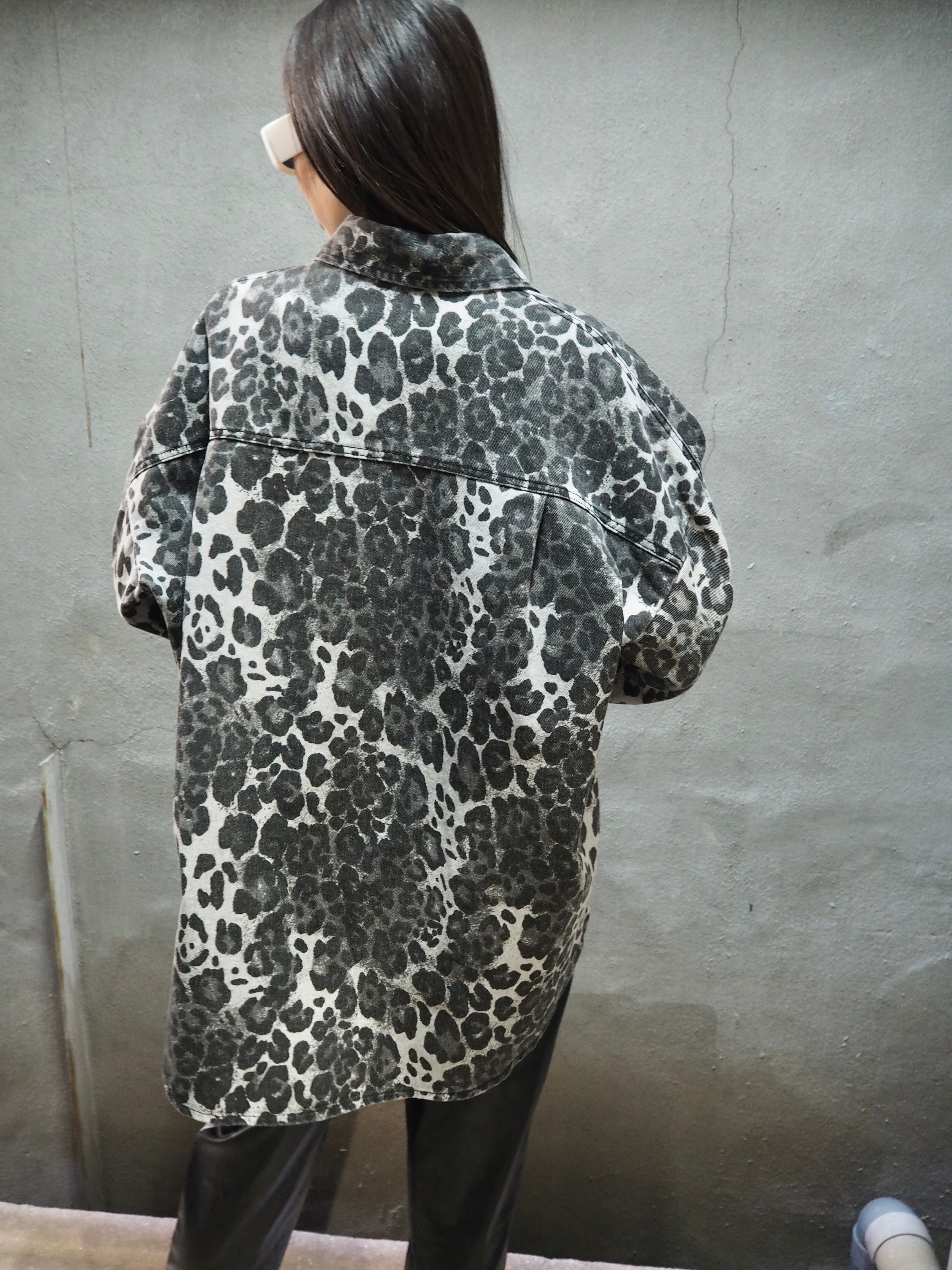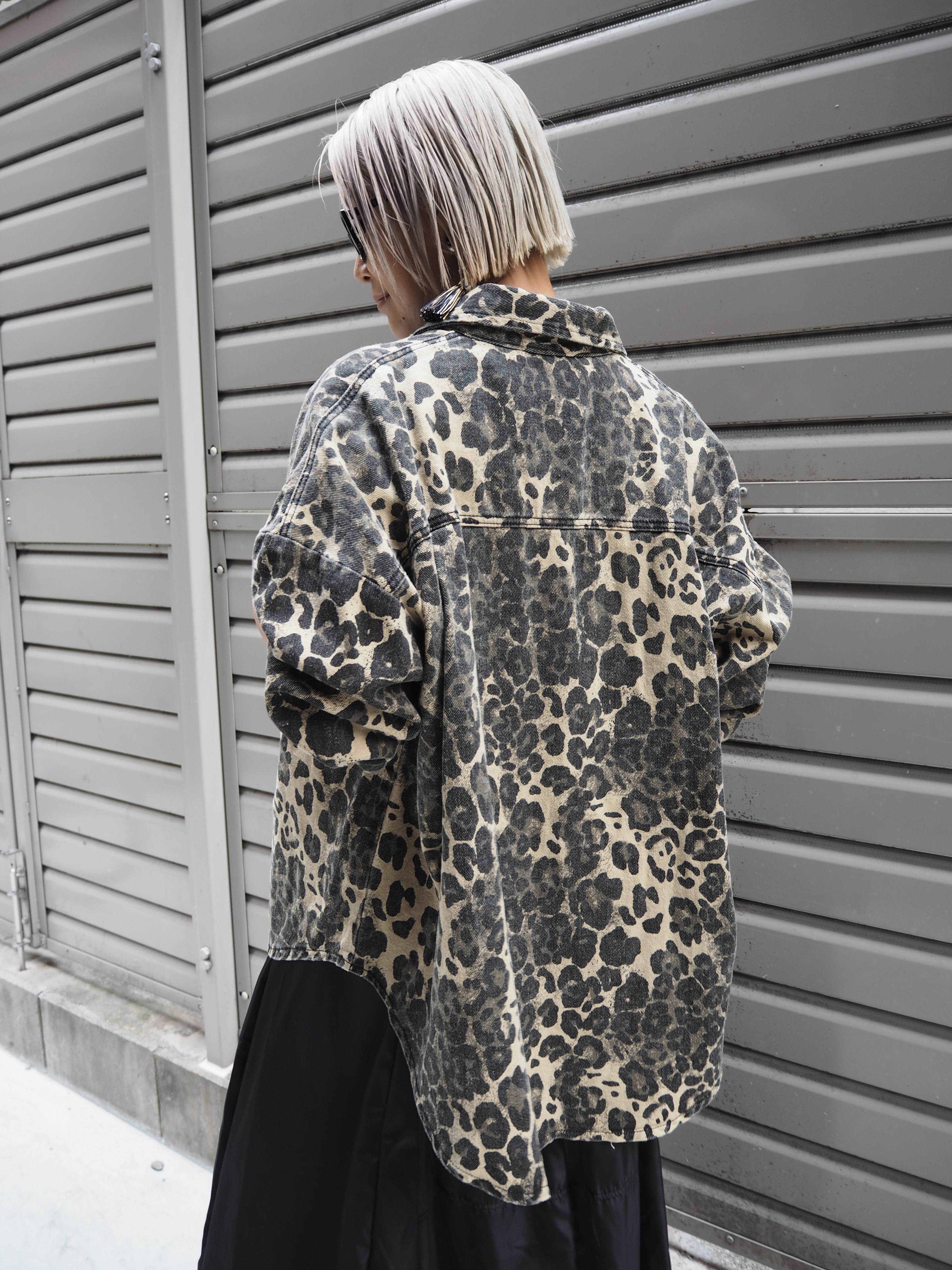leopard denim over size shirt jacket デニム ジャケット シャツ レオパード 豹柄 ひょう オーバーサイズ