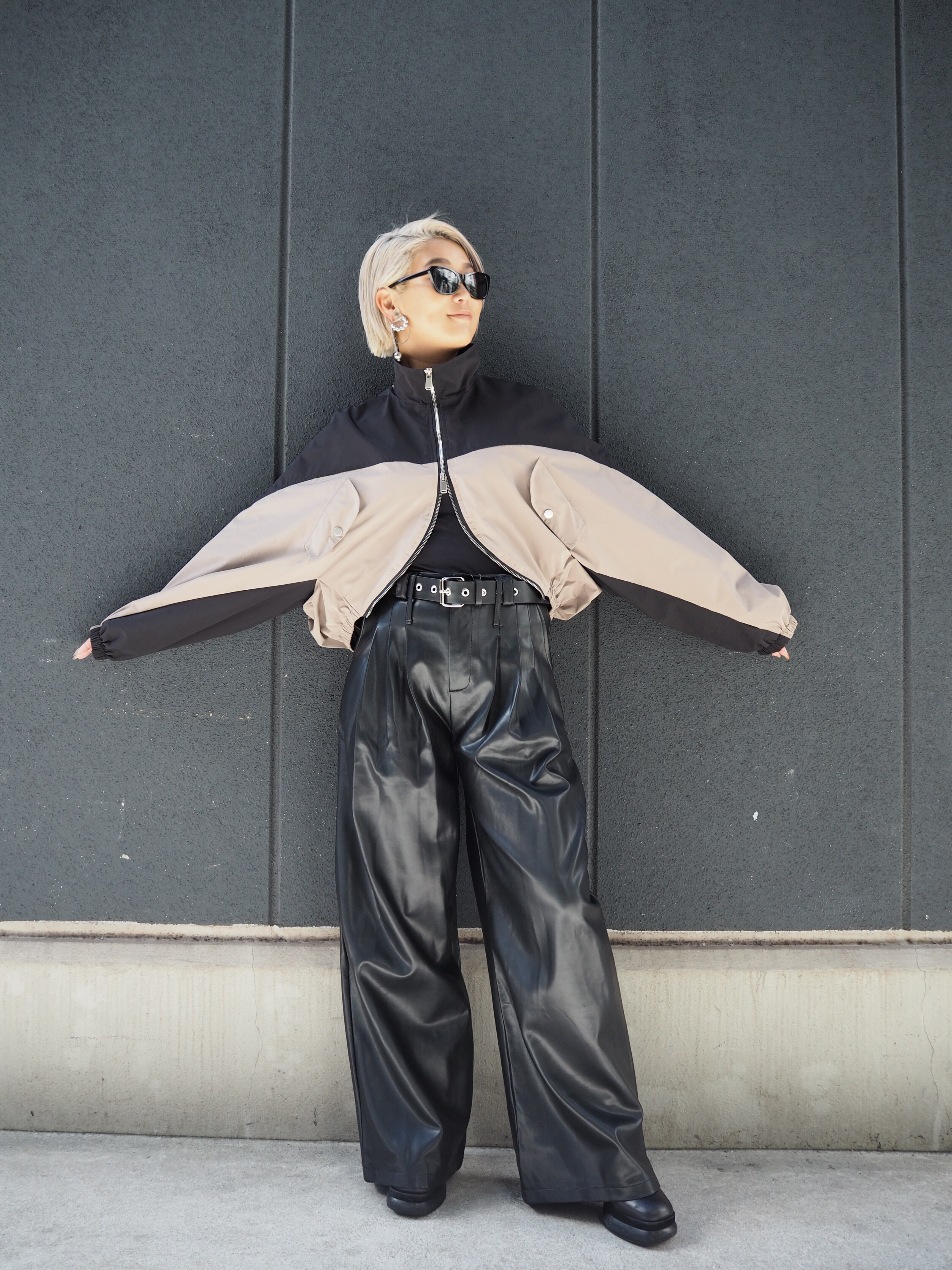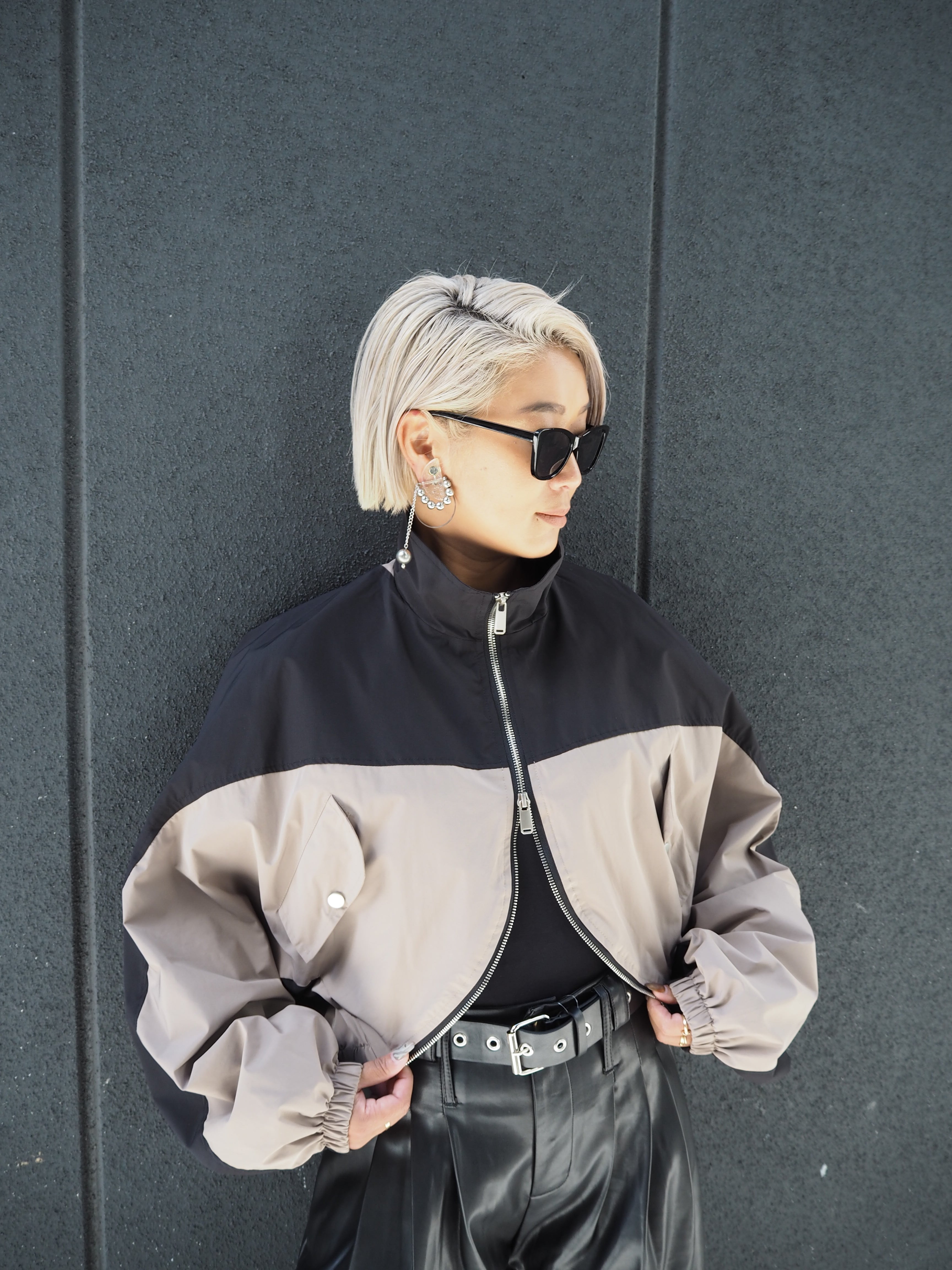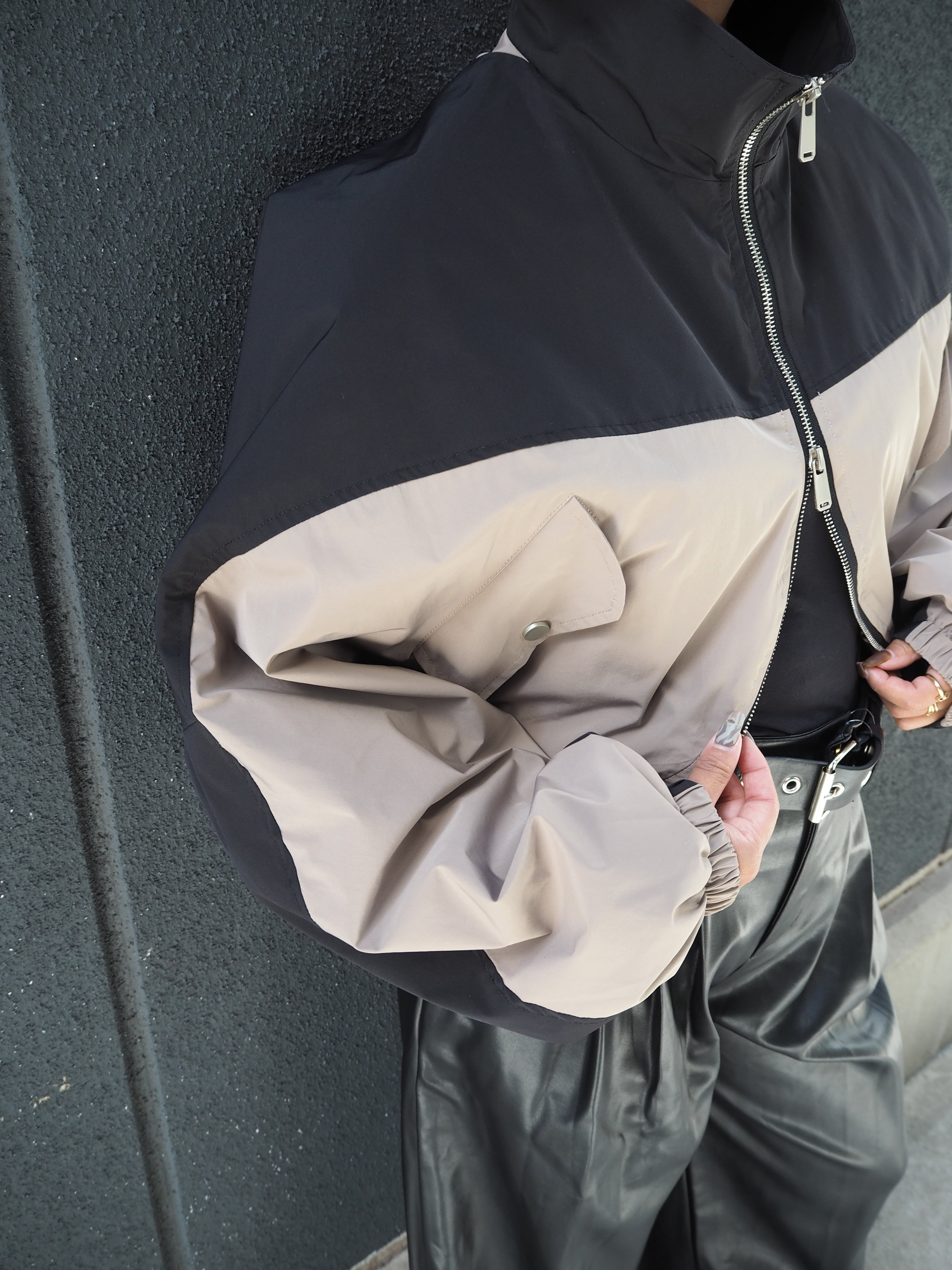 バイカラーと丸みのあるスタイリッシュなフォルムが特徴のこのブルゾンは、カジュアルなコーディネートにもぴったり。