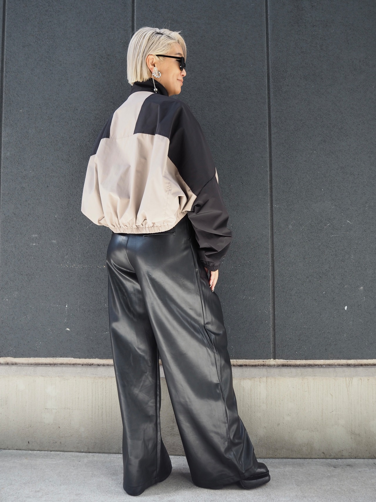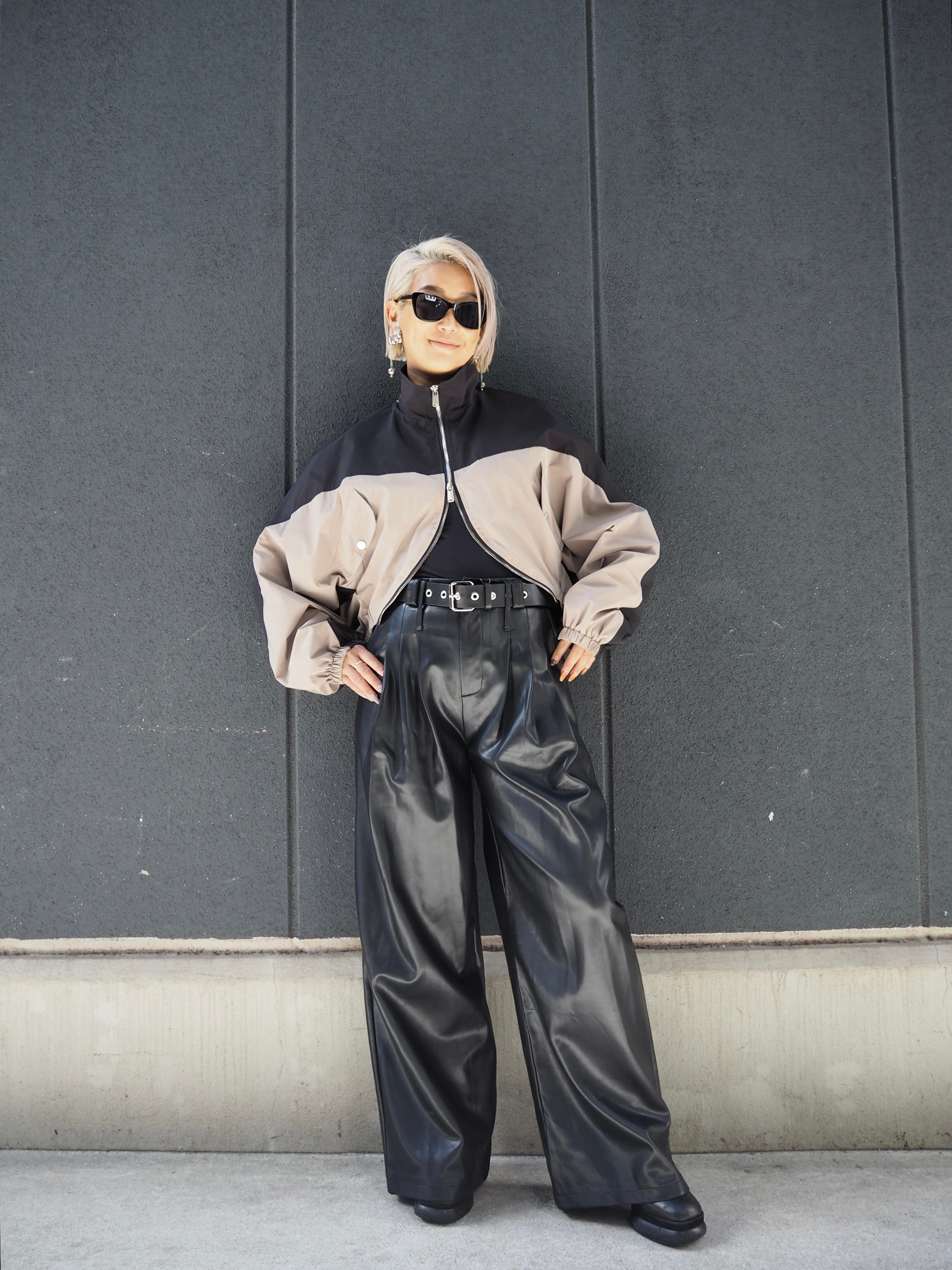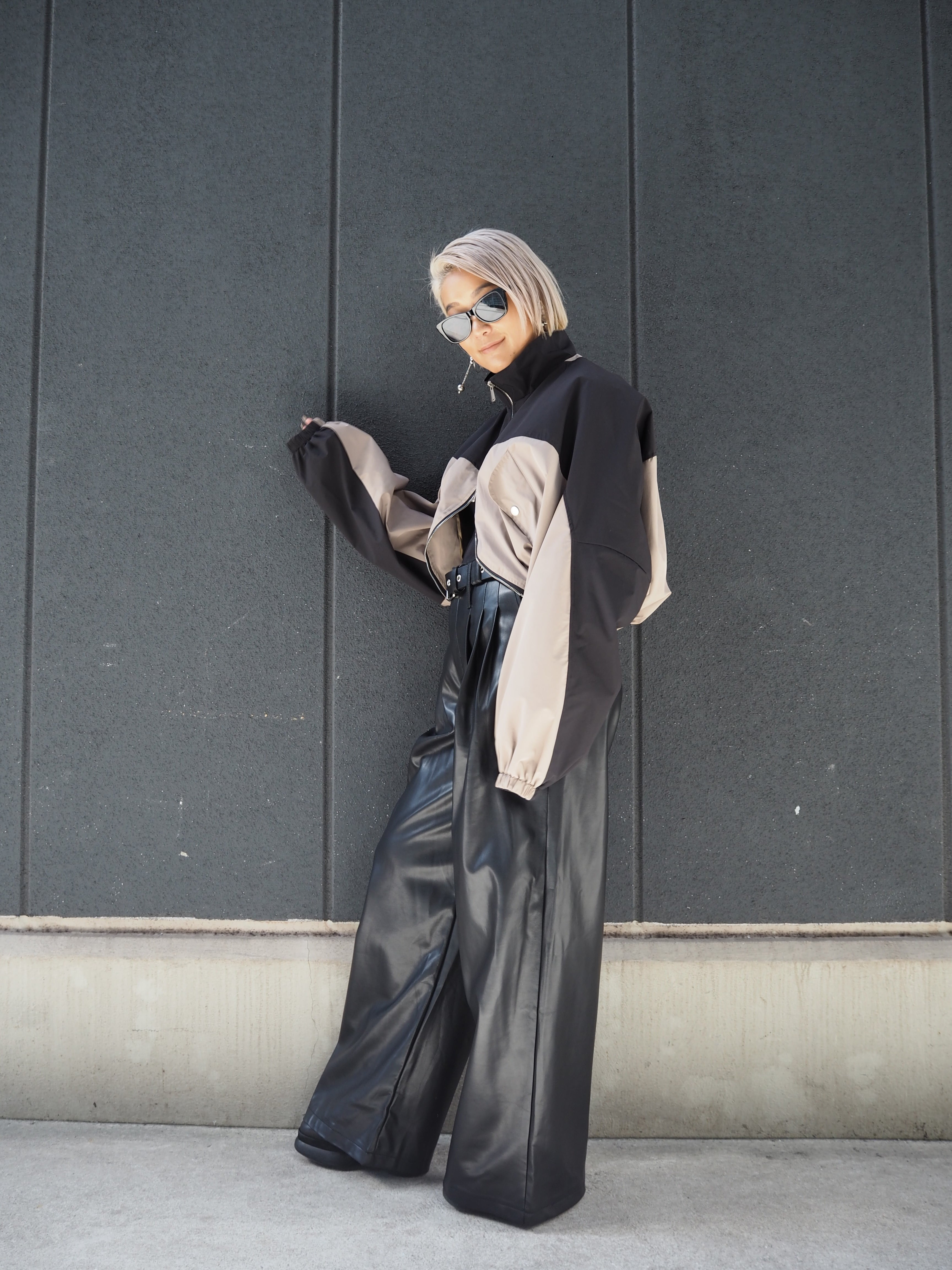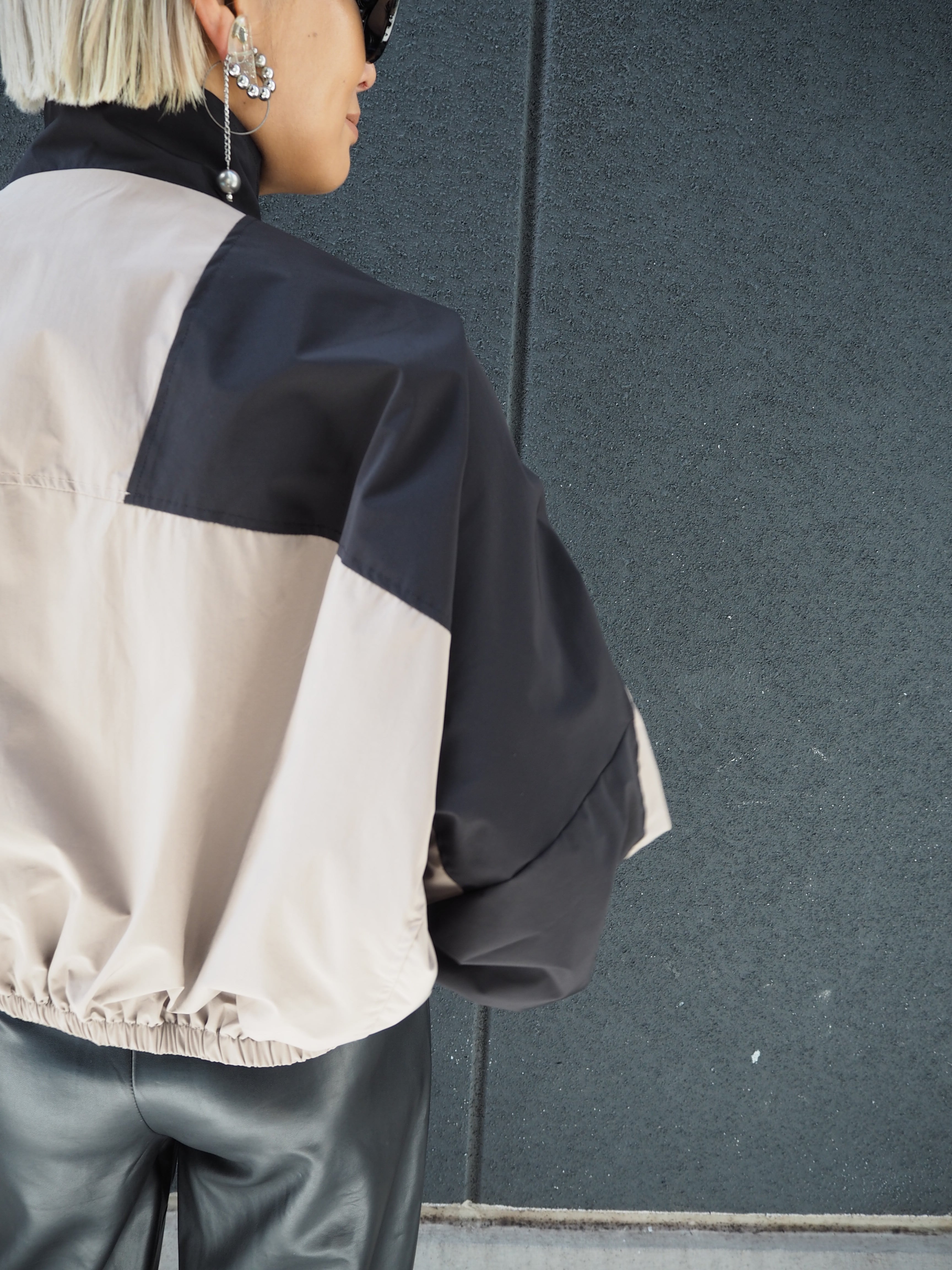 バイカラーと丸みのあるスタイリッシュなフォルムが特徴のこのブルゾンは、カジュアルなコーディネートにもぴったり。