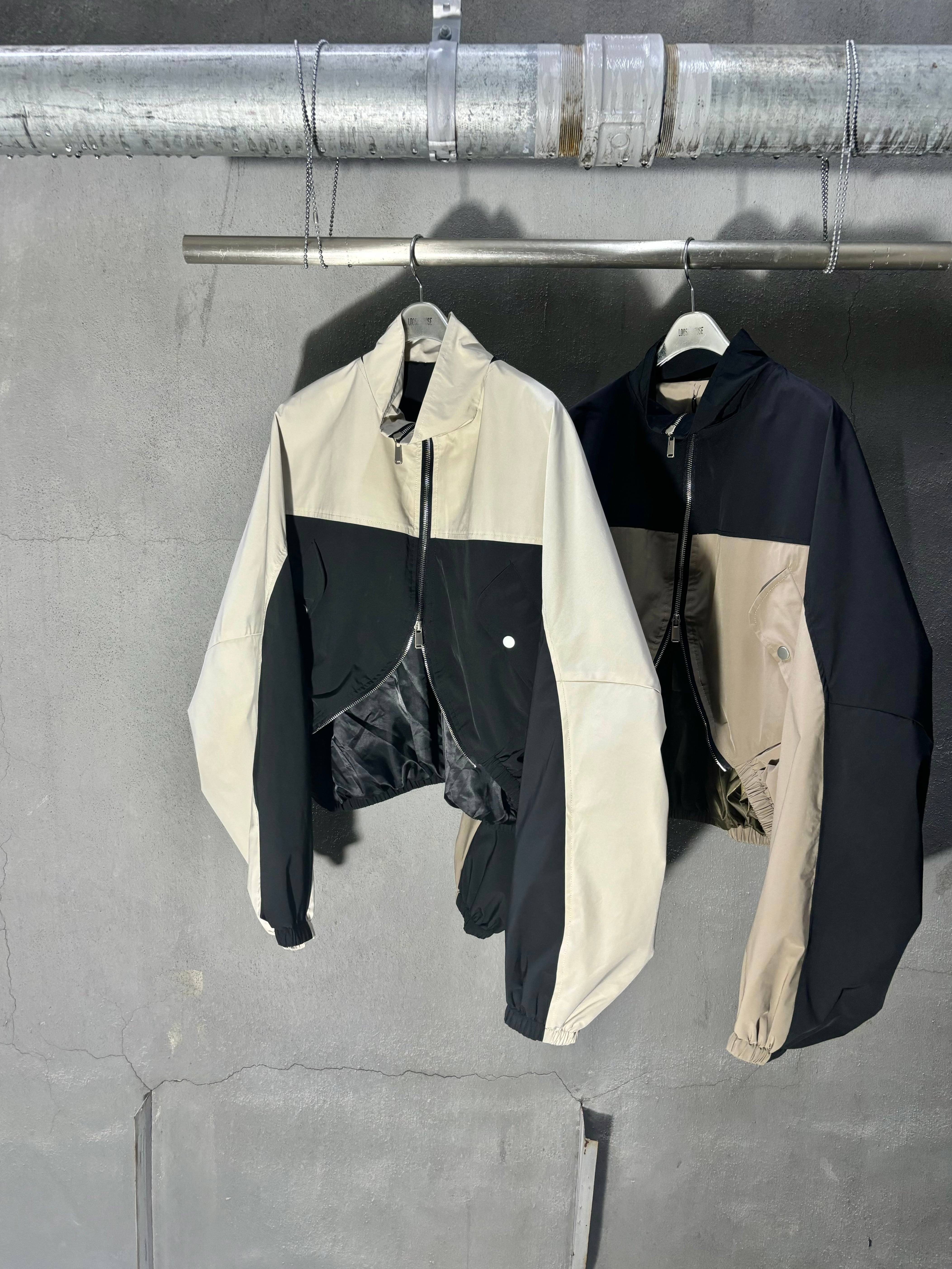 bi-color curve zip up design blouson ブルゾン 羽織り アウター ジャケット バイカラー ジップアップ