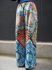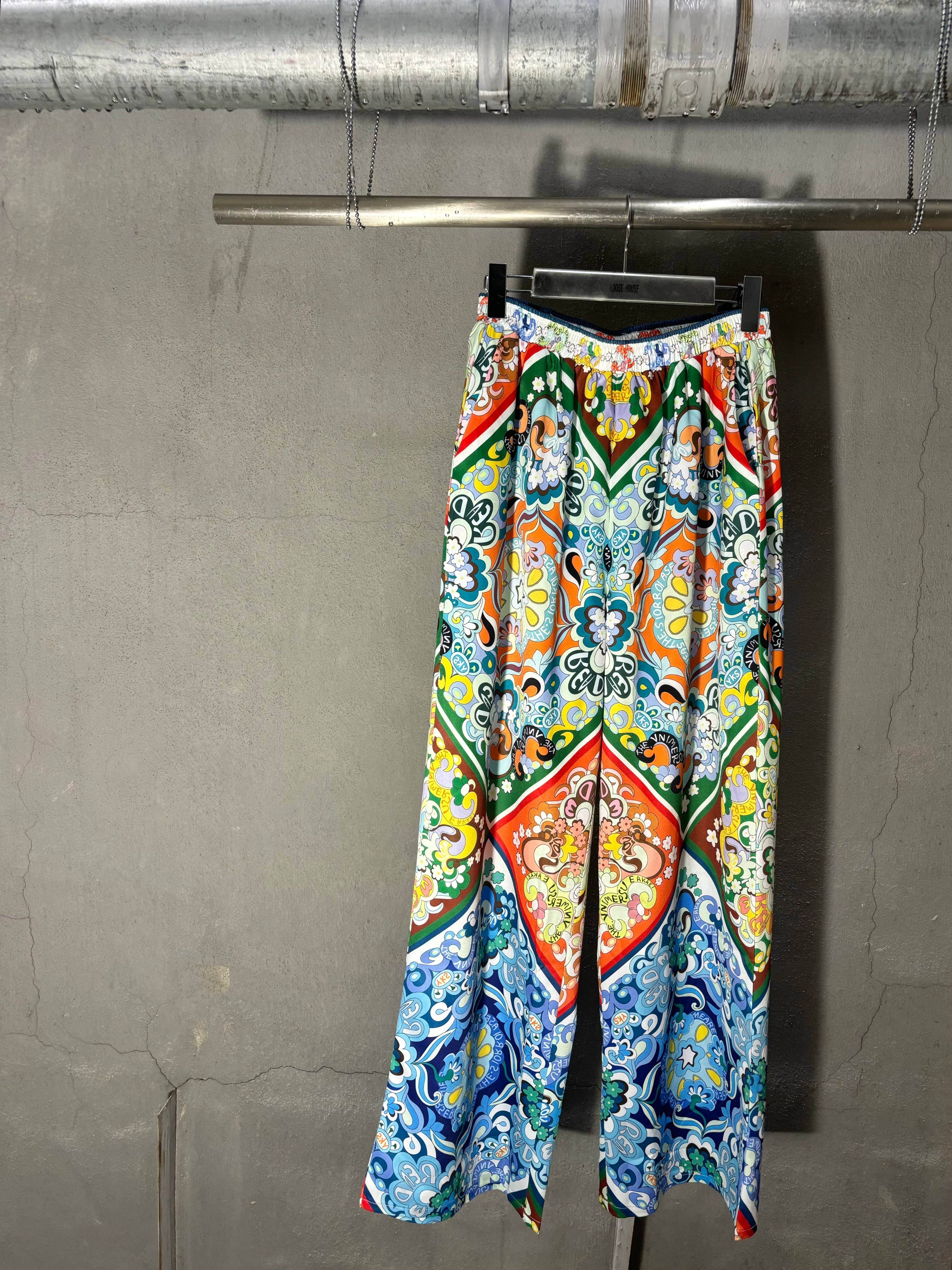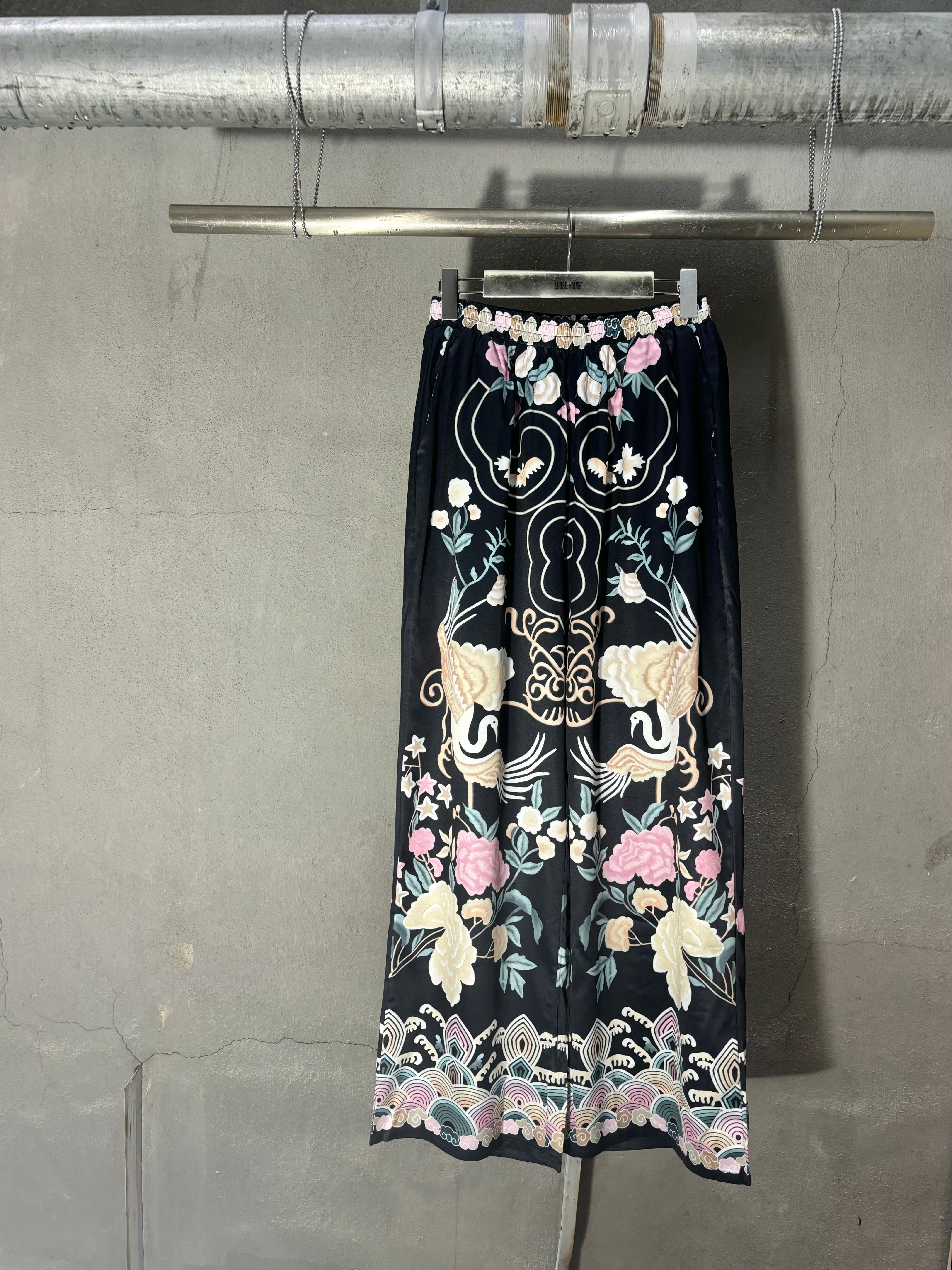 satin mix print wide pants パンツ ワイドパンツ 柄パンツ ゴージャス 派手 ゴムウエスト