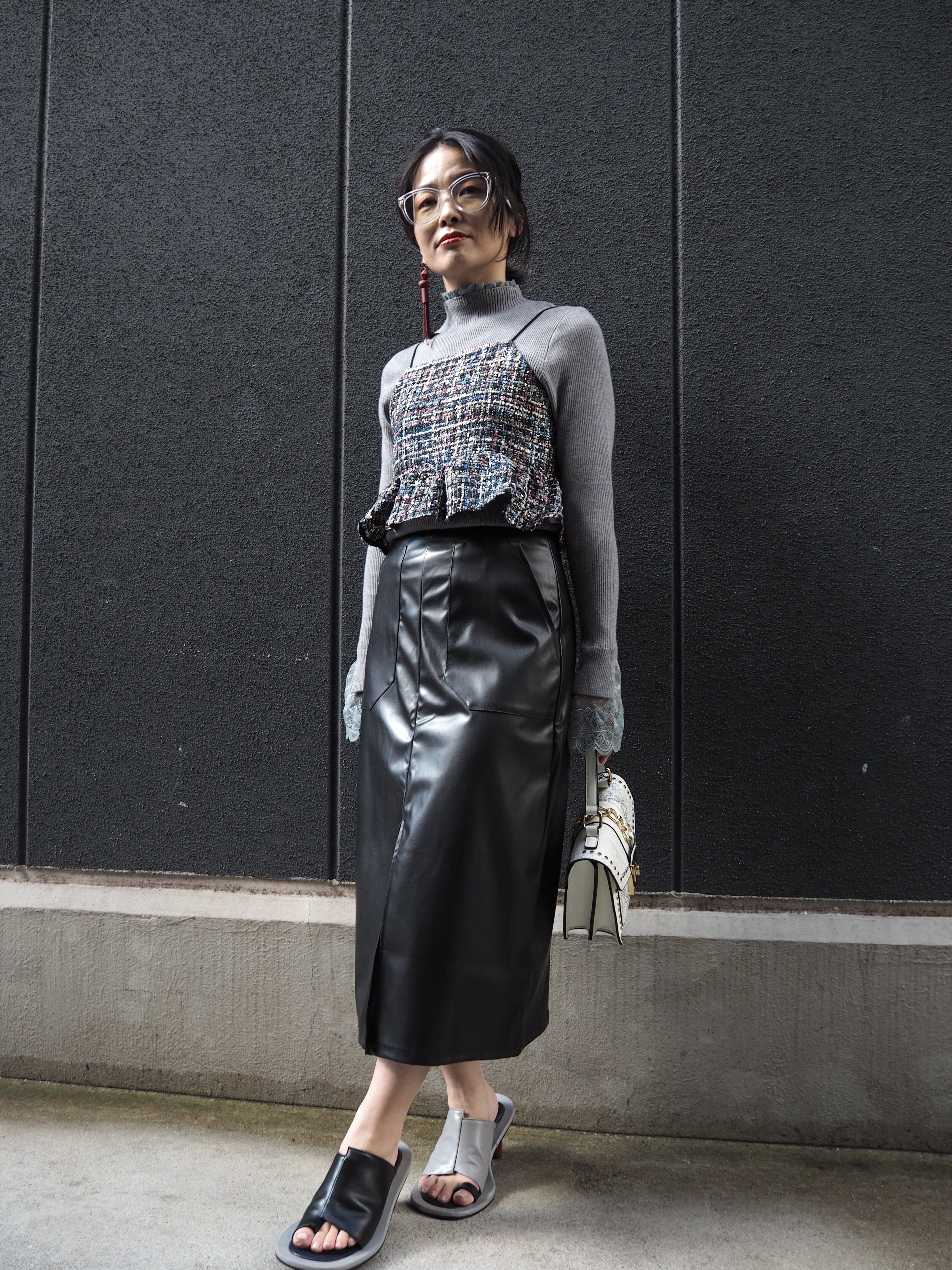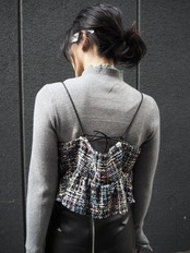 frill change tweed short camisole キャミソール ツィード 重ね着 フリル ショート丈