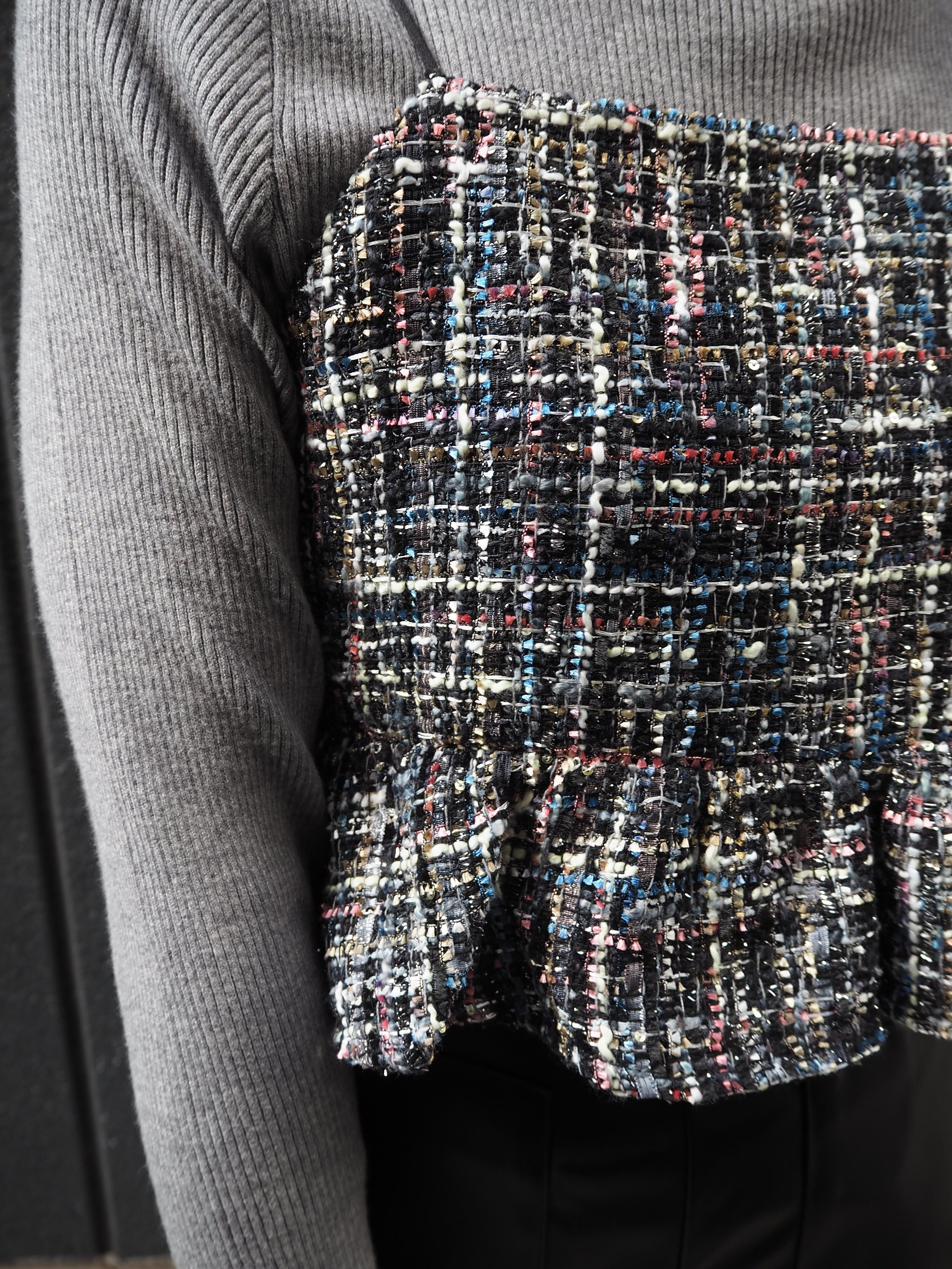 ツィード素材を使用し、重ね着にも最適なデザインが魅力です♪