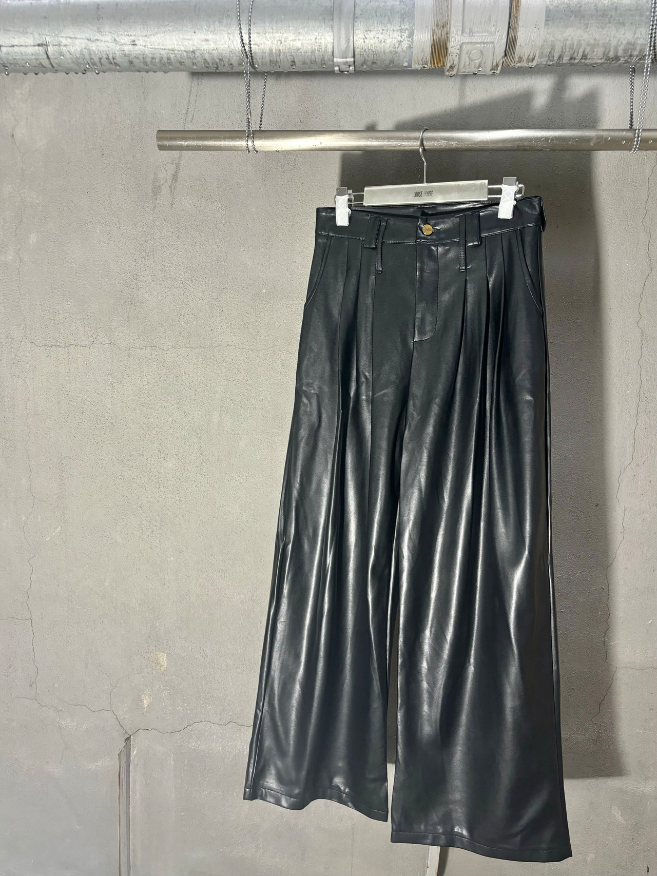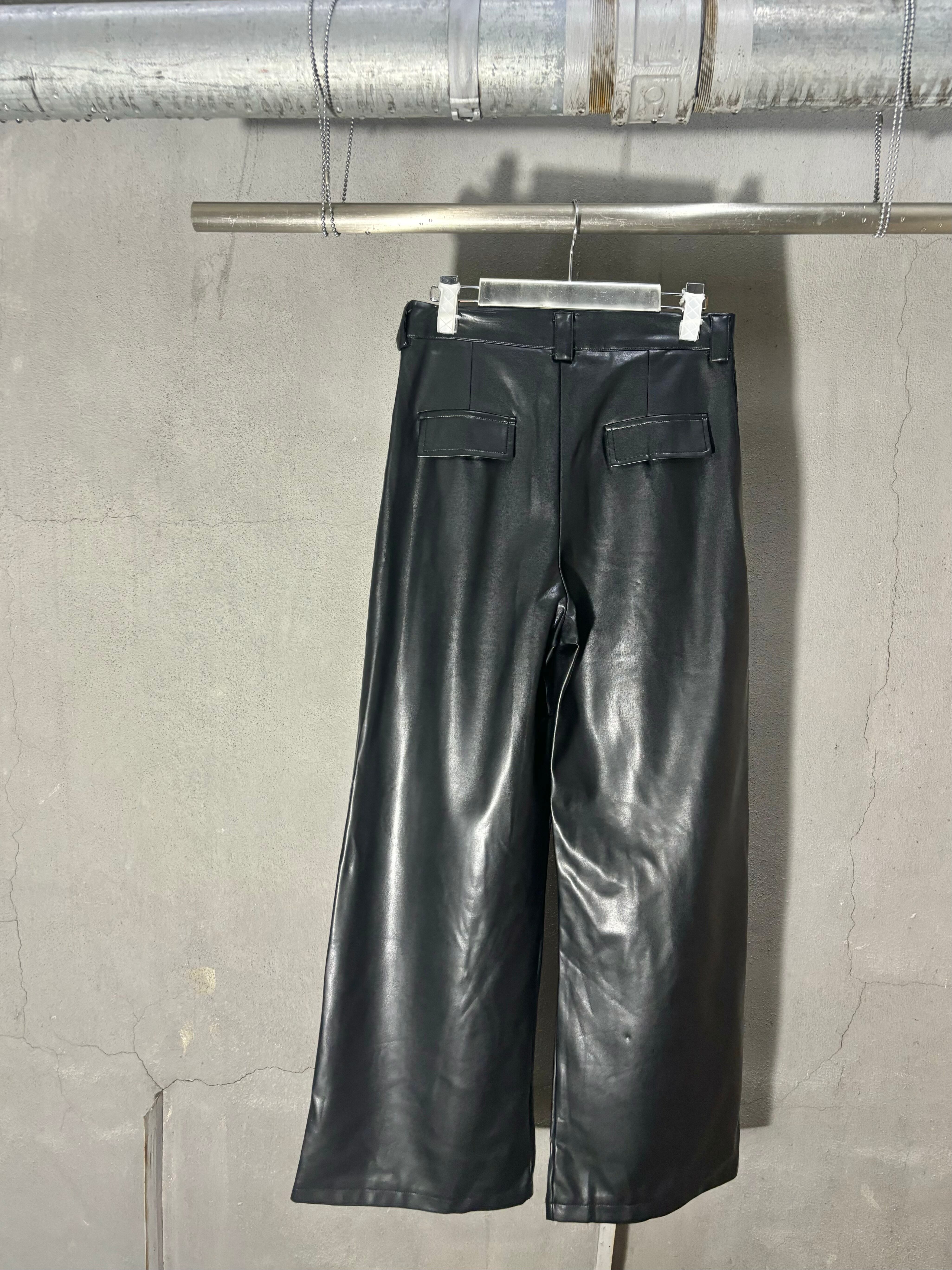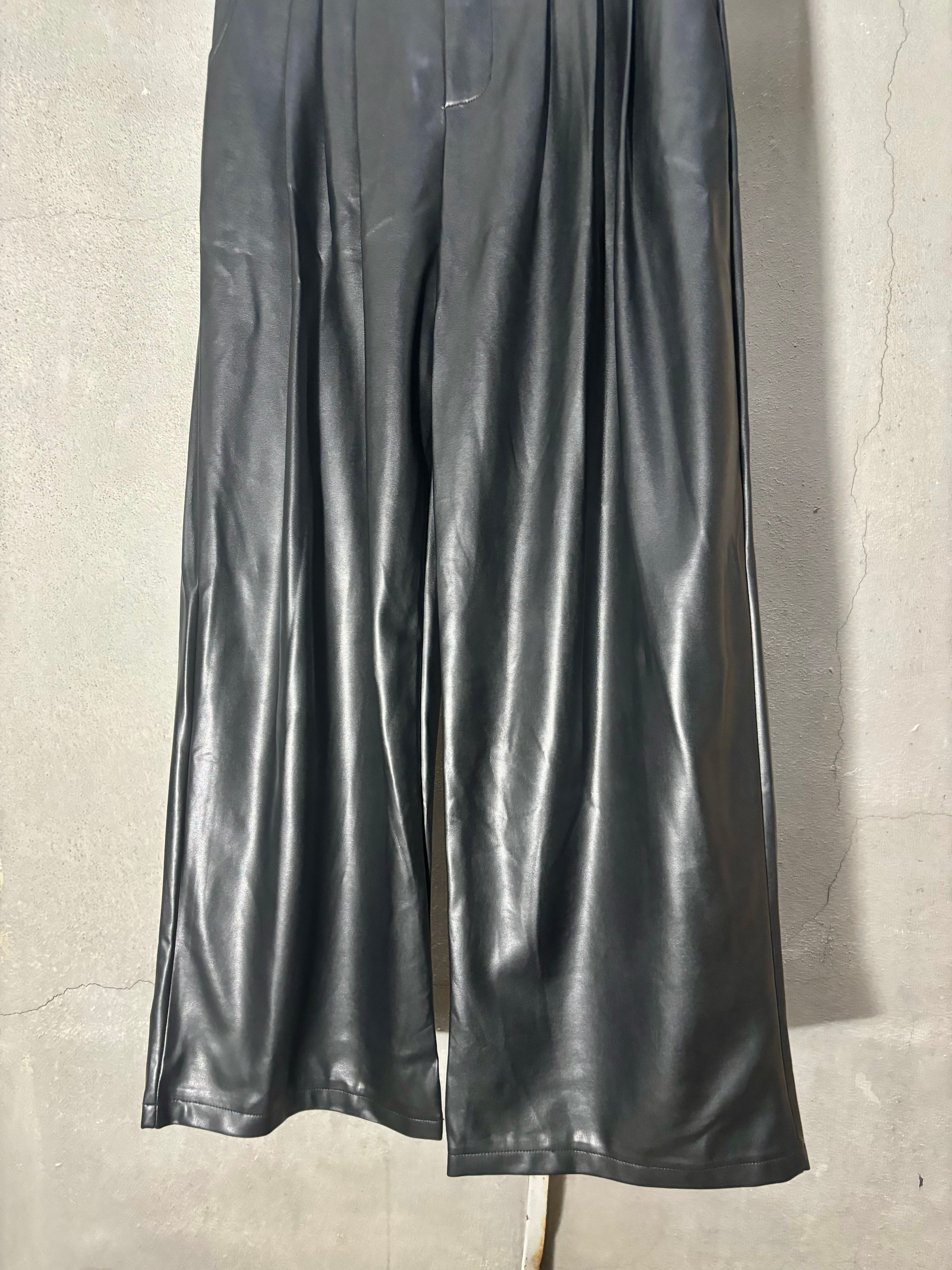 eco leather wide pants パンツ ワイドパンツ タックパンツ エコレザー 合皮 ブラック 黒