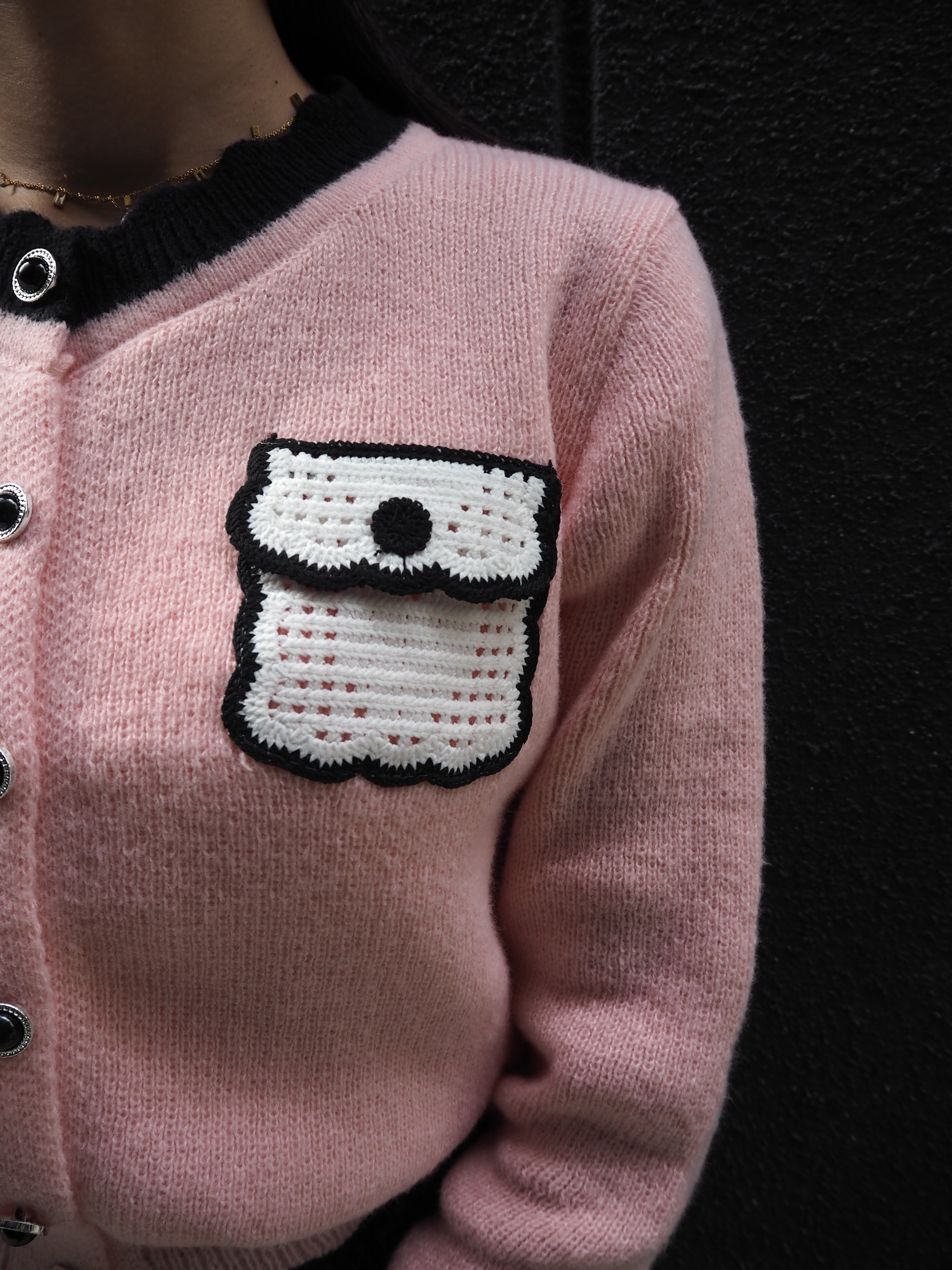 mix color × pocket C-neck knit cardigan ニット カーディガン ポケット Cネック きれいめ