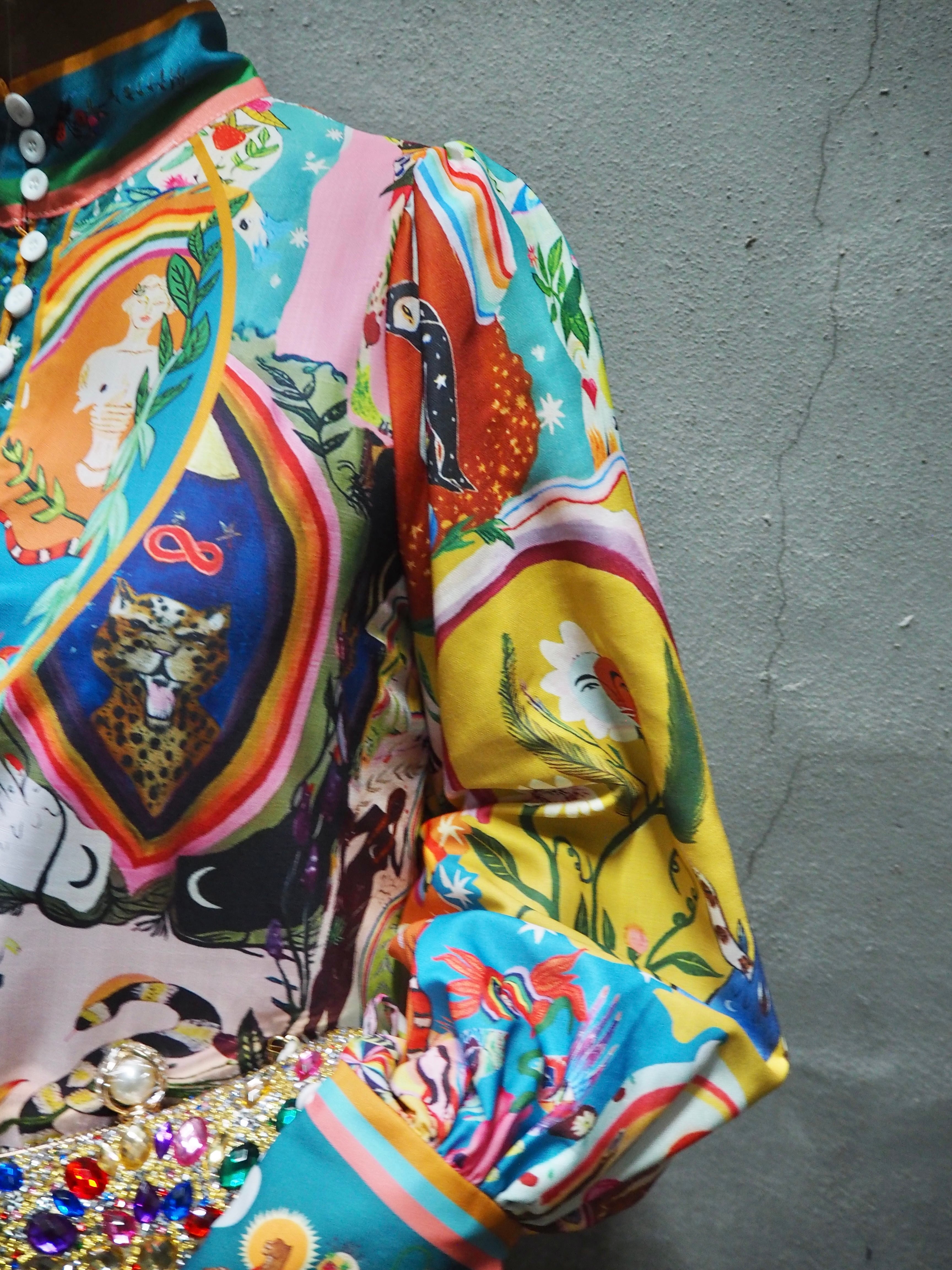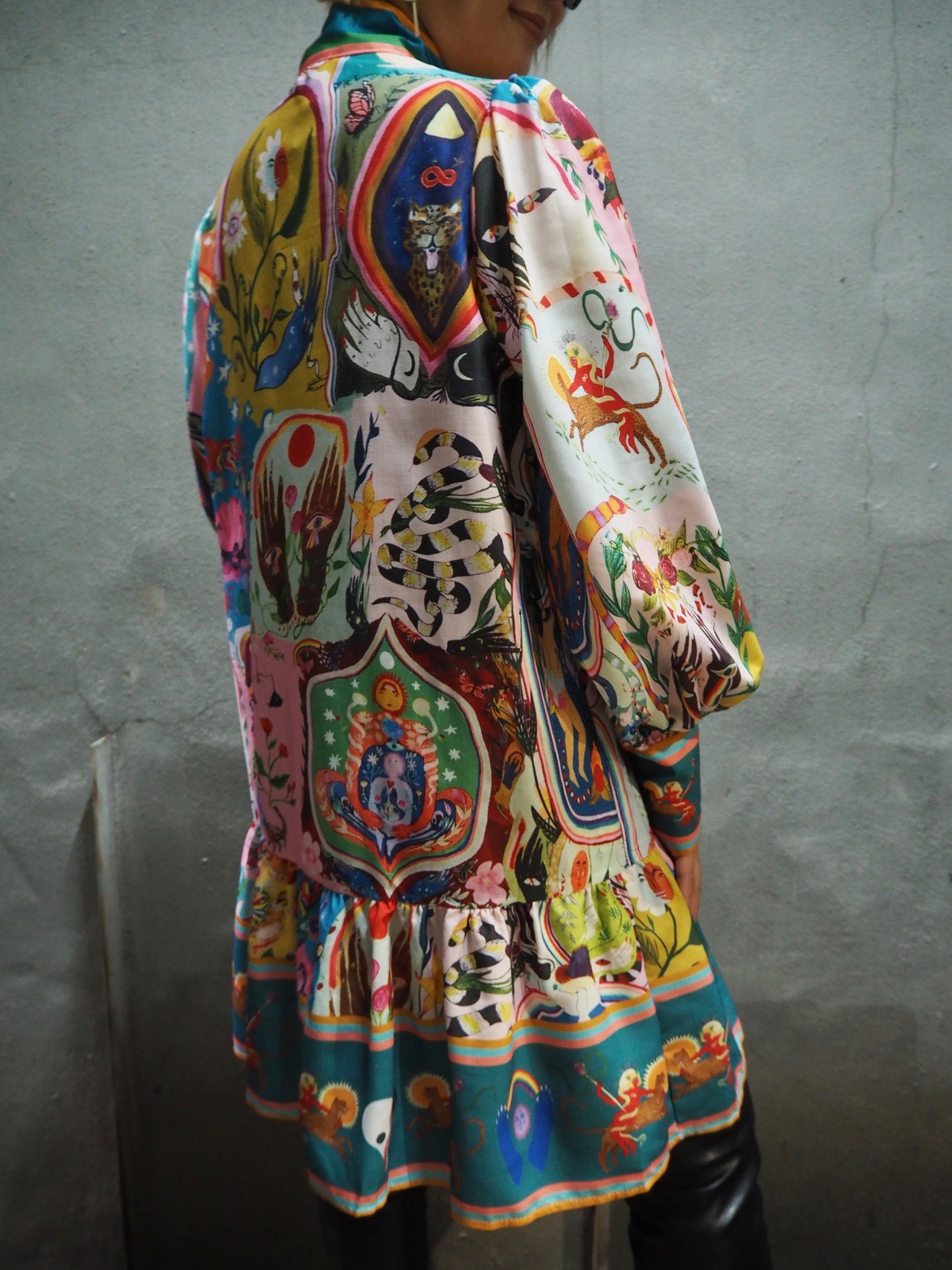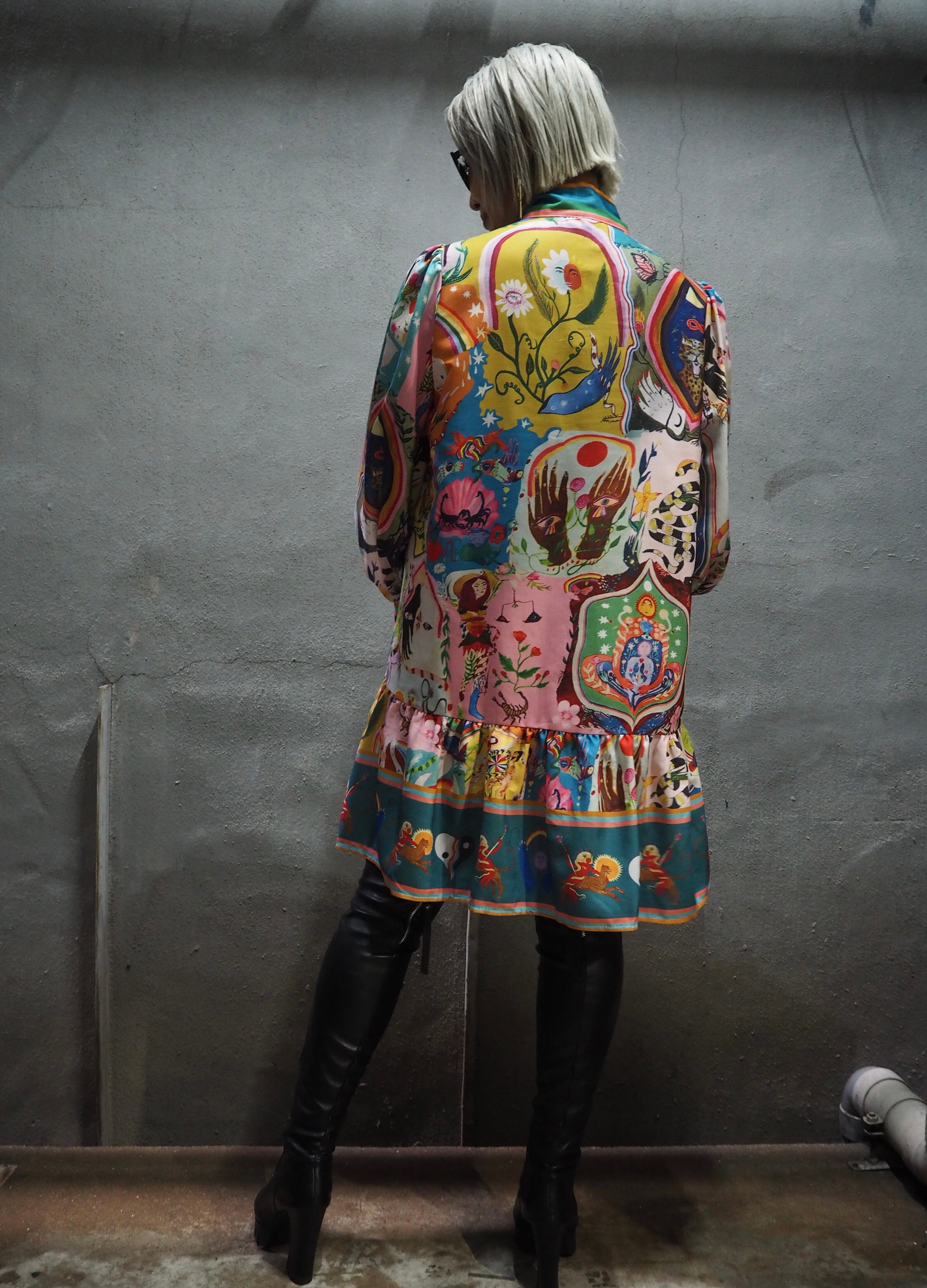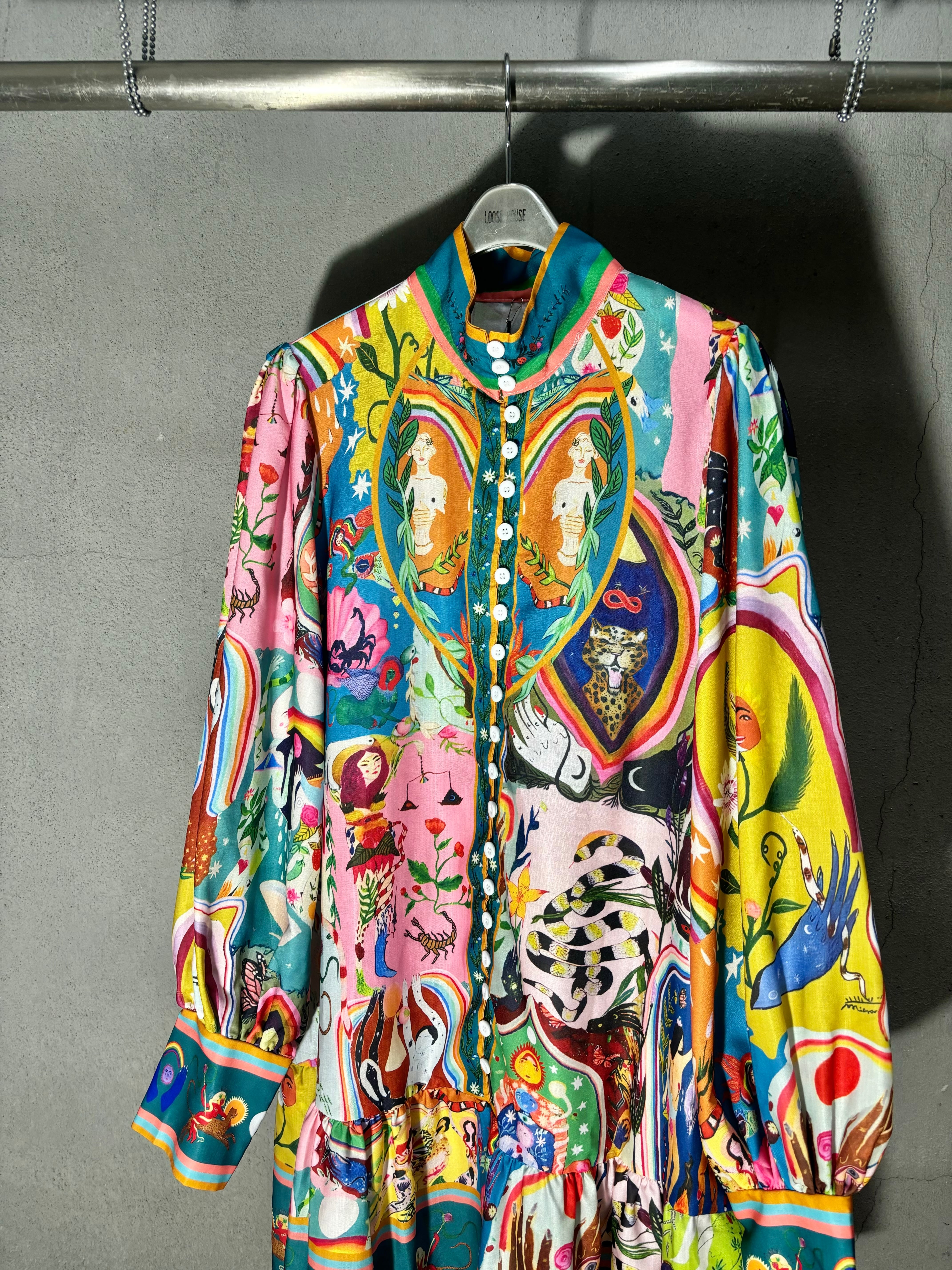 oriental art print frill change design one-piece ワンピース ワンピ フリル 切替デザイン 派手柄 アート カラフル