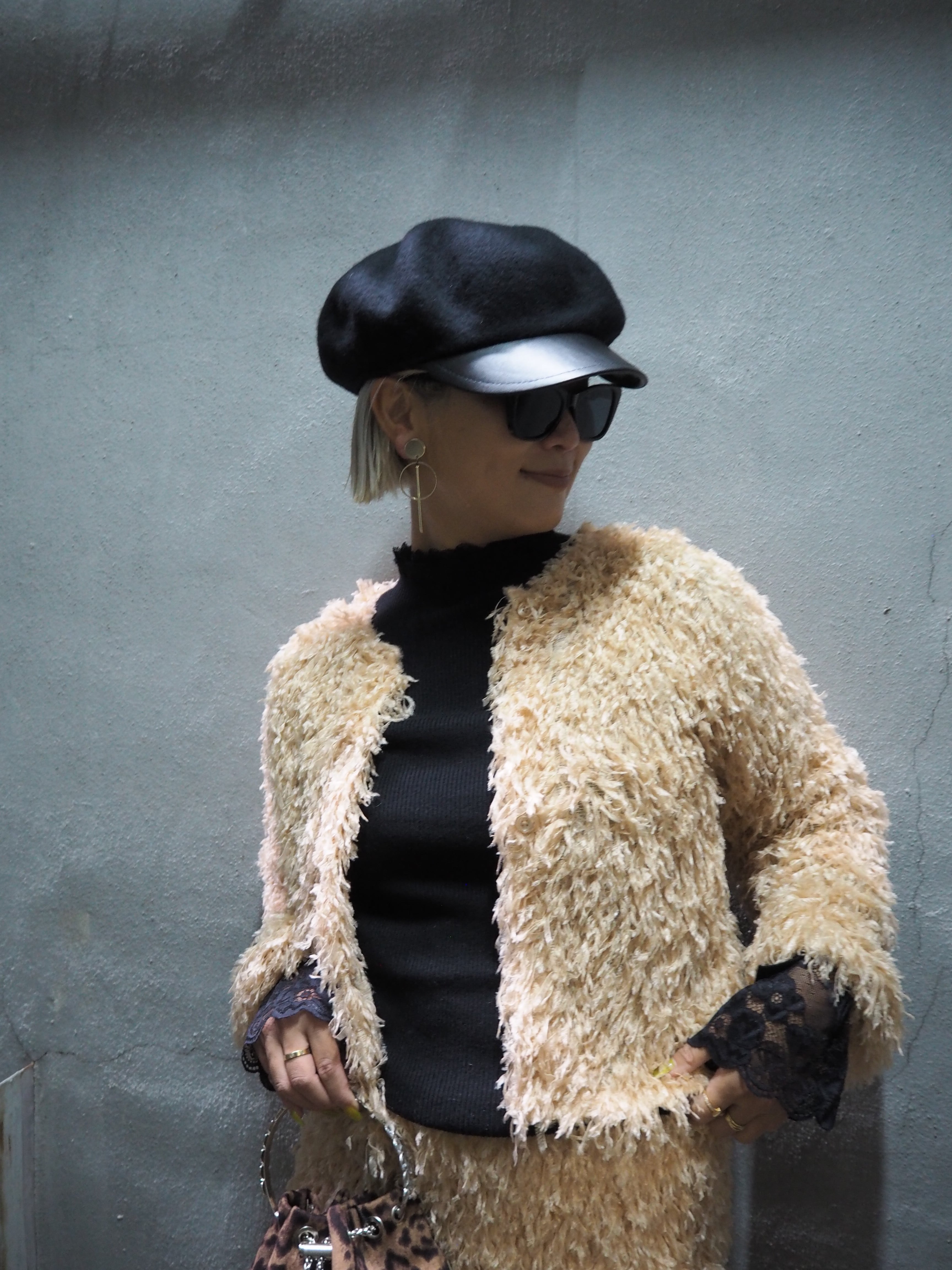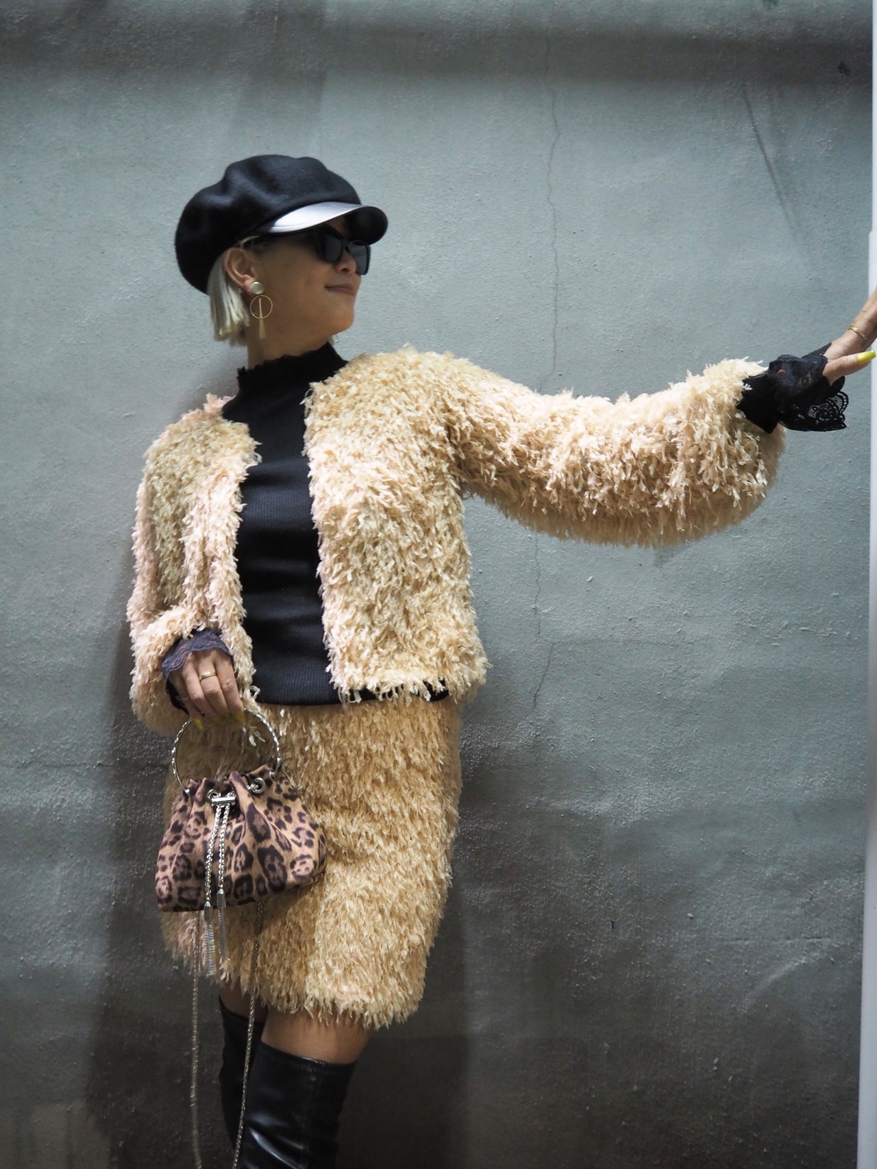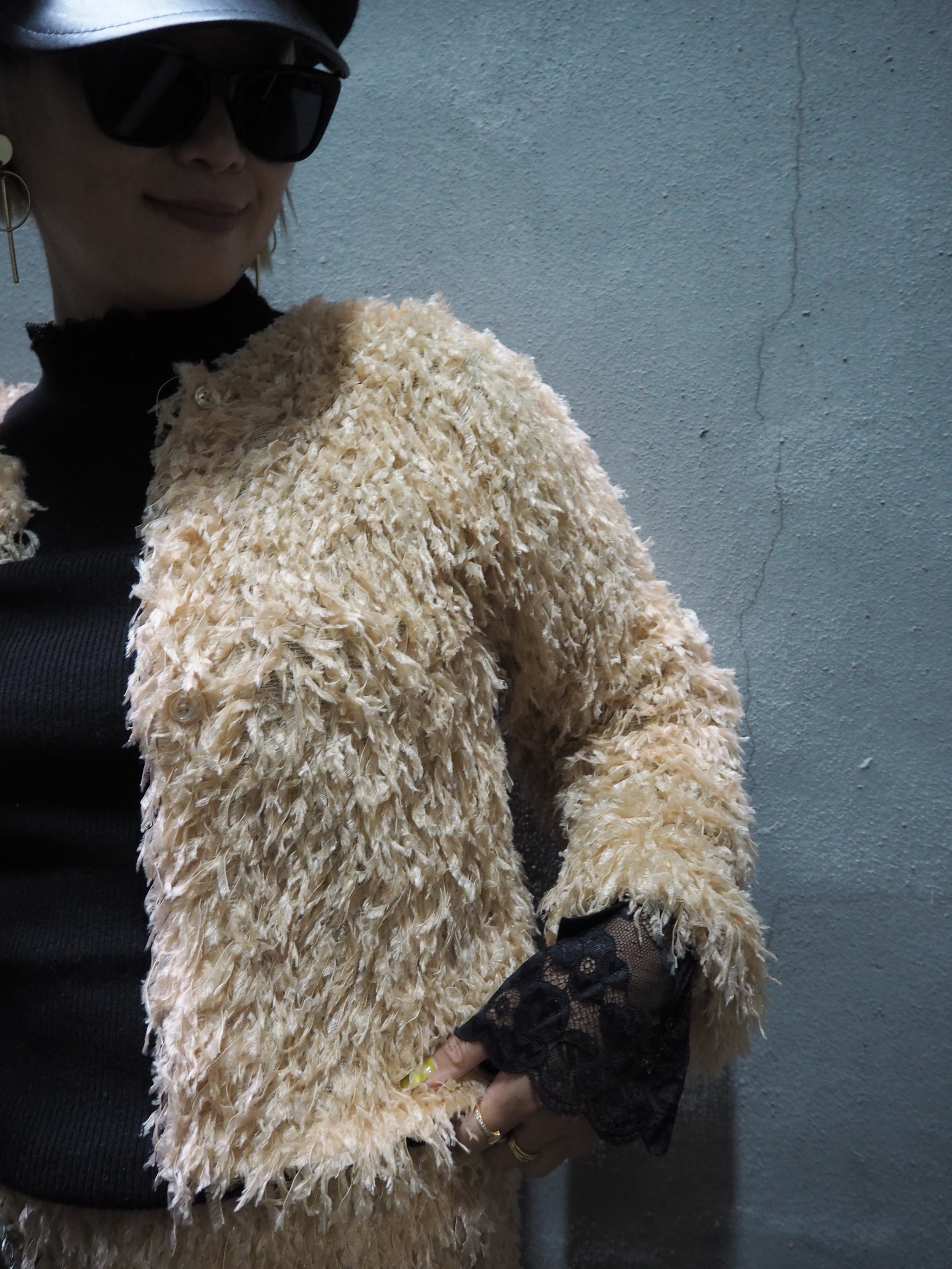 shaggy cardigan tops × mini skirt 2P set up セットアップ 2点セット シャギー トップス カーディガン スカート ミニスカート